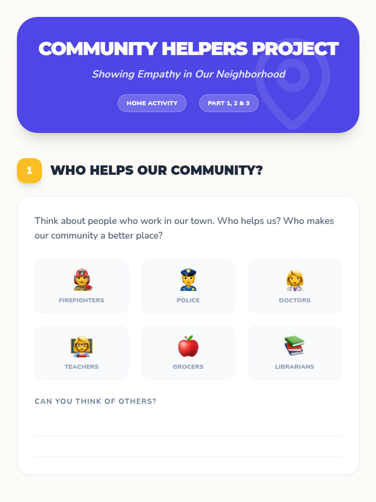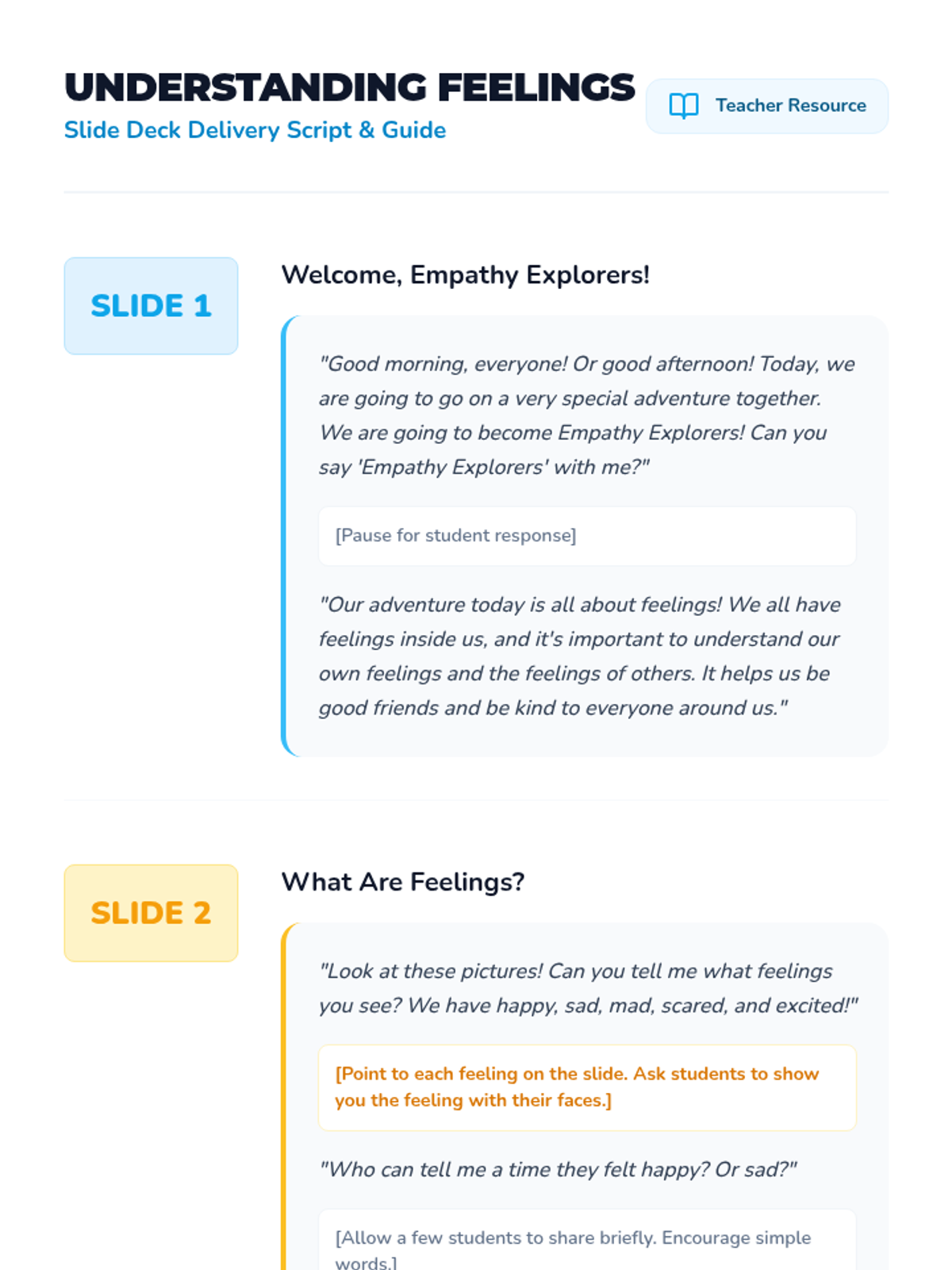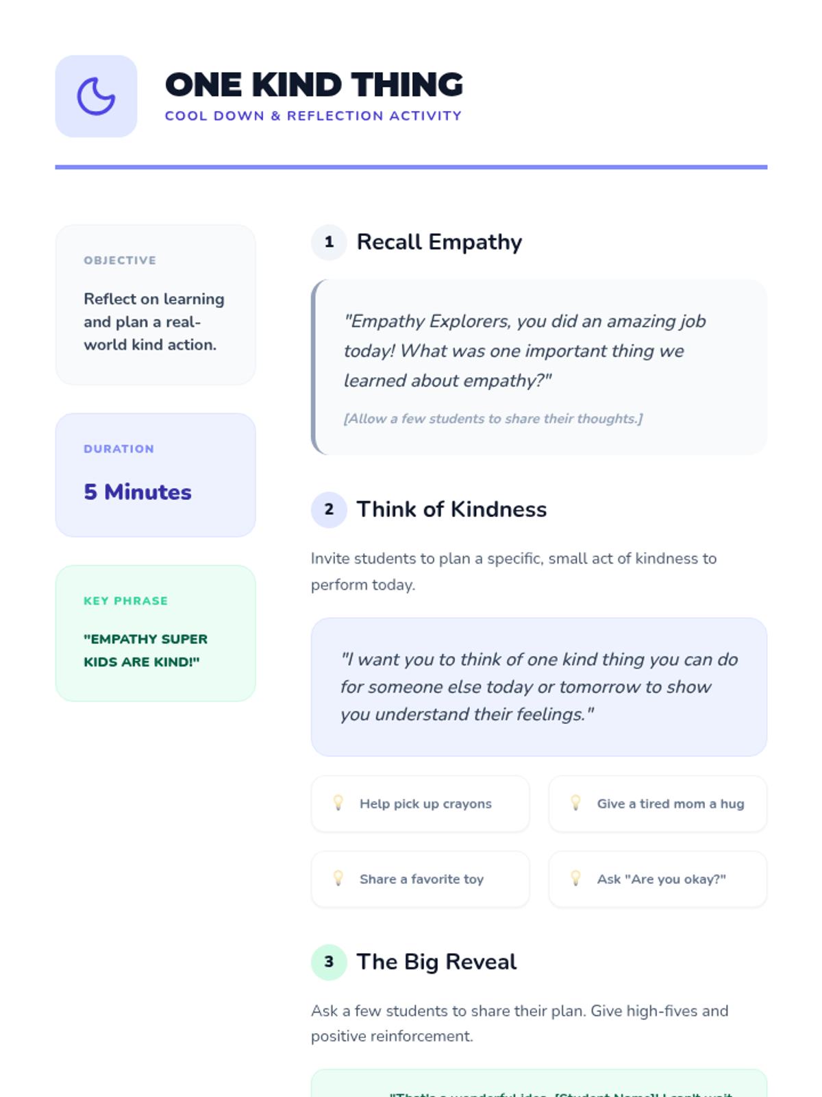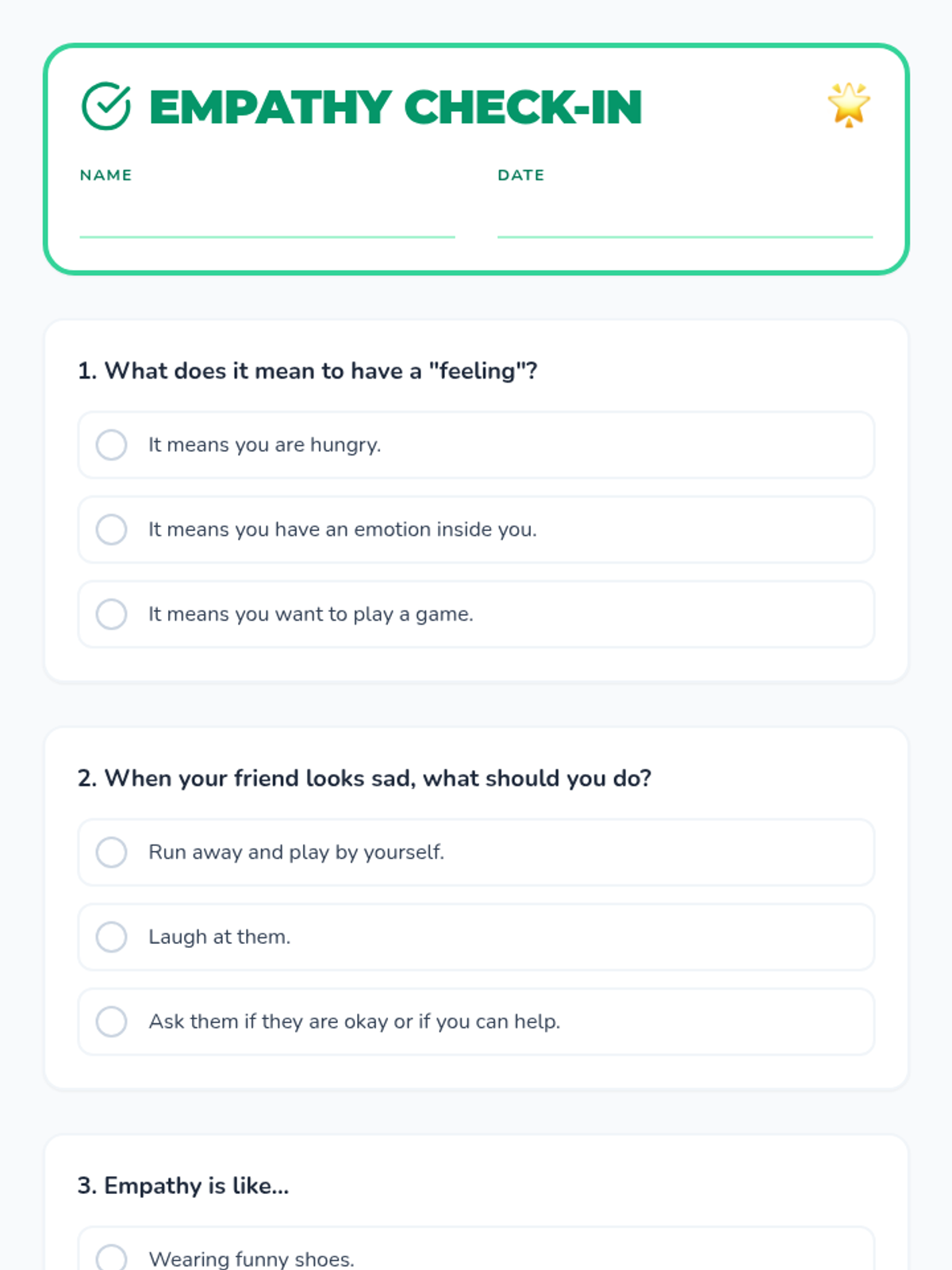 This lesson introduces Pre Primary 1 & 2 students to the concept of empathy through engaging activities and discussions. Students will learn to recognize and understand the feelings of others, fostering a kind and inclusive classroom environment.