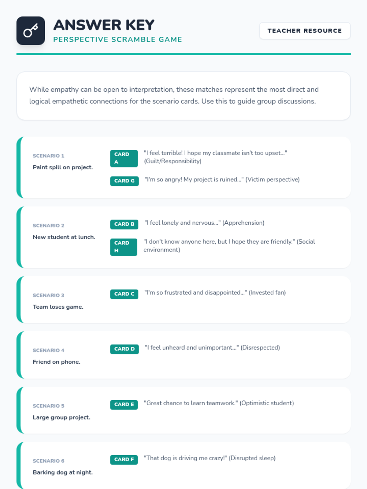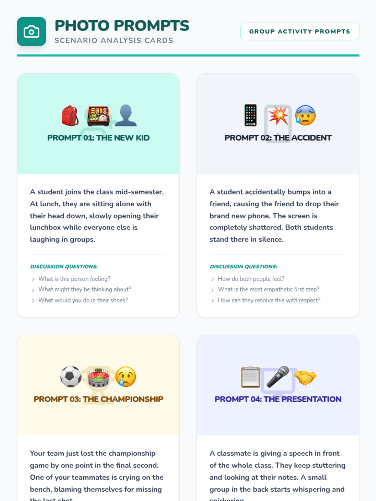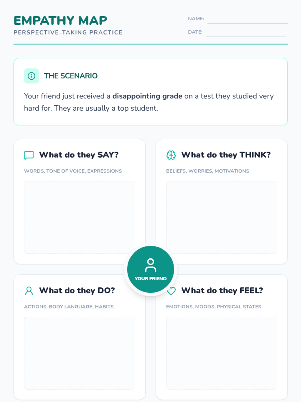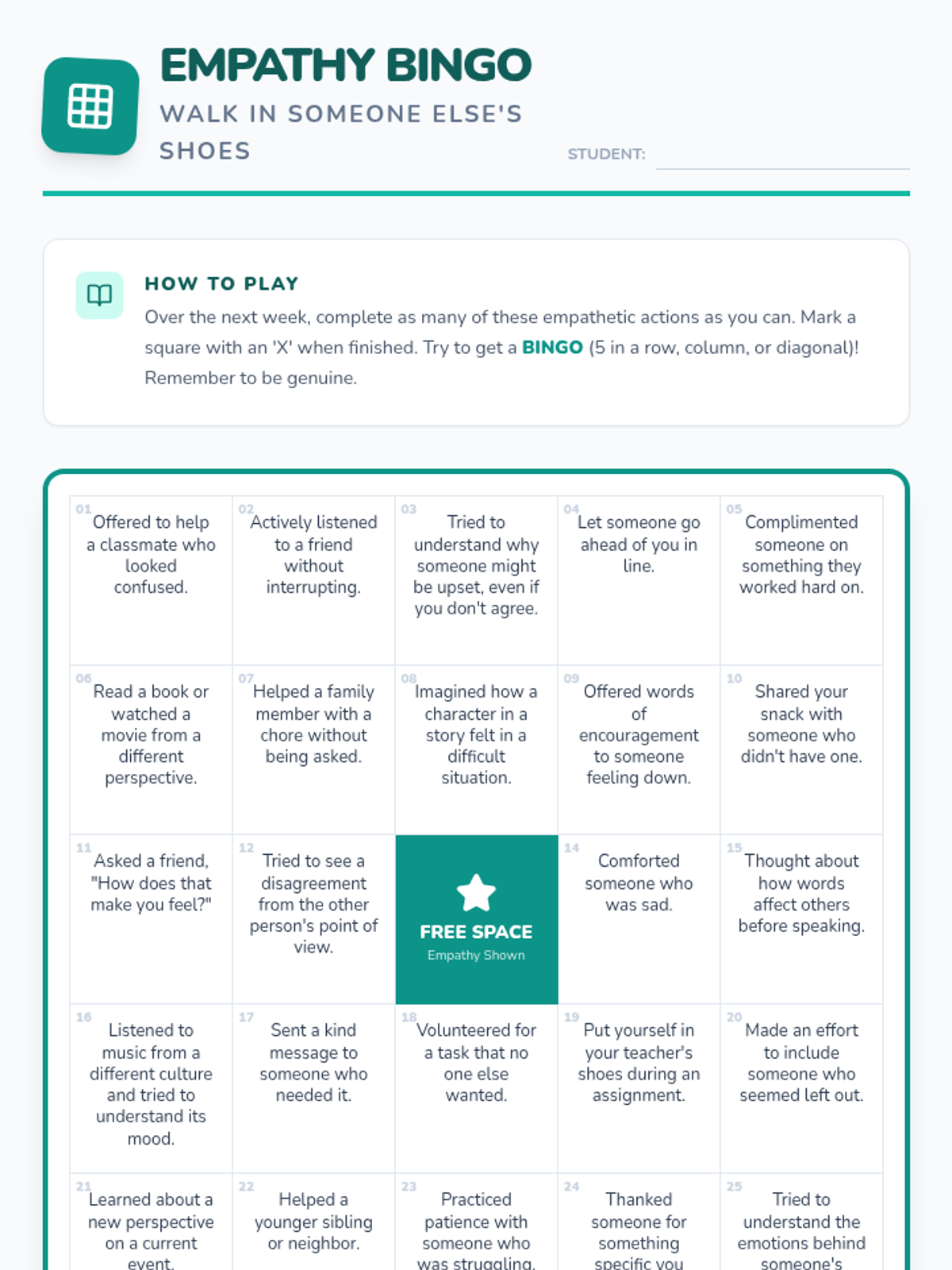 A 40-minute SEL lesson for 7th graders to define empathy and practice perspective-taking through interactive scenarios, games, and project-based learning.