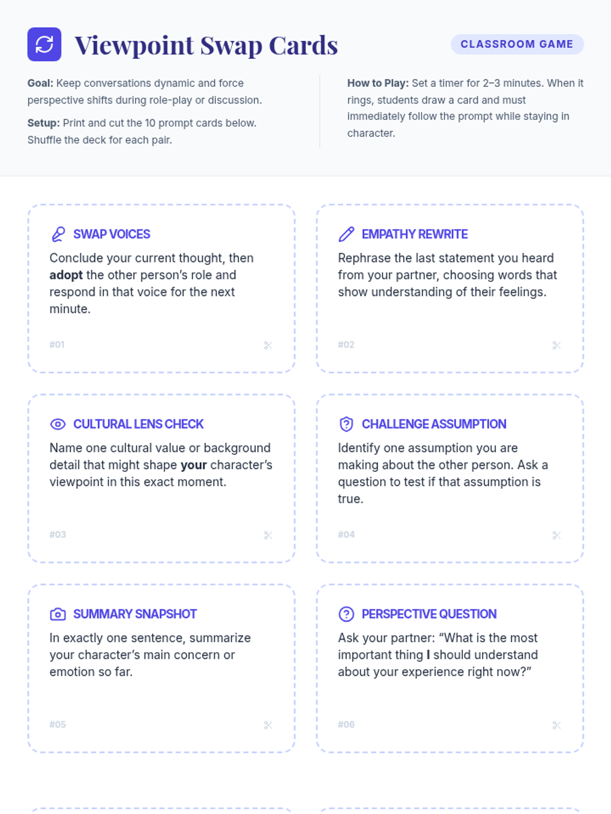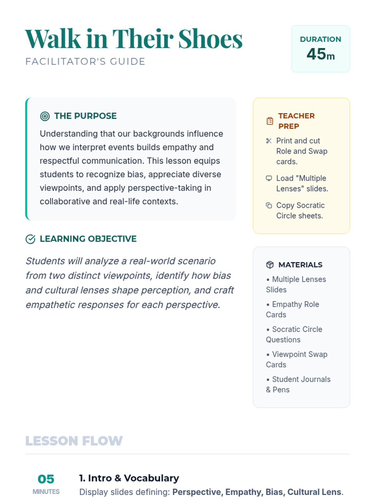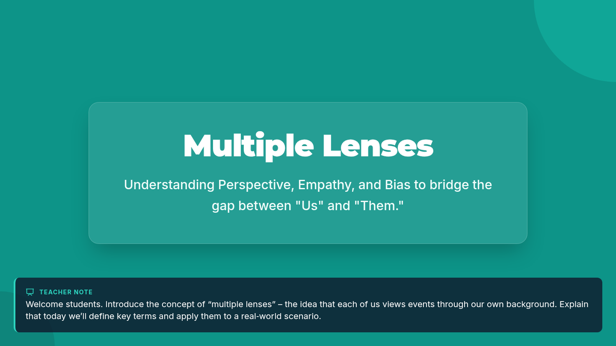 A 45-minute 9th-grade lesson on perspective-taking, bias, and empathy, using real-world scenarios and role-play to bridge cultural divides.