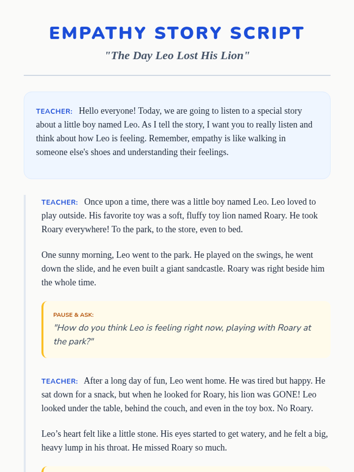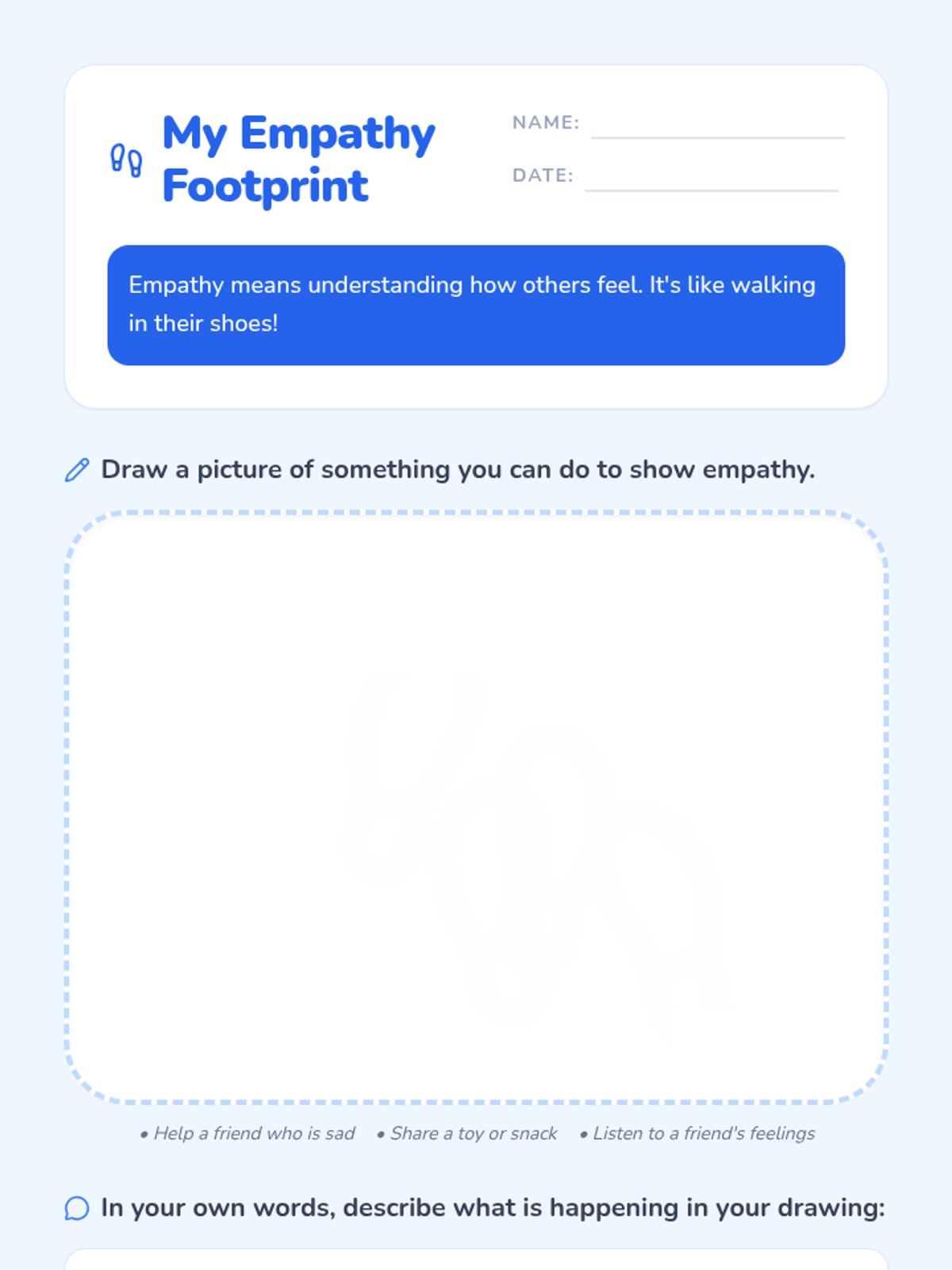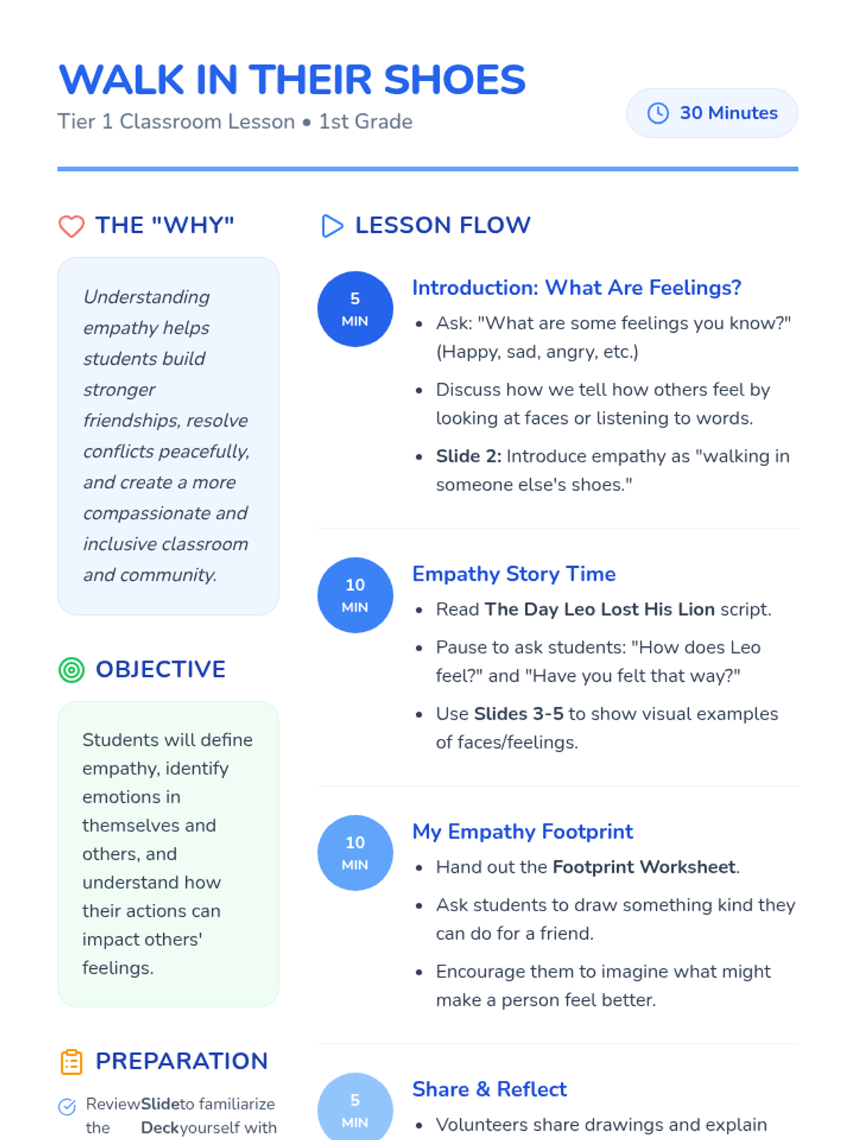 This lesson introduces 1st-grade students to empathy, helping them understand and share the feelings of others through discussion, storytelling, and creative expression.