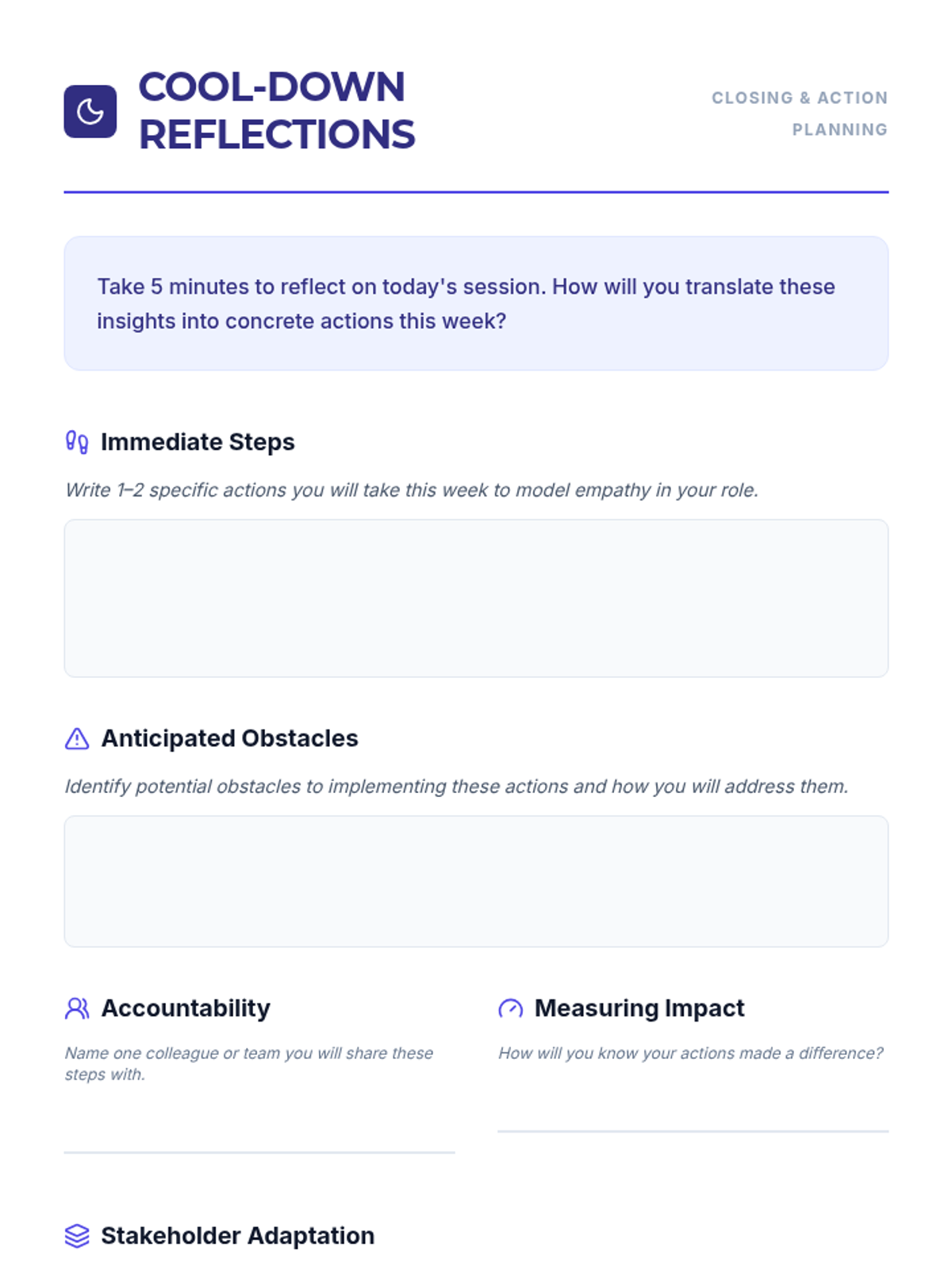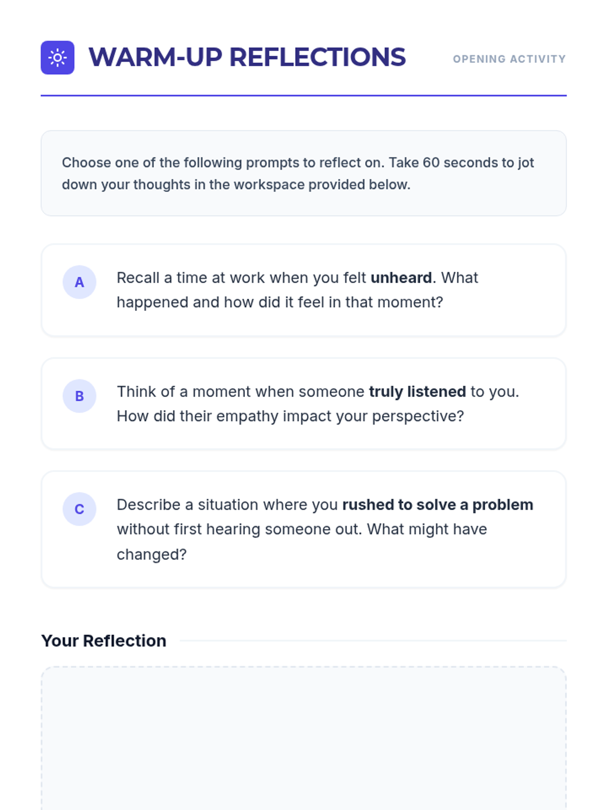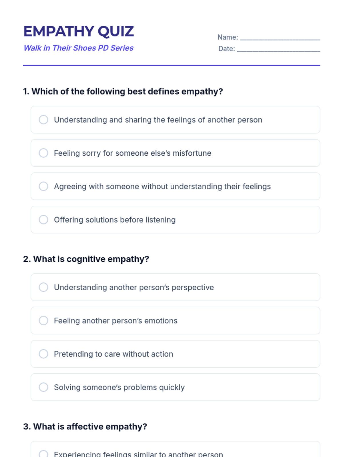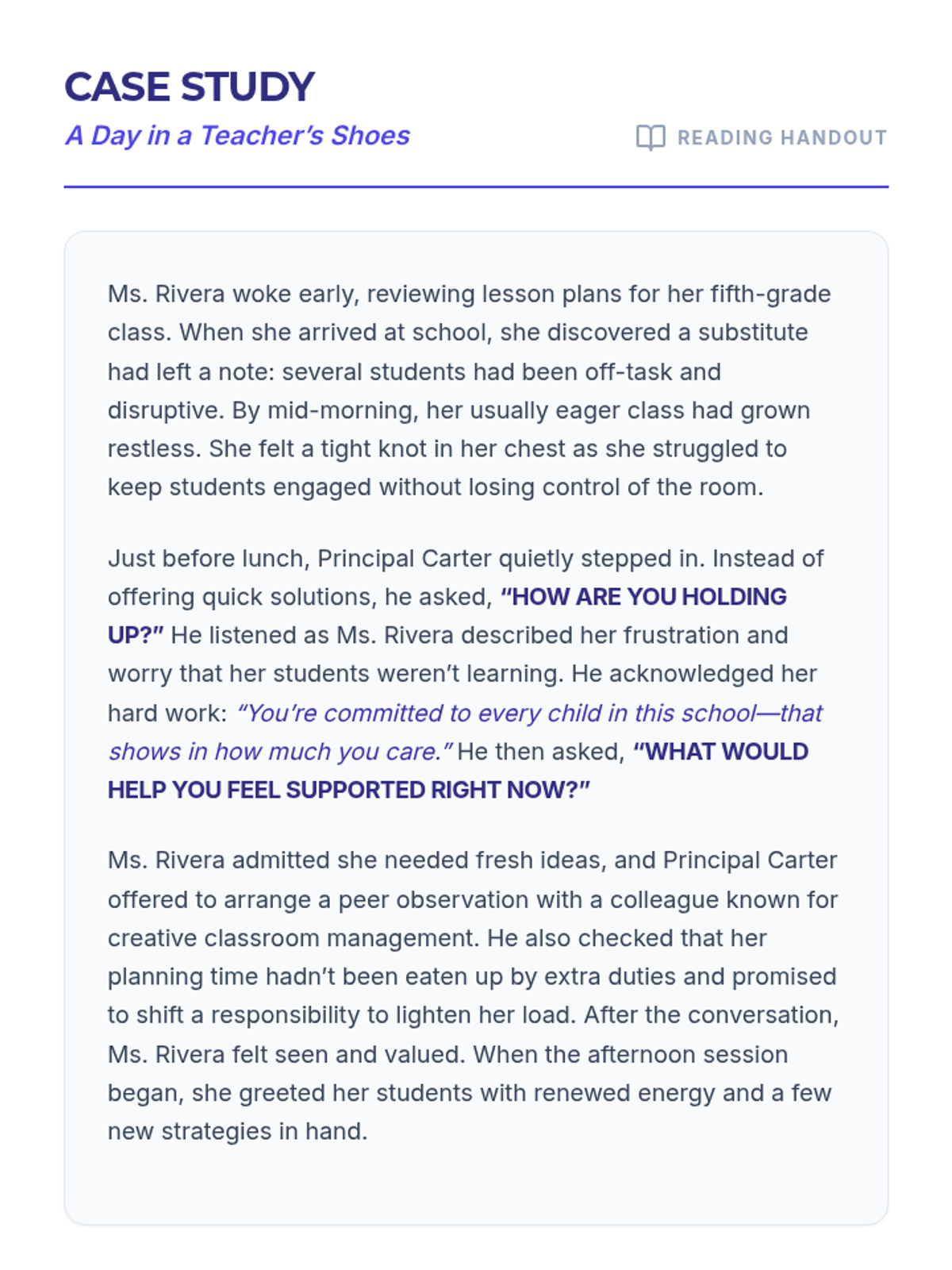 A one-hour professional development session for school leaders focused on cultivating and modeling empathy within the school community. This interactive session uses multimedia, case studies, and hands-on activities to build practical leadership skills.