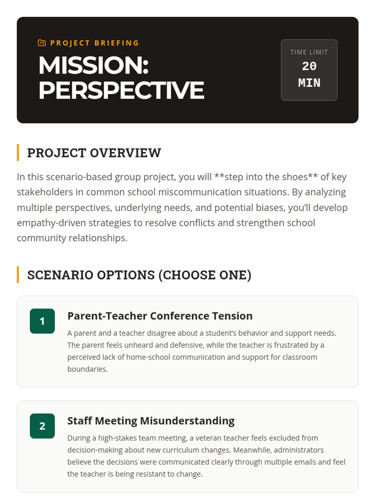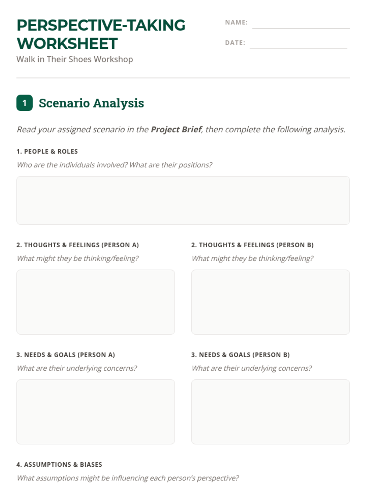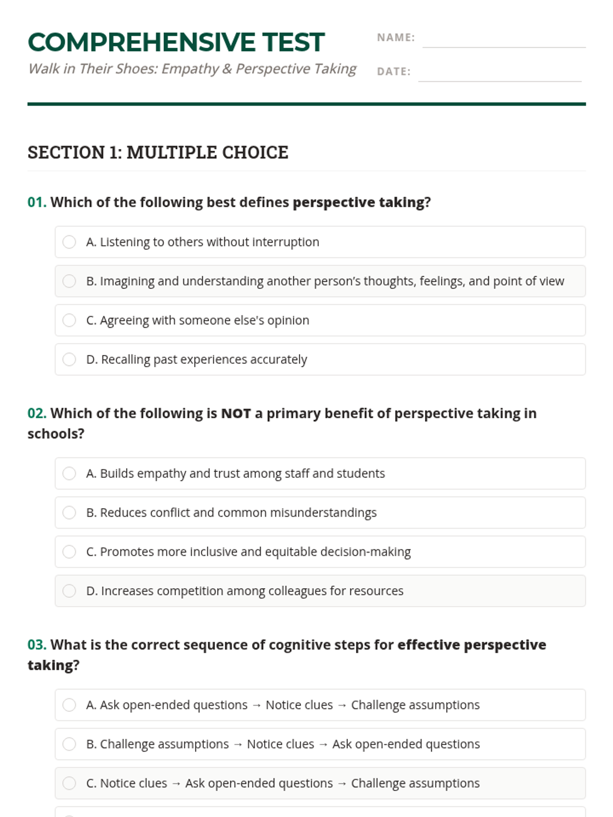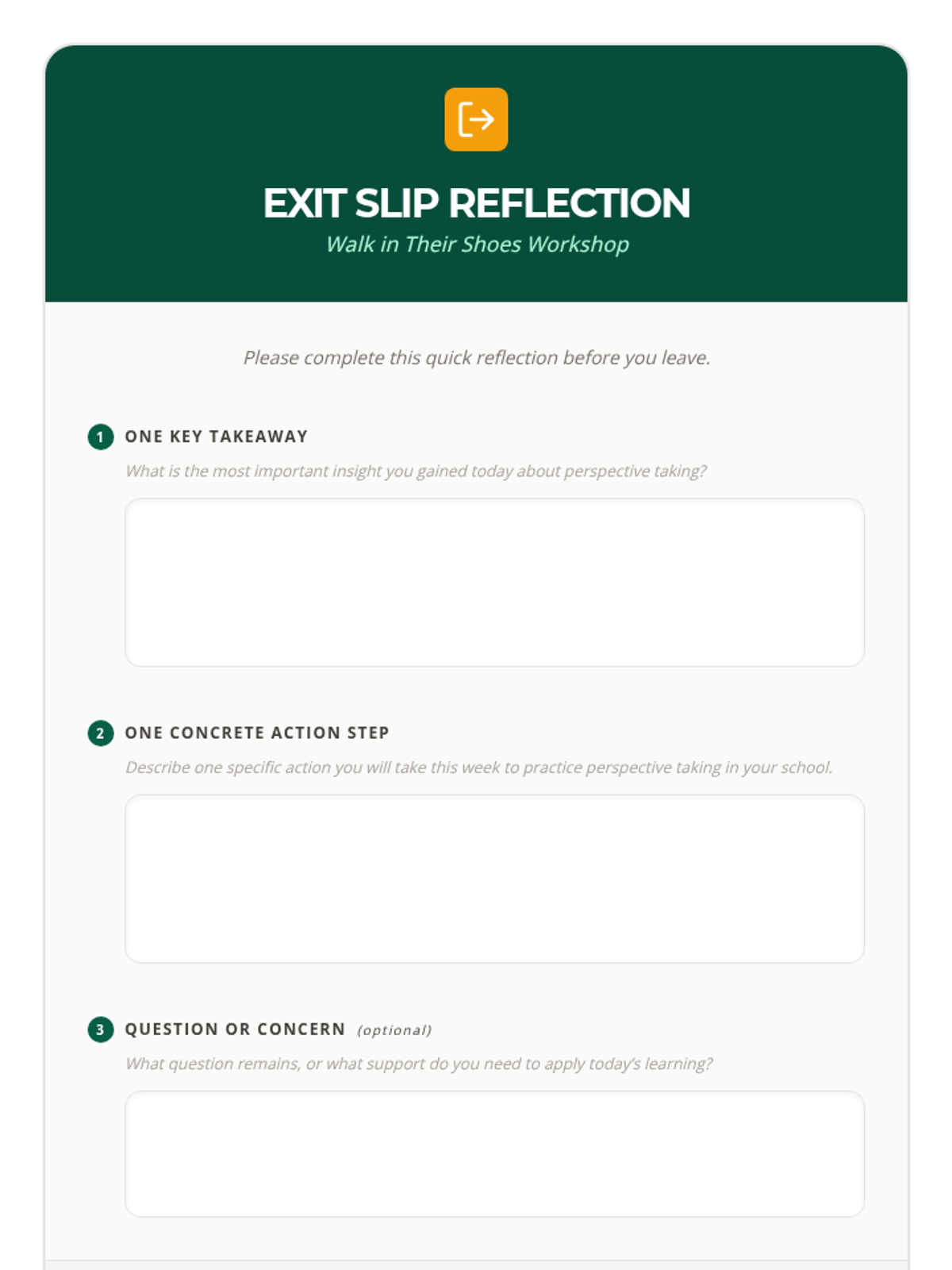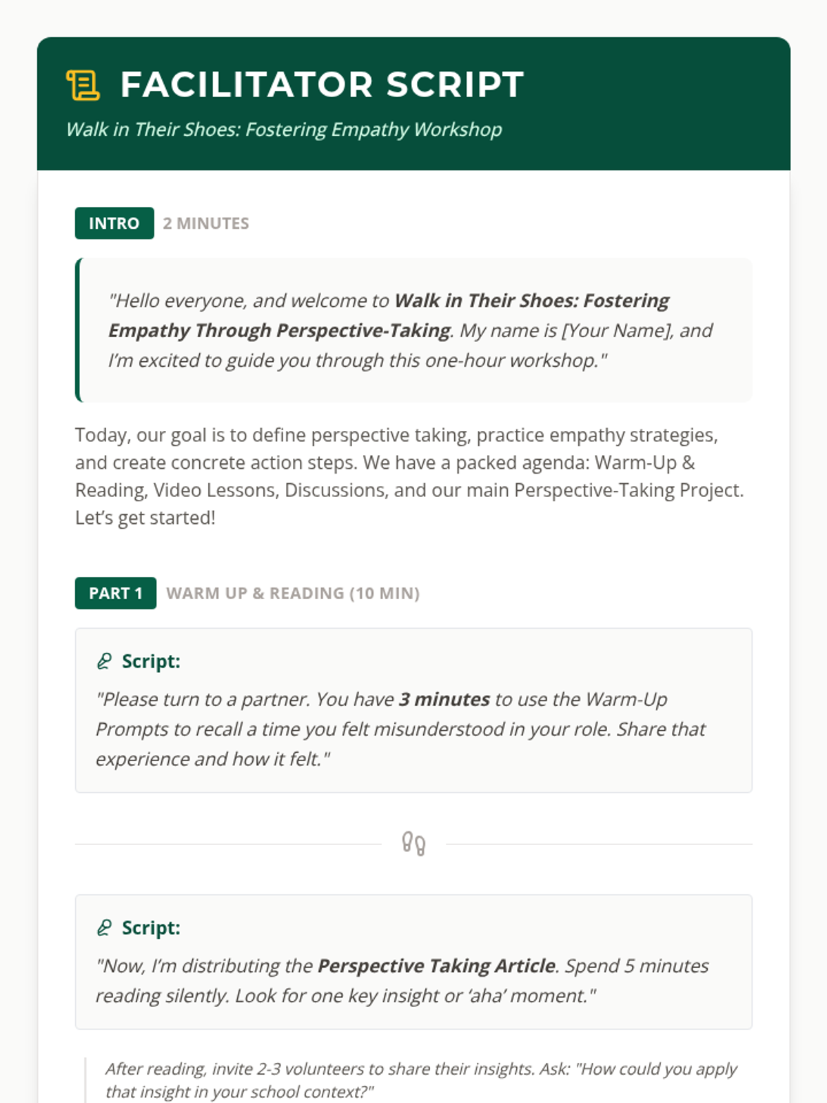 A one-hour workshop for school leaders and educators to practice perspective taking and foster empathy within their school communities through interactive activities and multimedia.