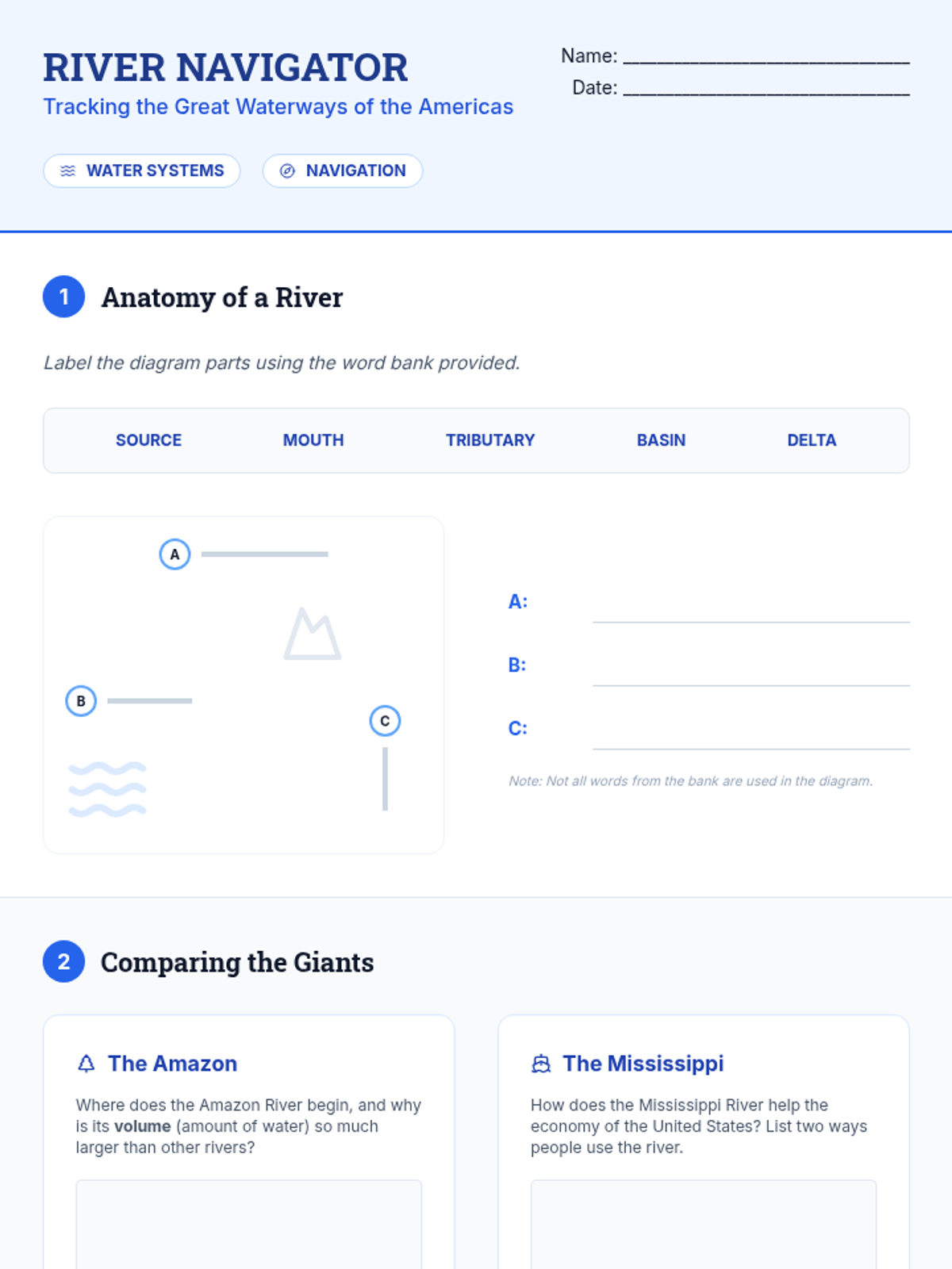 Students trace the paths of major river systems and lakes, discussing their ecological and historical significance.