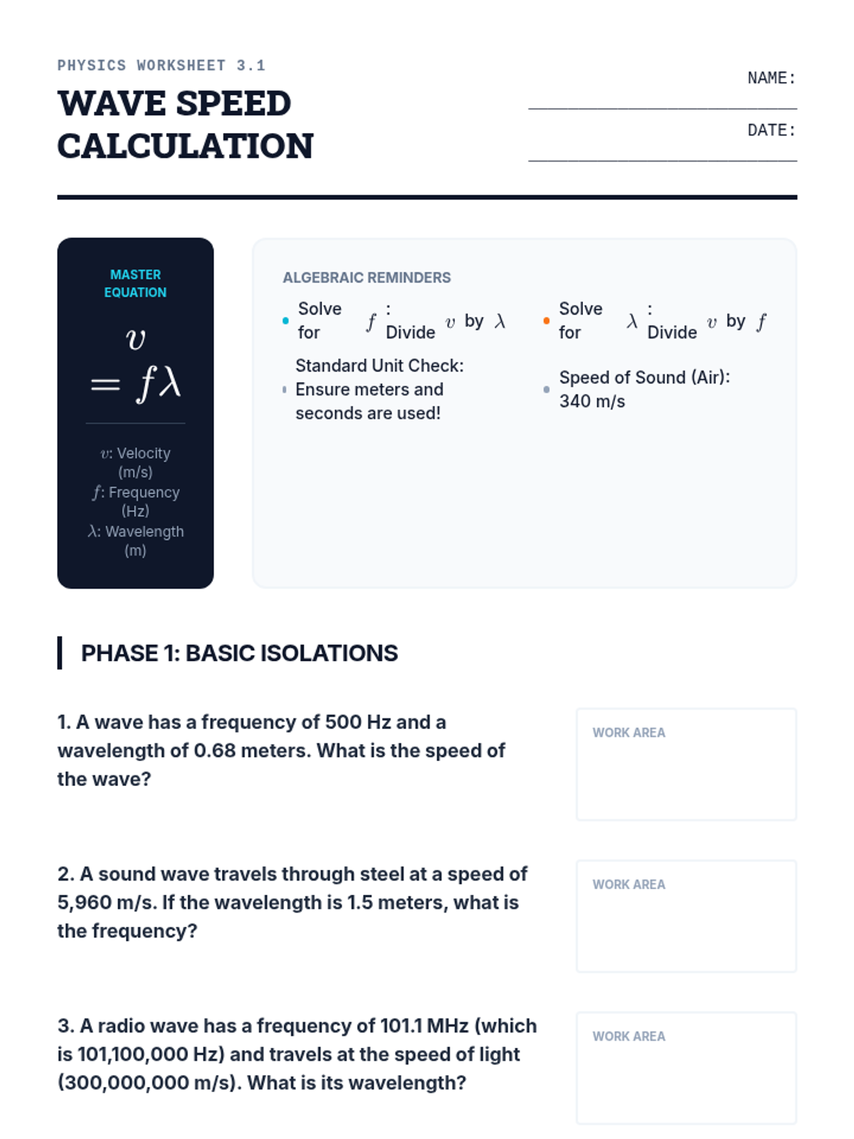 Application of the wave speed equation to solve algebraic problems and understand how medium affects propagation.