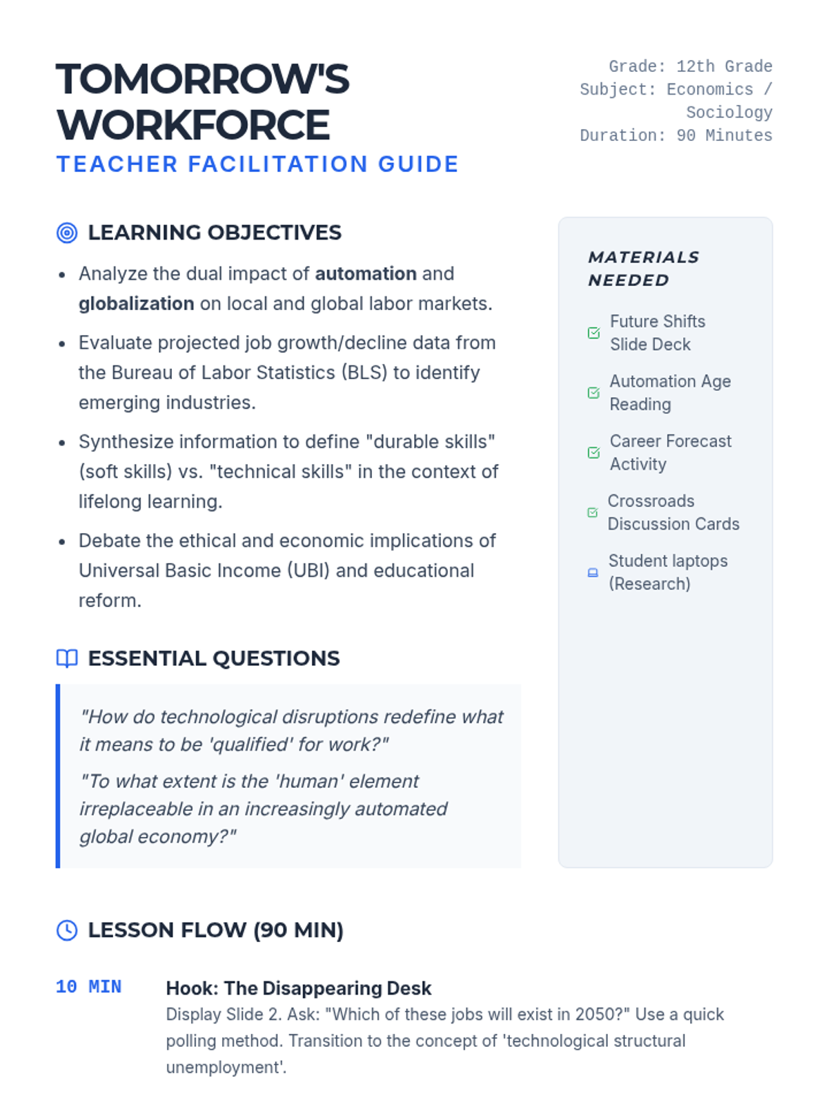 This lesson equips high school students with essential financial literacy skills, focusing on budgeting, saving, and smart investing. Through real-world scenarios and hands-on practice, students learn to navigate debt and plan for a secure financial future.