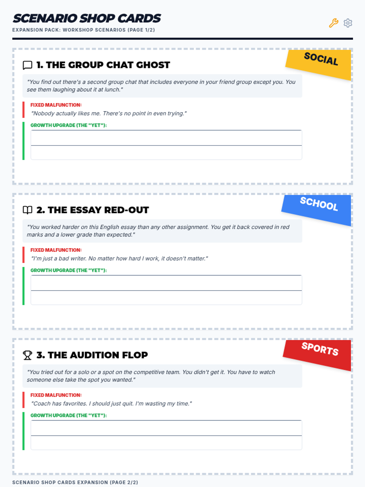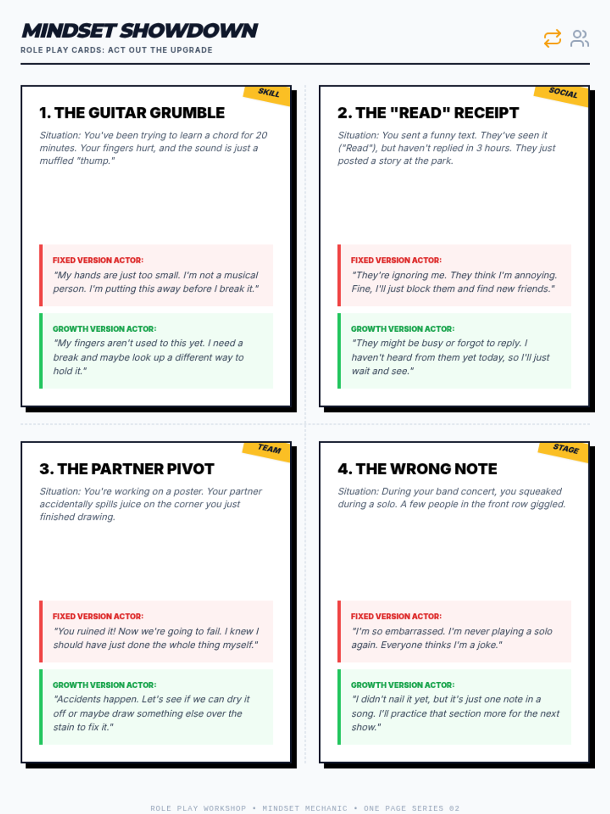 Exploring the difference between fixed and growth mindsets and practicing cognitive reframing of academic failures.