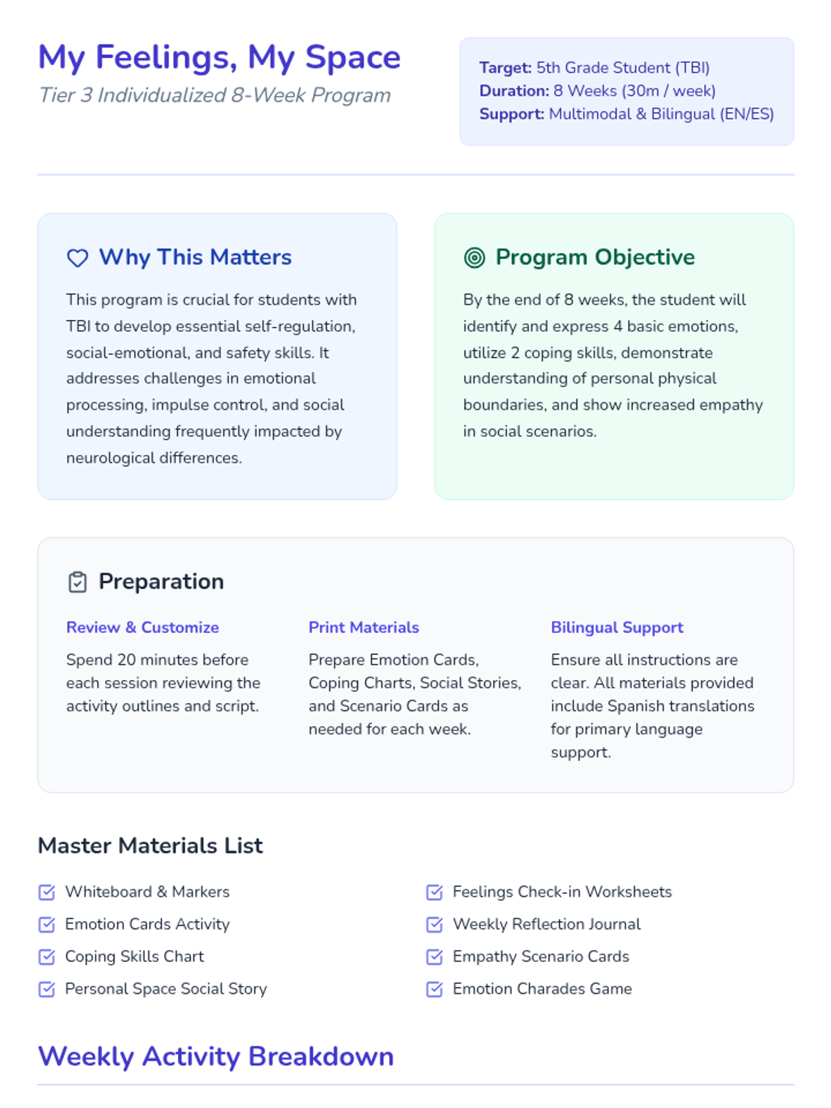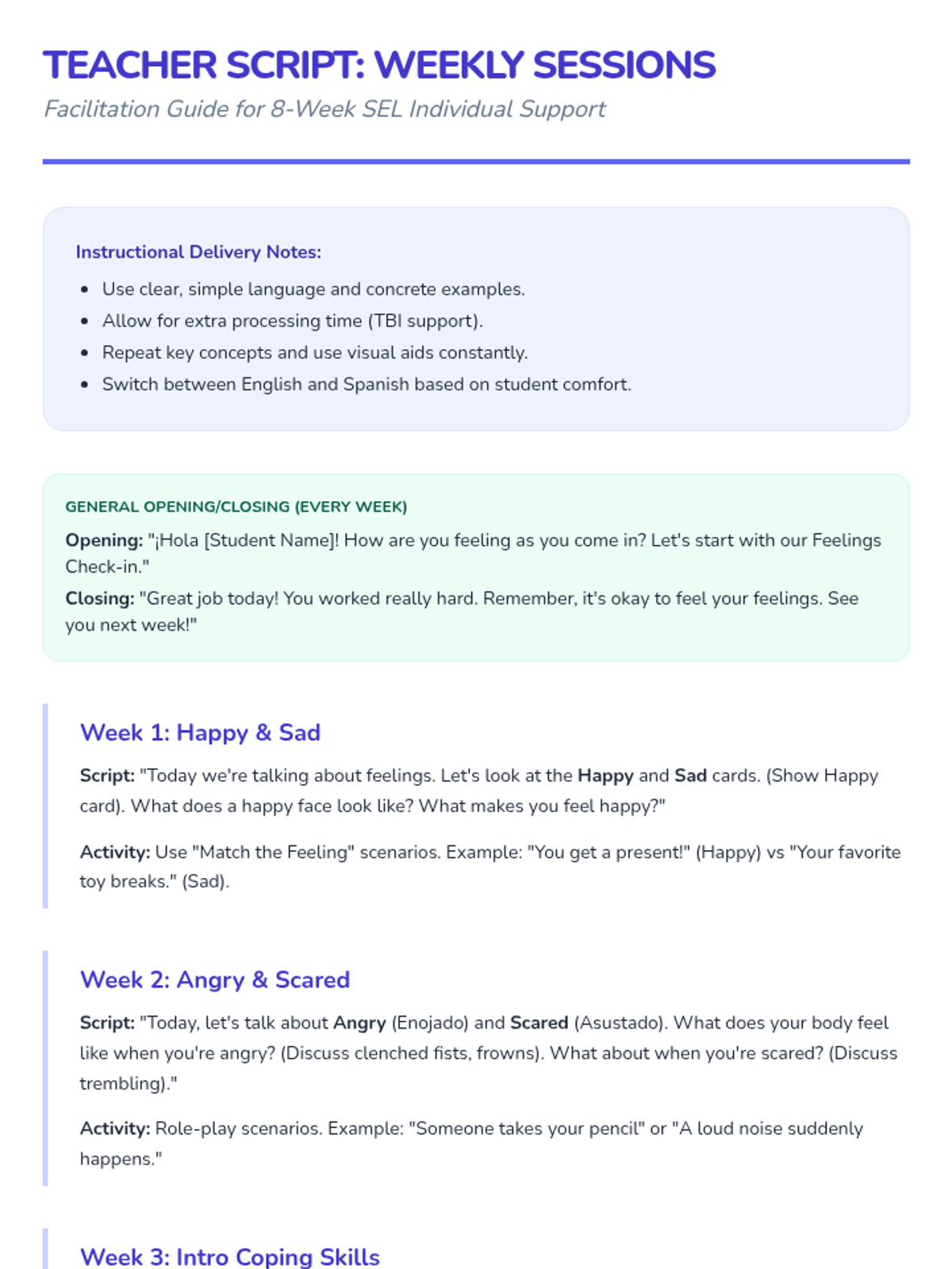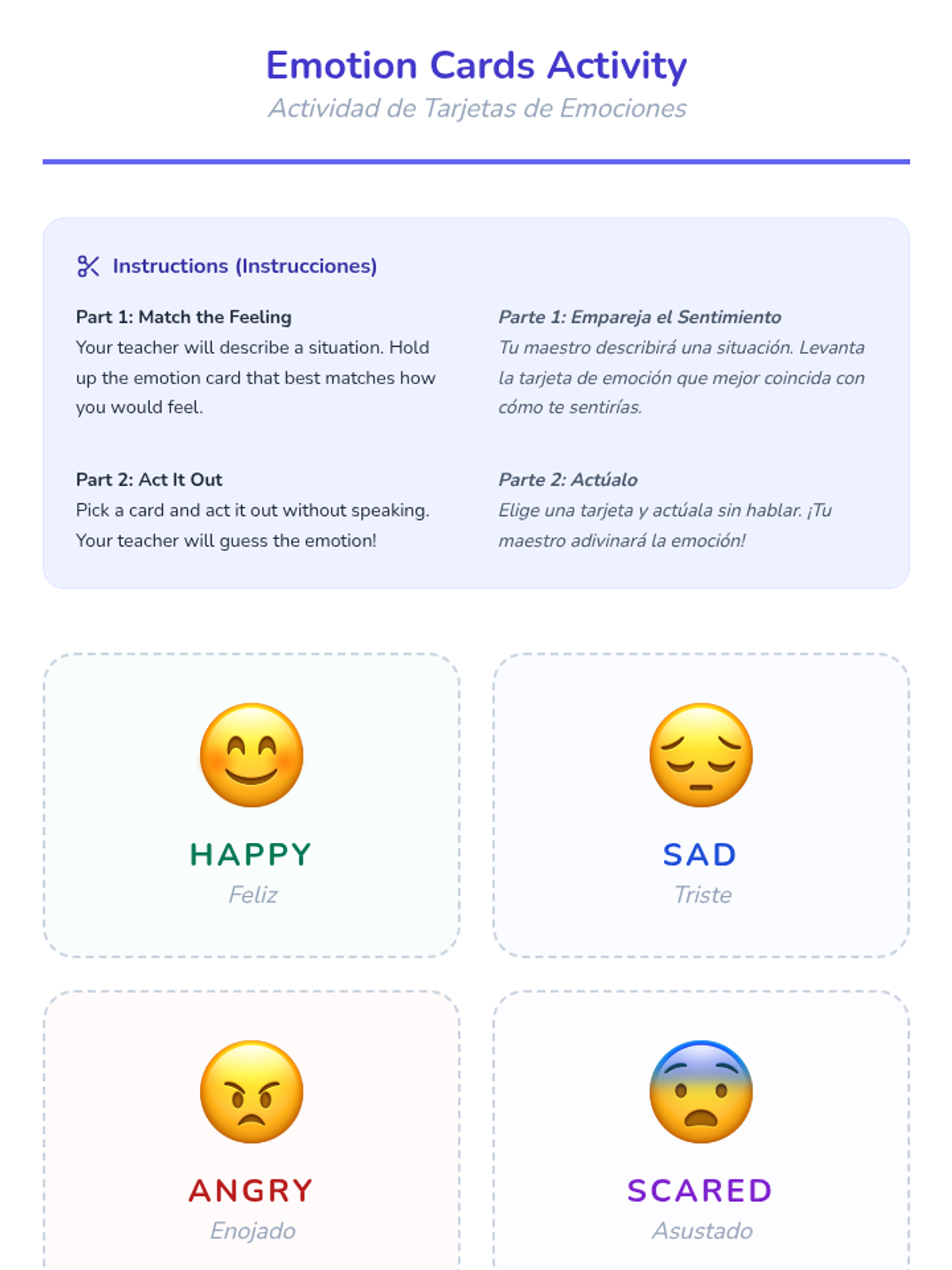 Focuses on identifying and expressing the basic emotions of Happy and Sad using visual aids and modeling.