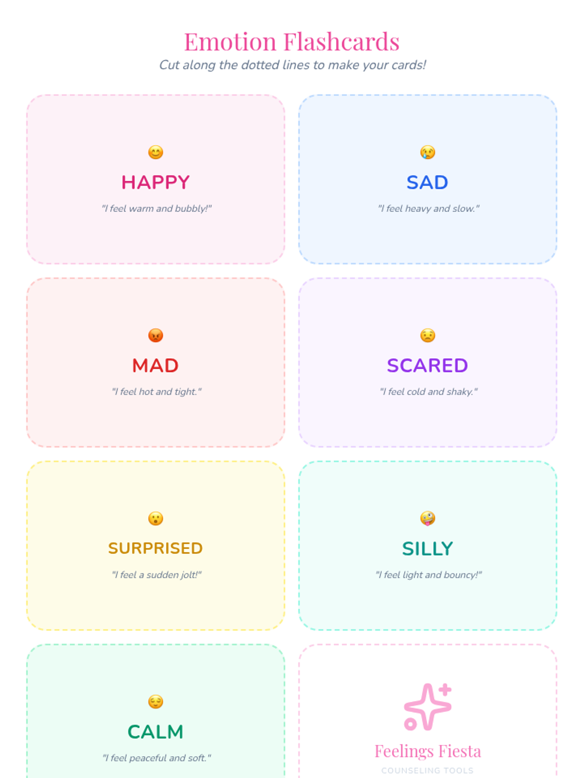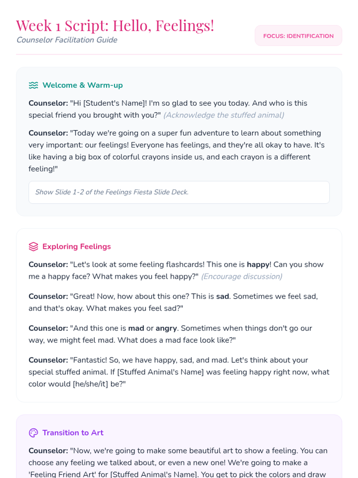 Introduction to identifying core emotions (happy, sad, mad) using colors and stuffed animals.