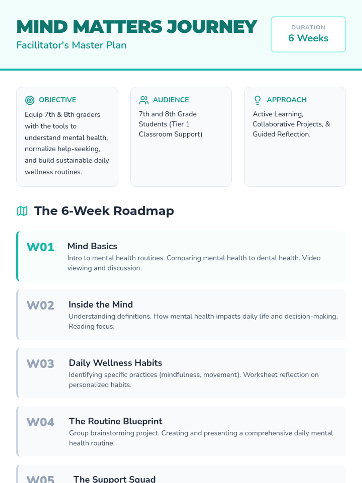 An introductory session comparing mental health to dental health and establishing the importance of daily routines.