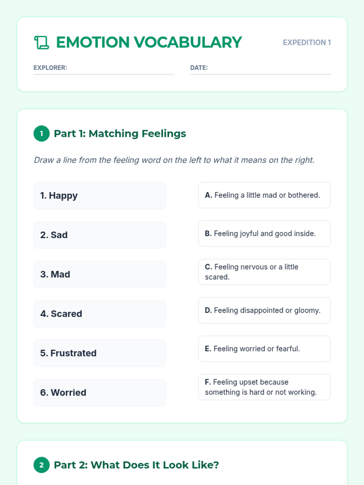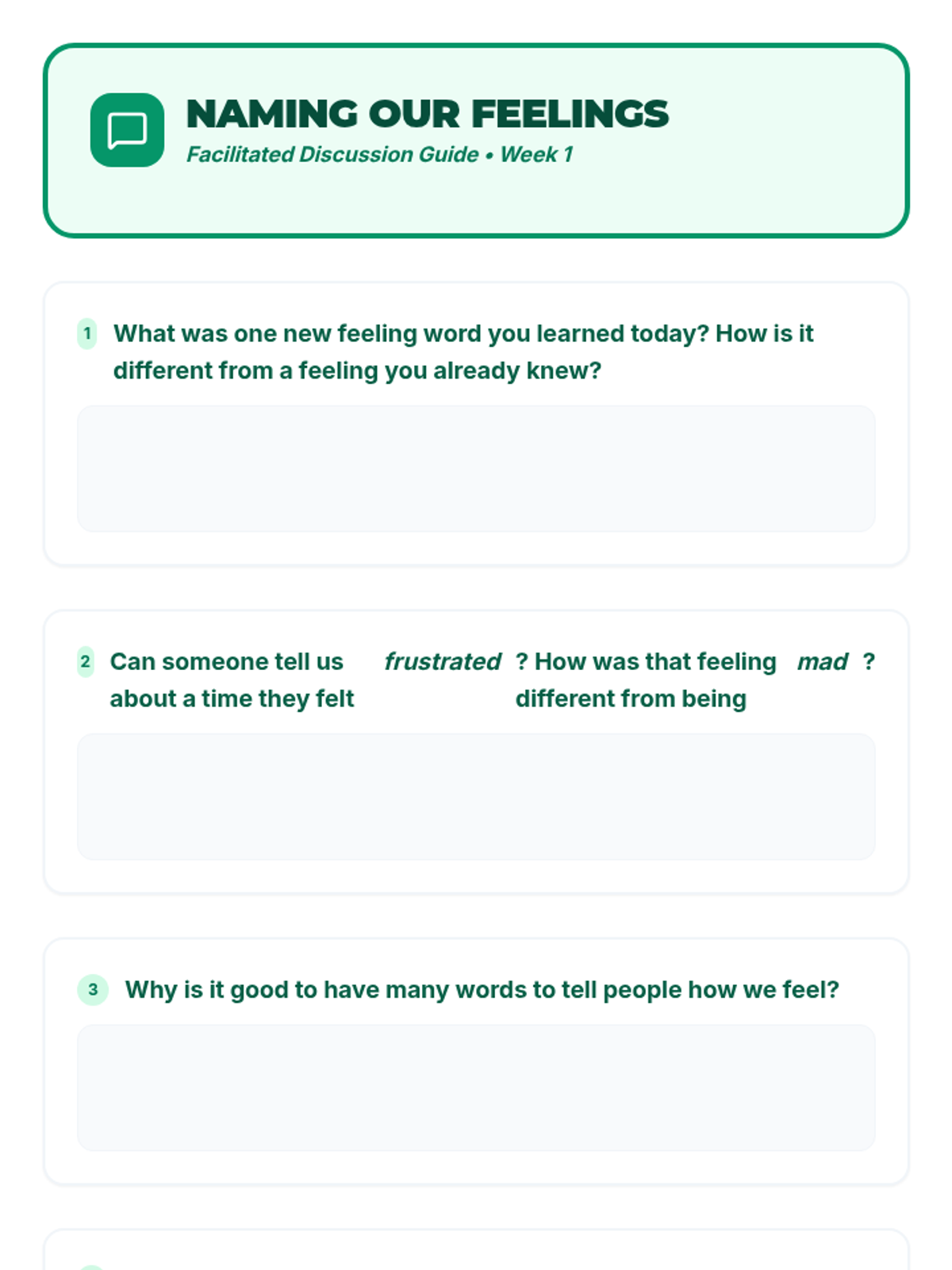 Introduction to identifying emotions, physical body clues, and expanding emotional vocabulary.