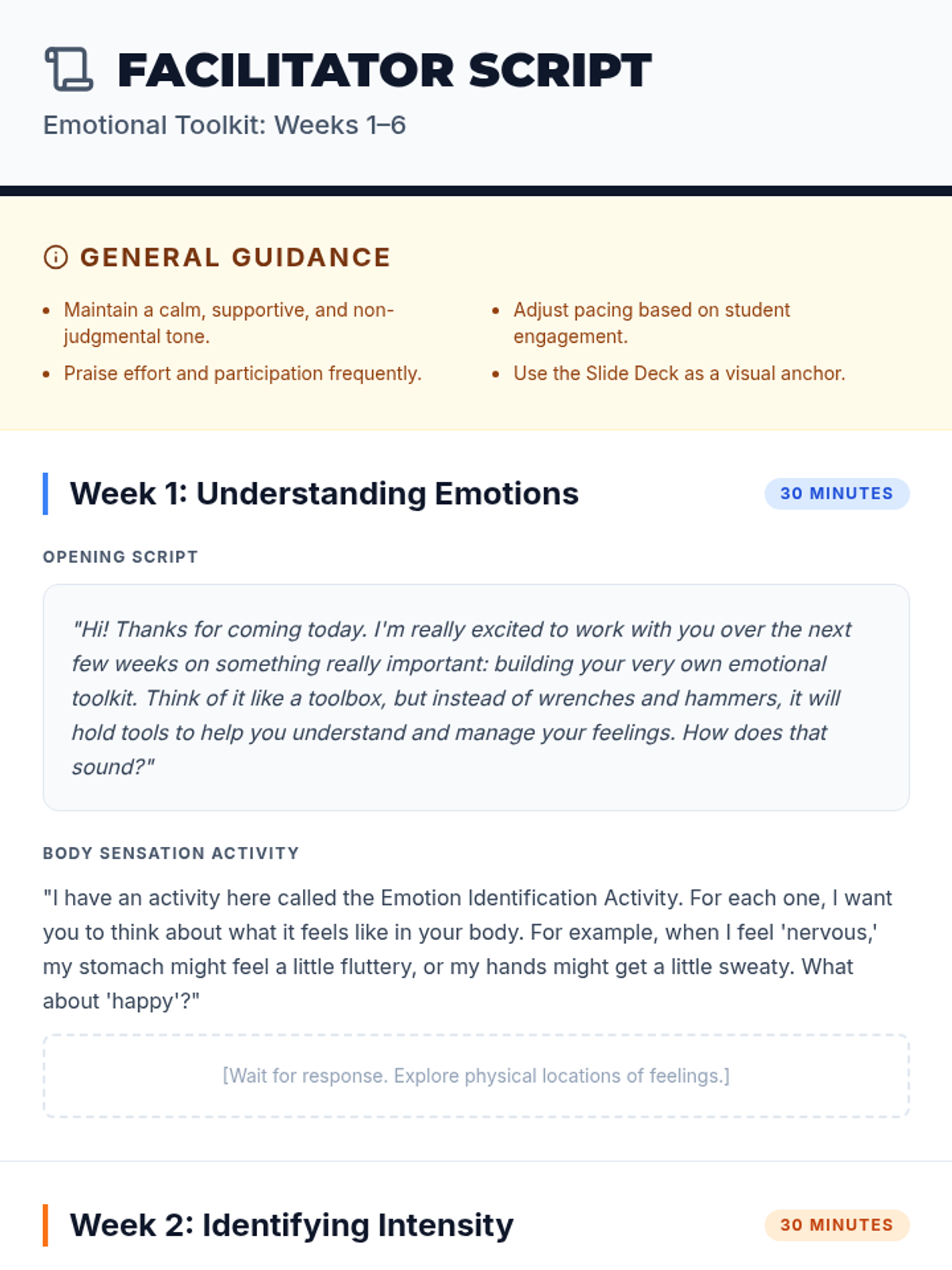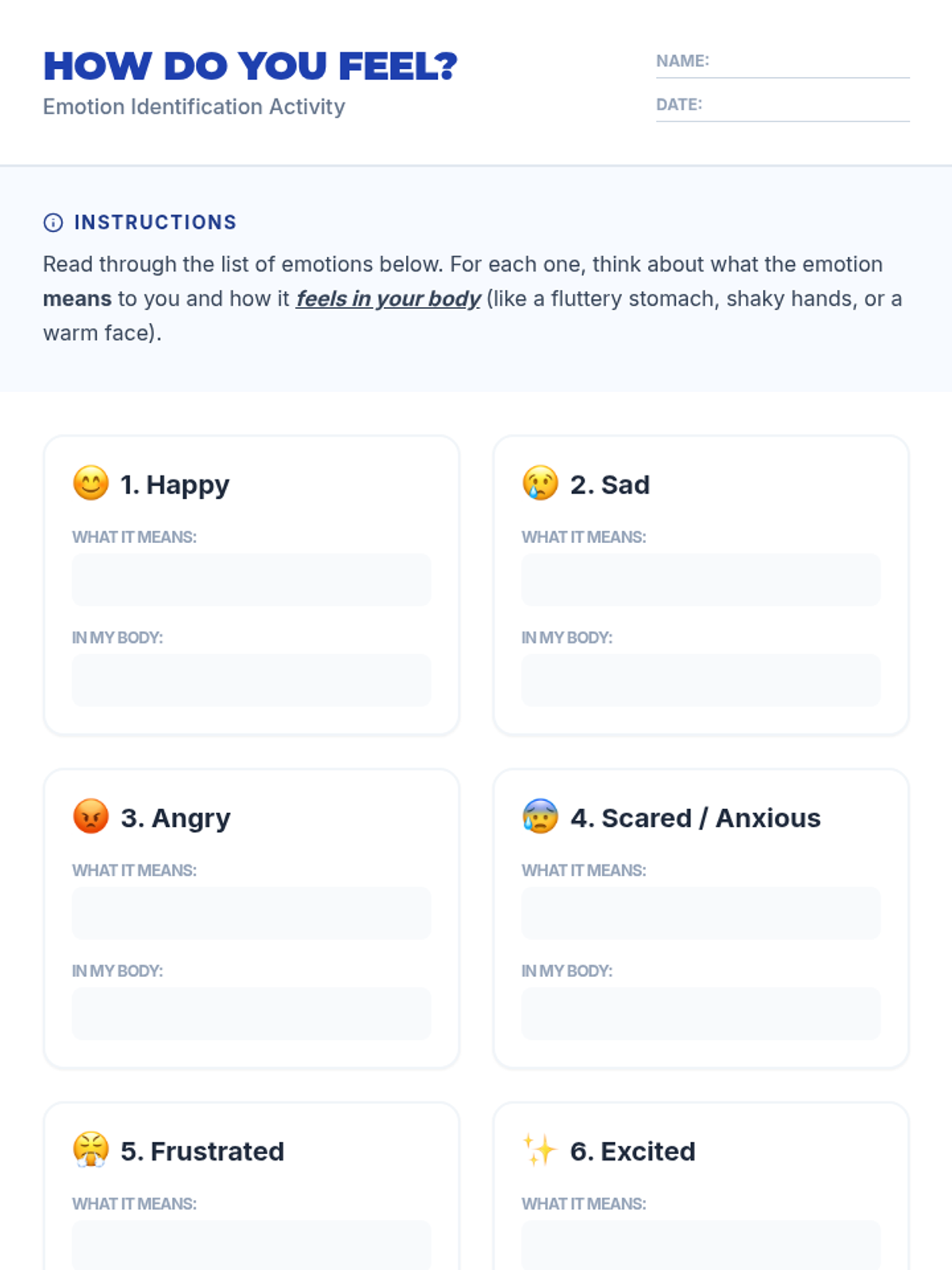 Introduction to the toolkit concept and identifying basic emotions and their physical sensations.
