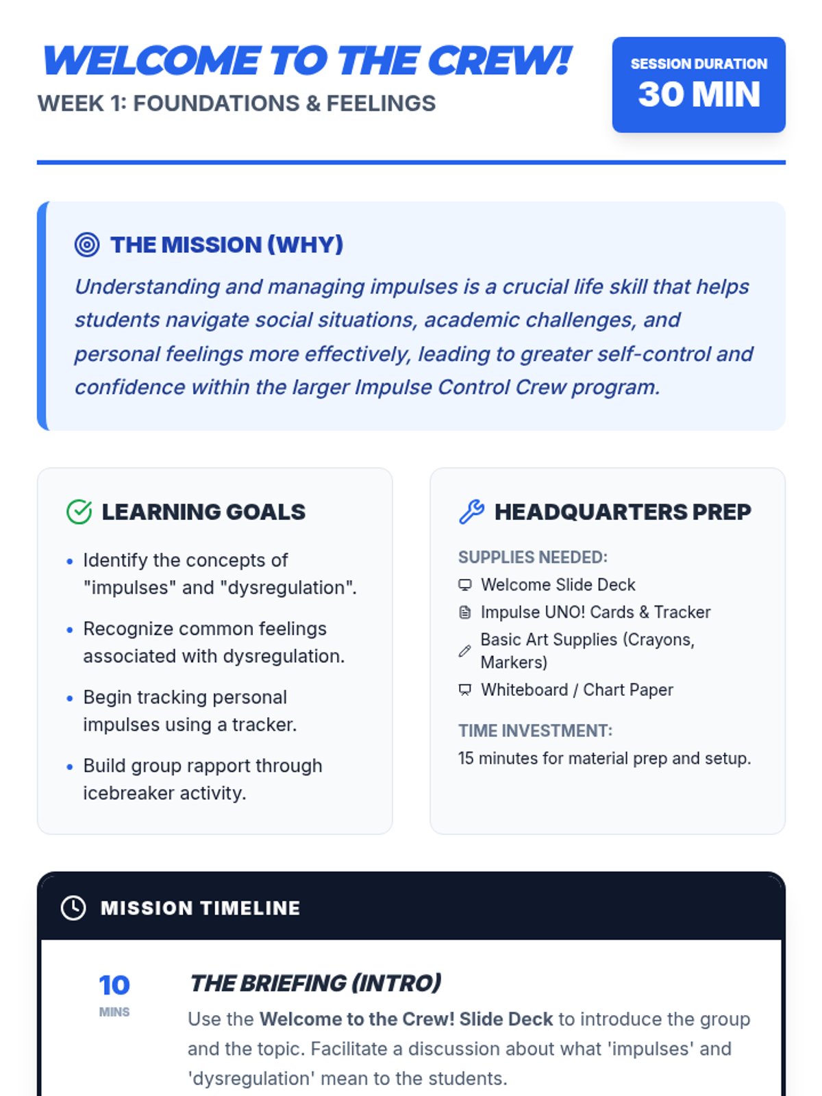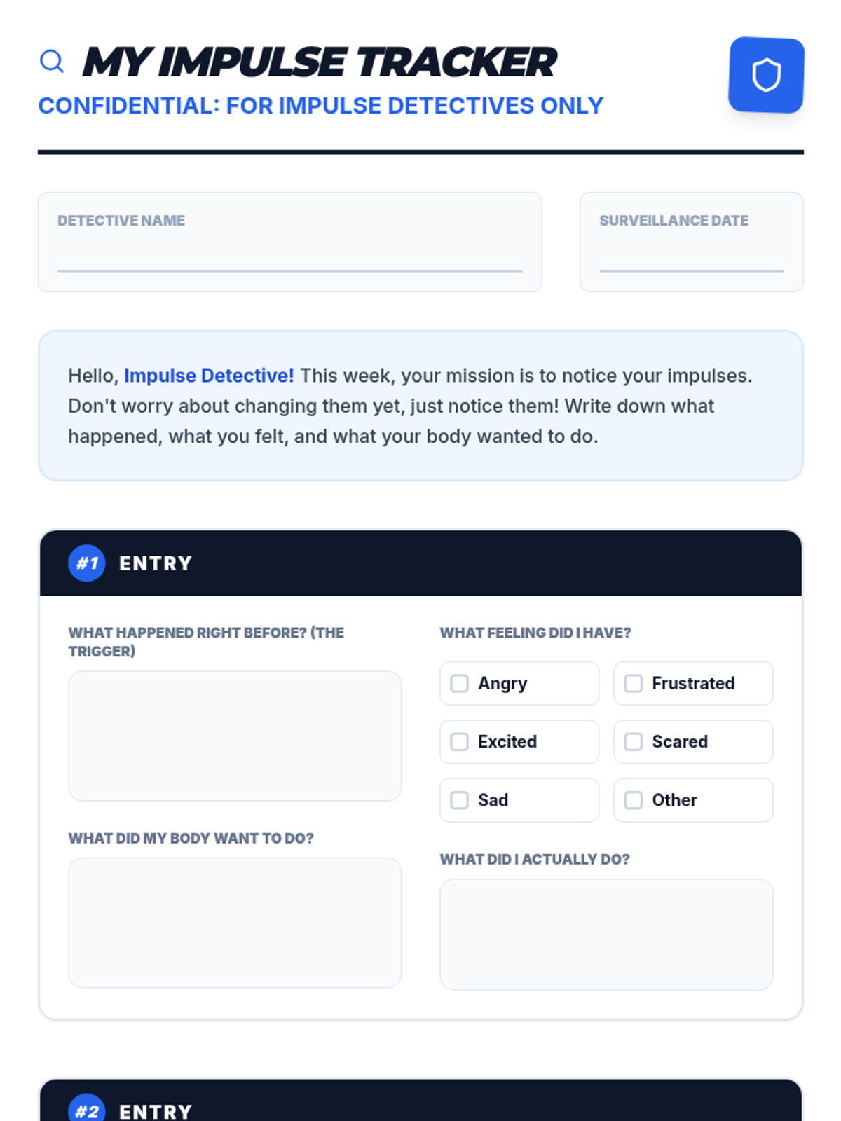 Introduction to the group, the concept of impulses, and dysregulation. Includes an icebreaker and the initial self-tracking tool.