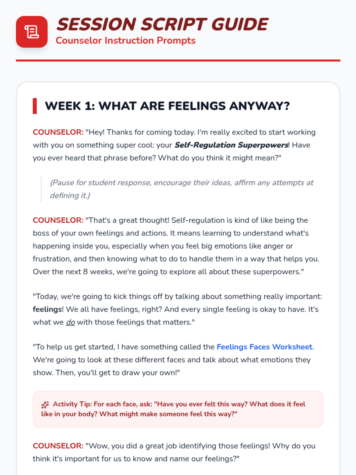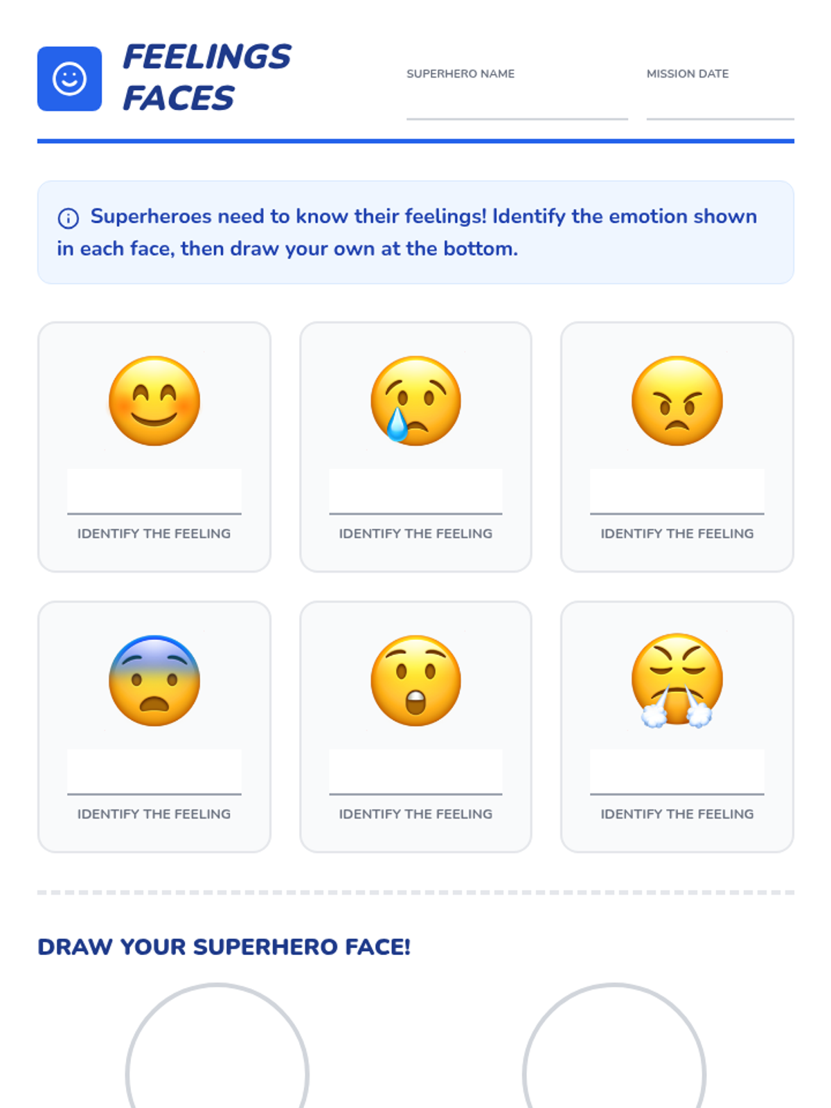 Introduction to the program and identifying basic emotions through the 'Feelings Faces' activity.
