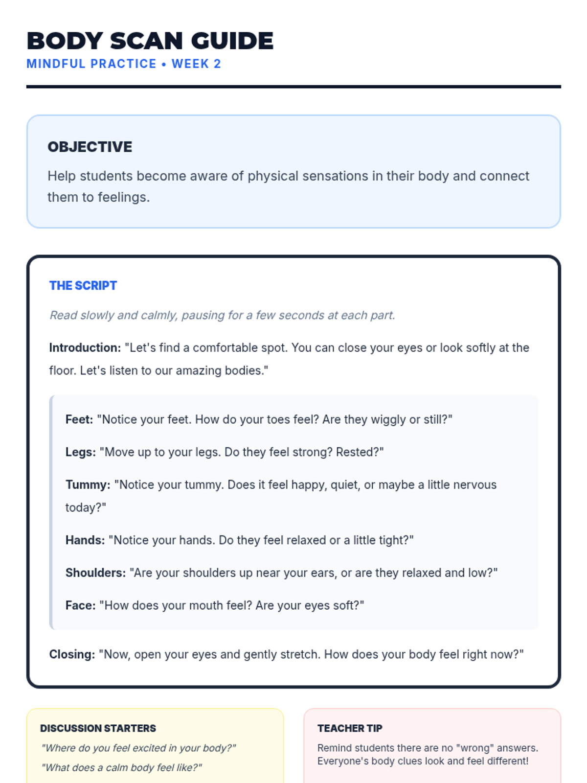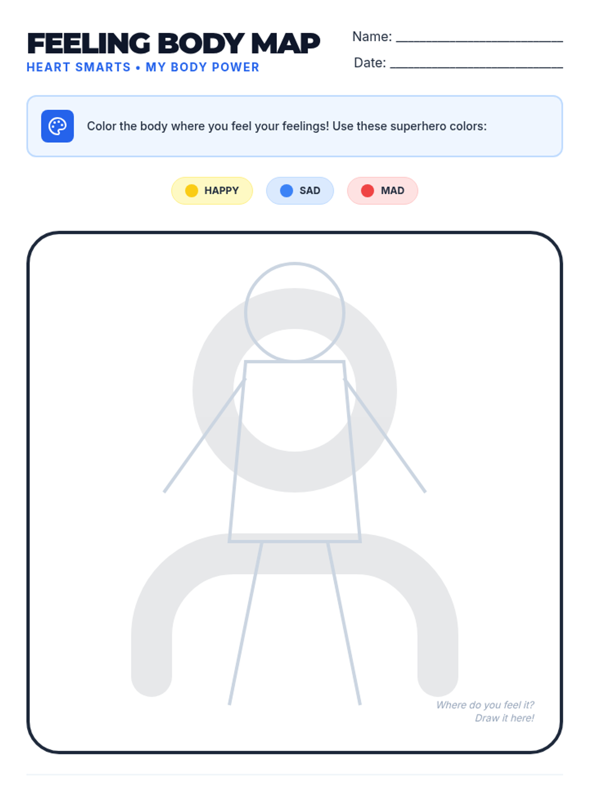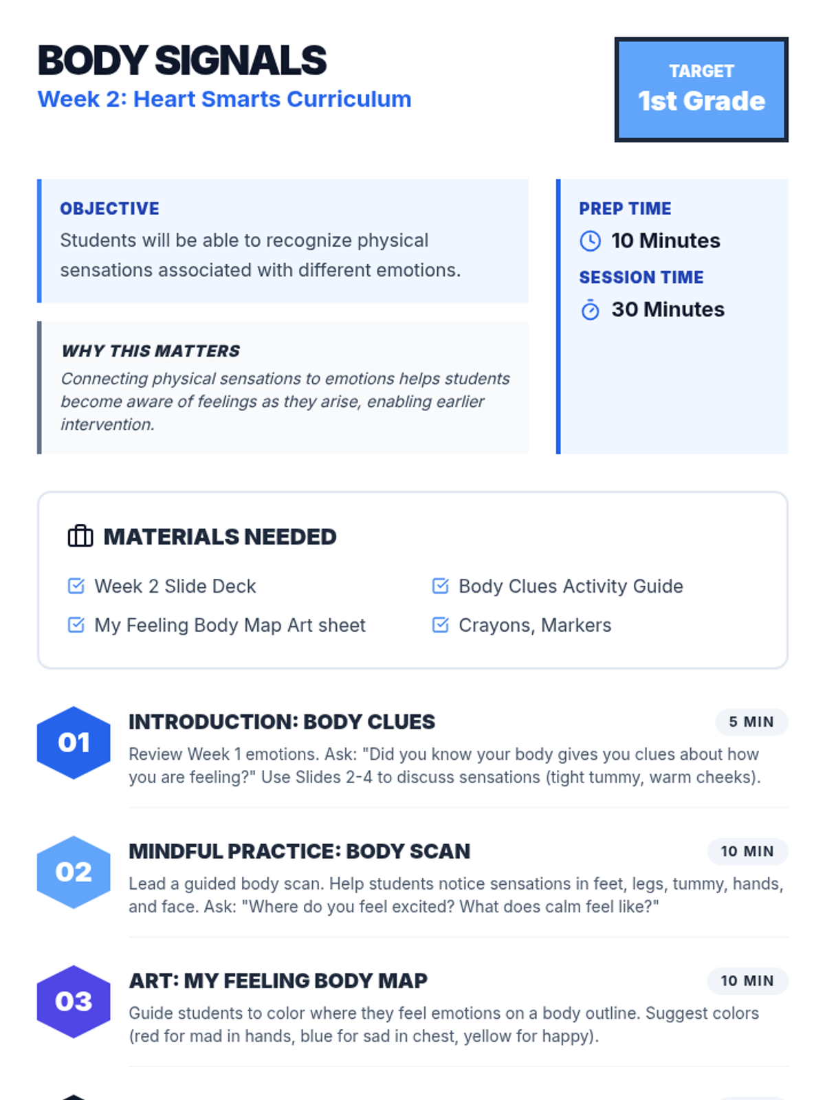 Students explore how their bodies provide physical clues for different emotions, building self-awareness.