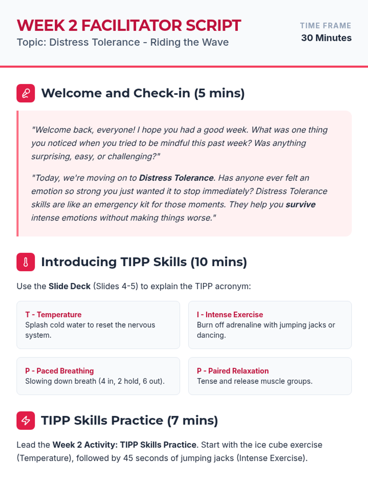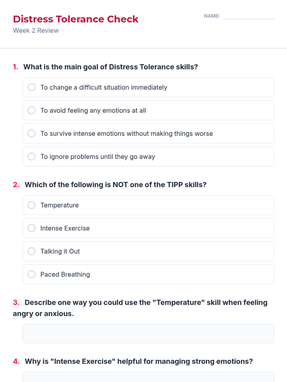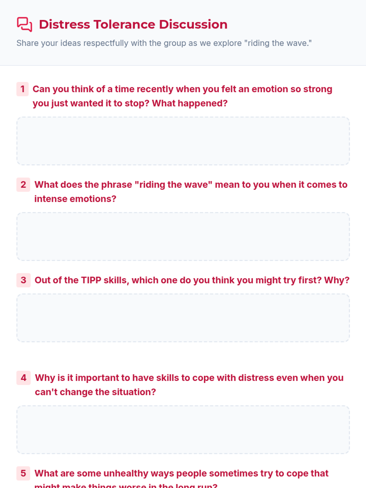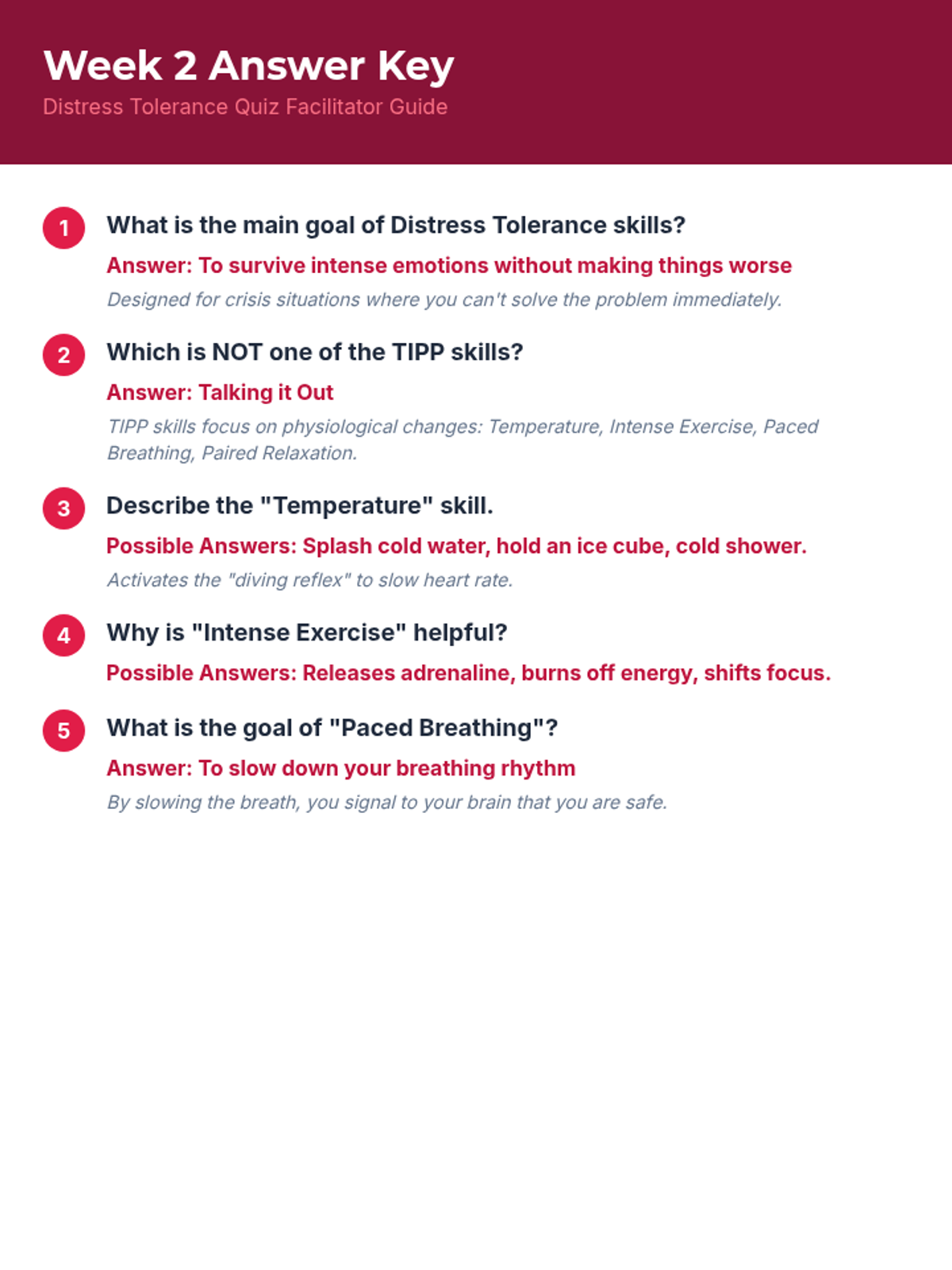 Learning TIPP and other crisis survival skills to manage overwhelming emotions.