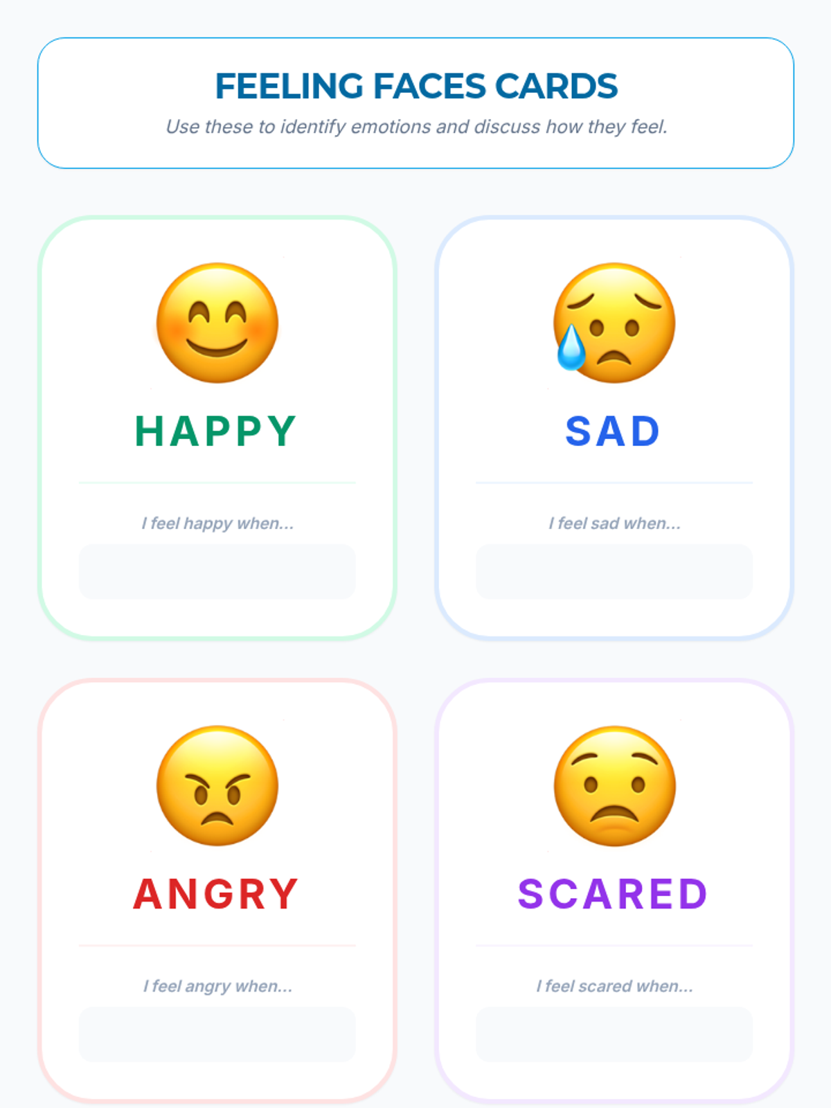 A set of visual and supportive resources designed to help vulnerable adults identify behavioral triggers and manage escalation through self-reflection and proactive planning.