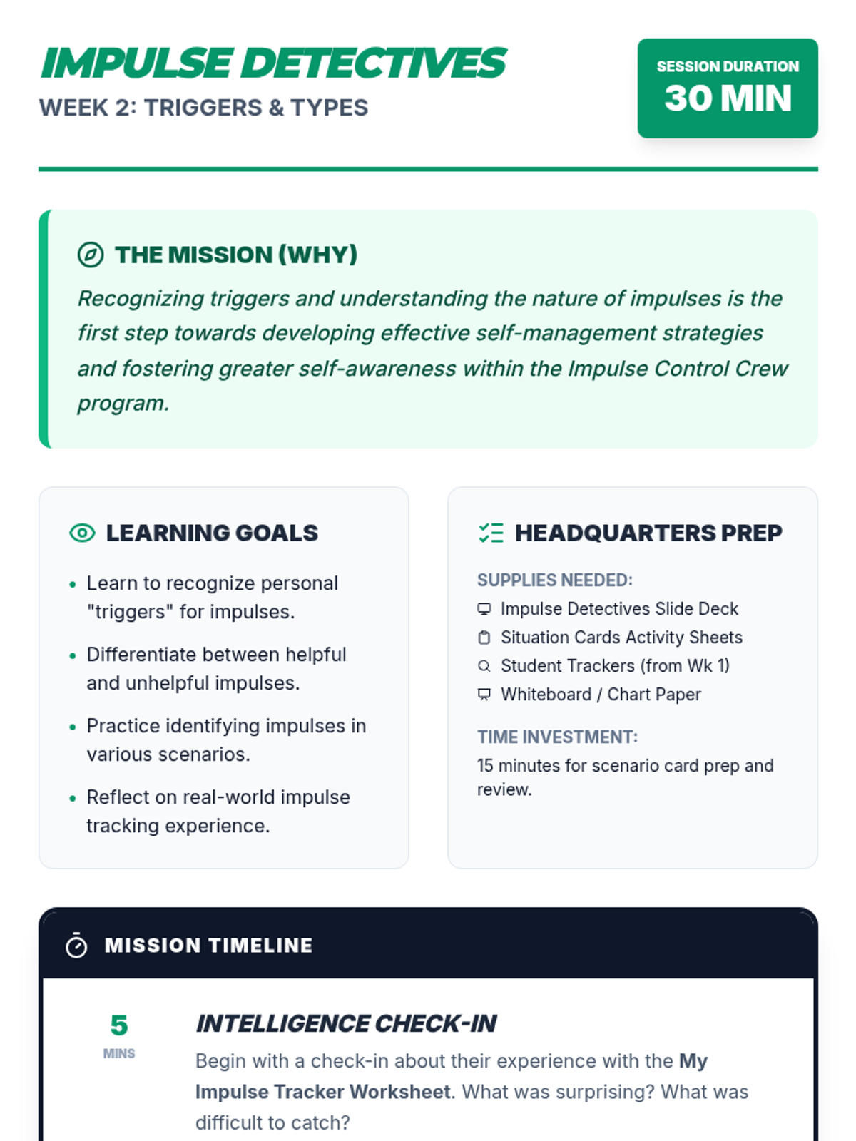 Focuses on identifying personal 'triggers' and distinguishing between helpful and unhelpful impulses using scenario analysis.
