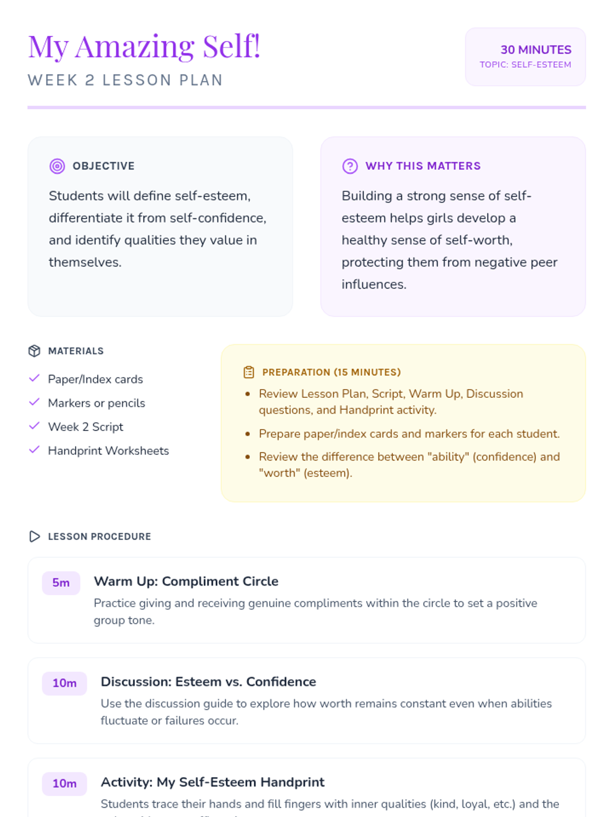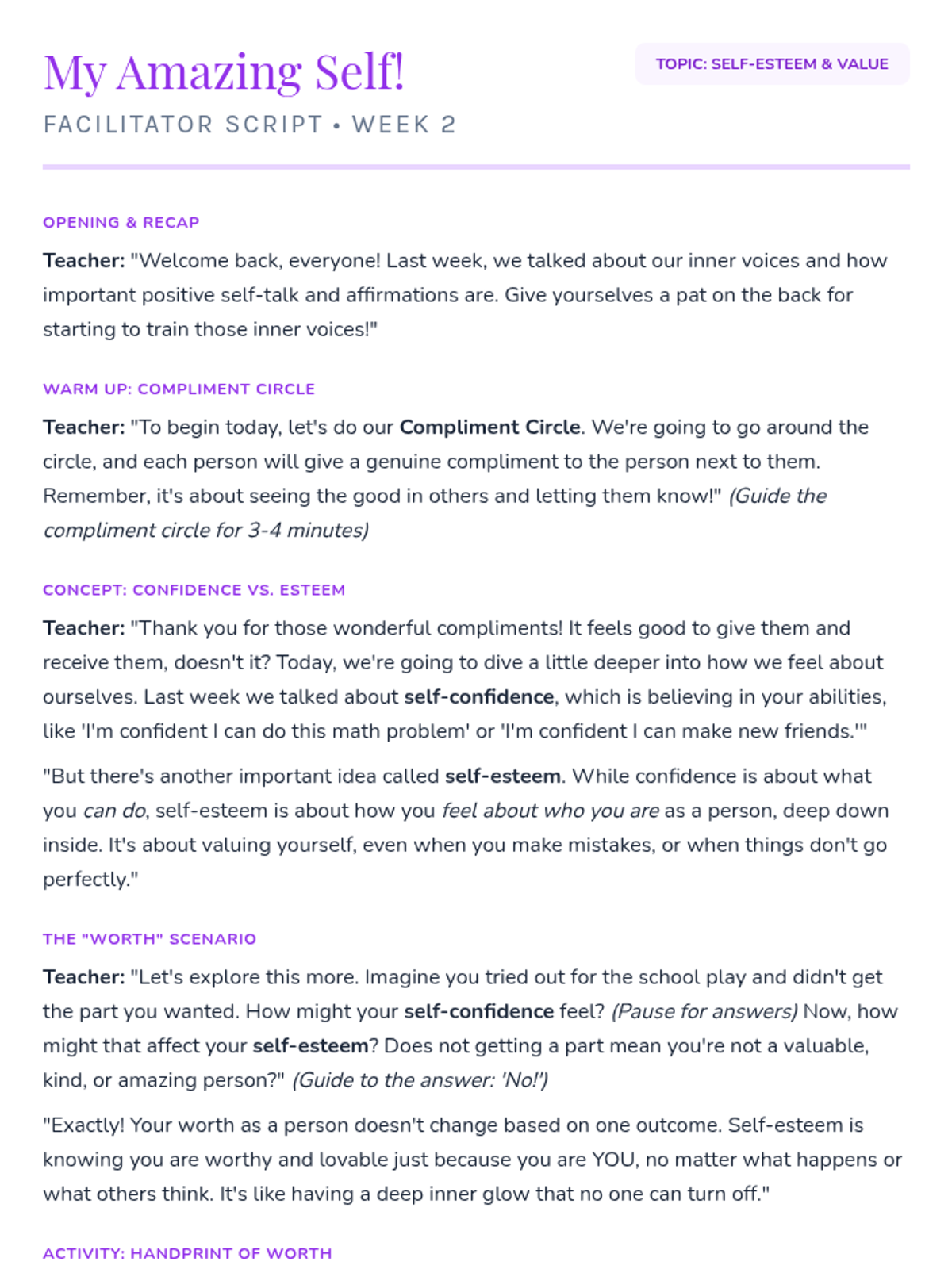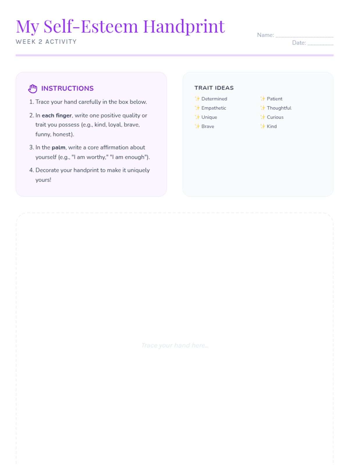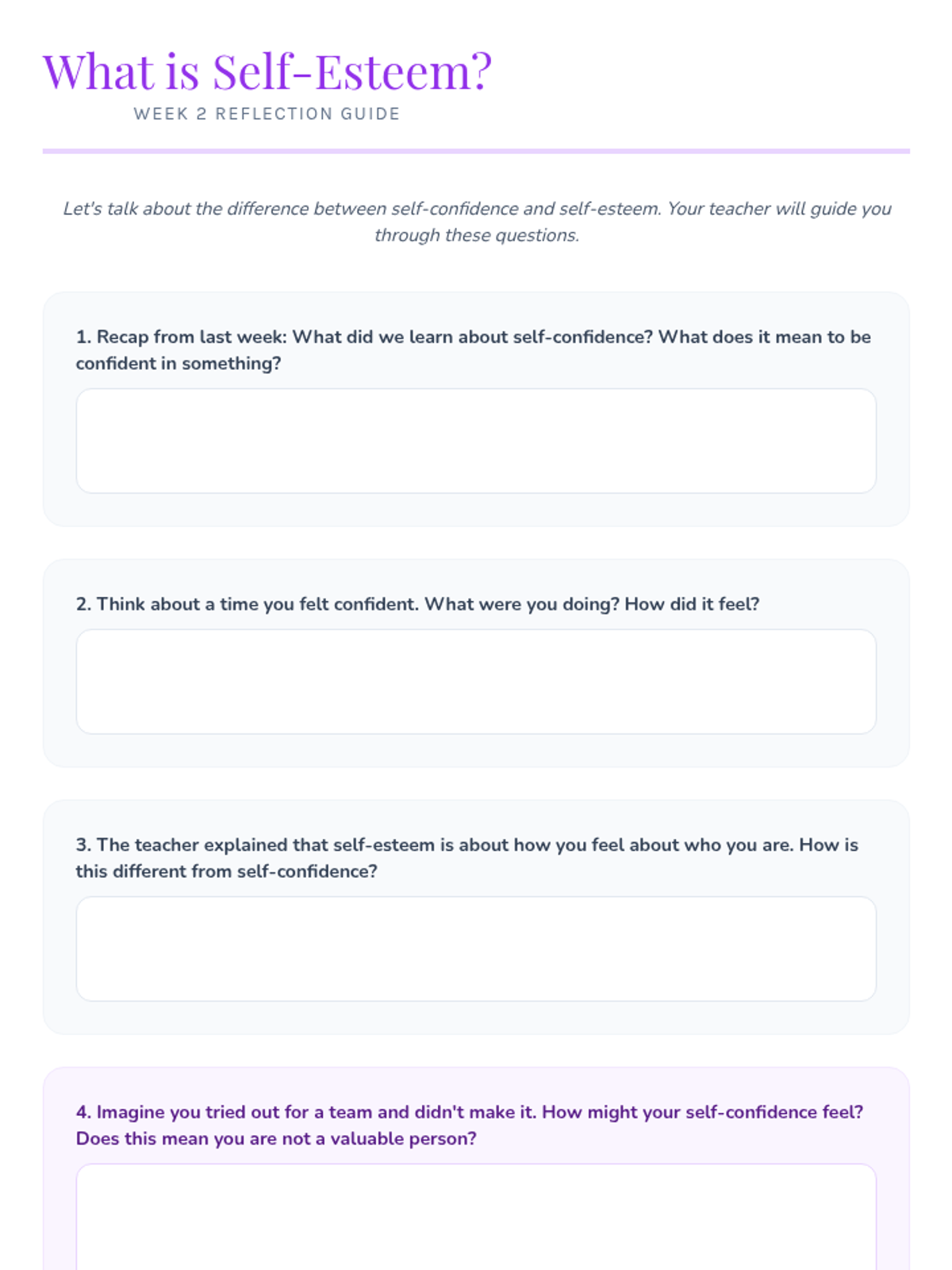Building a healthy sense of self-worth by exploring self-esteem and identifying unique personal qualities.