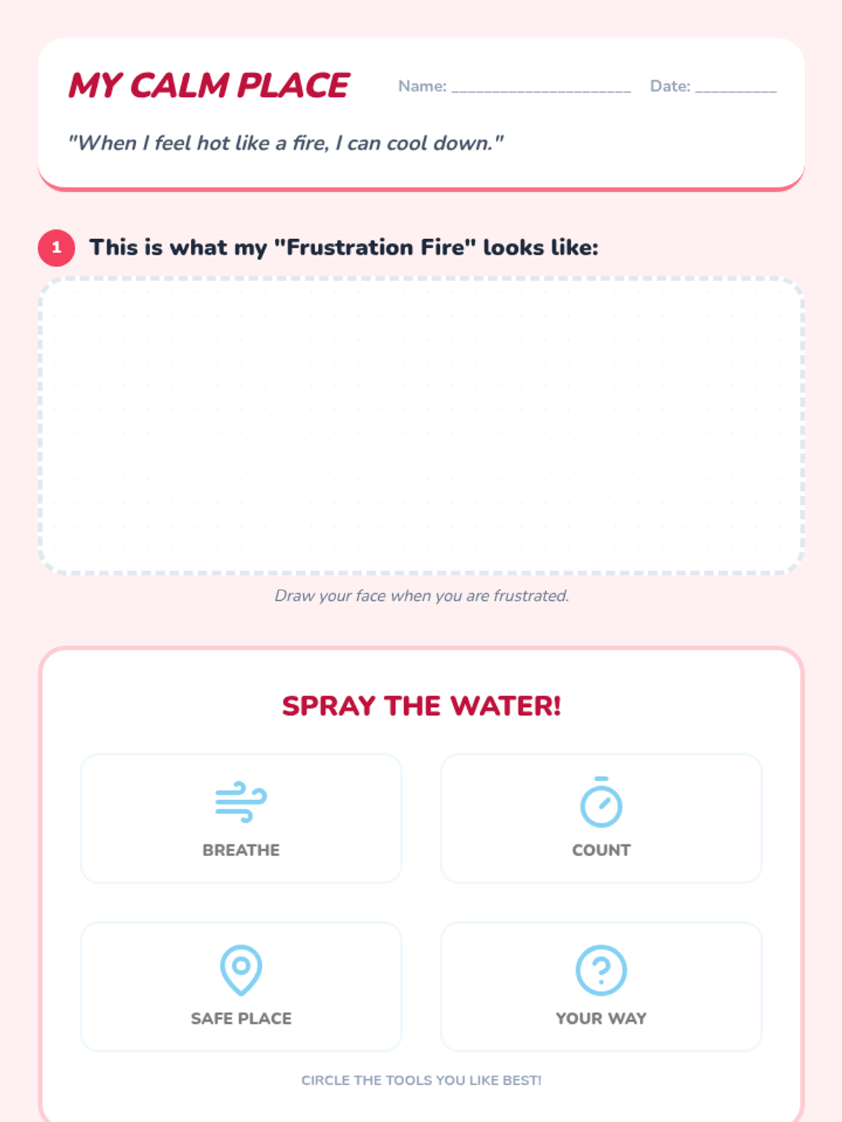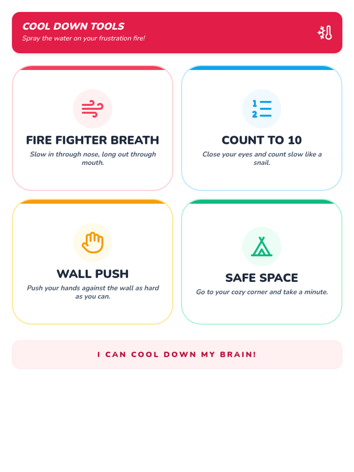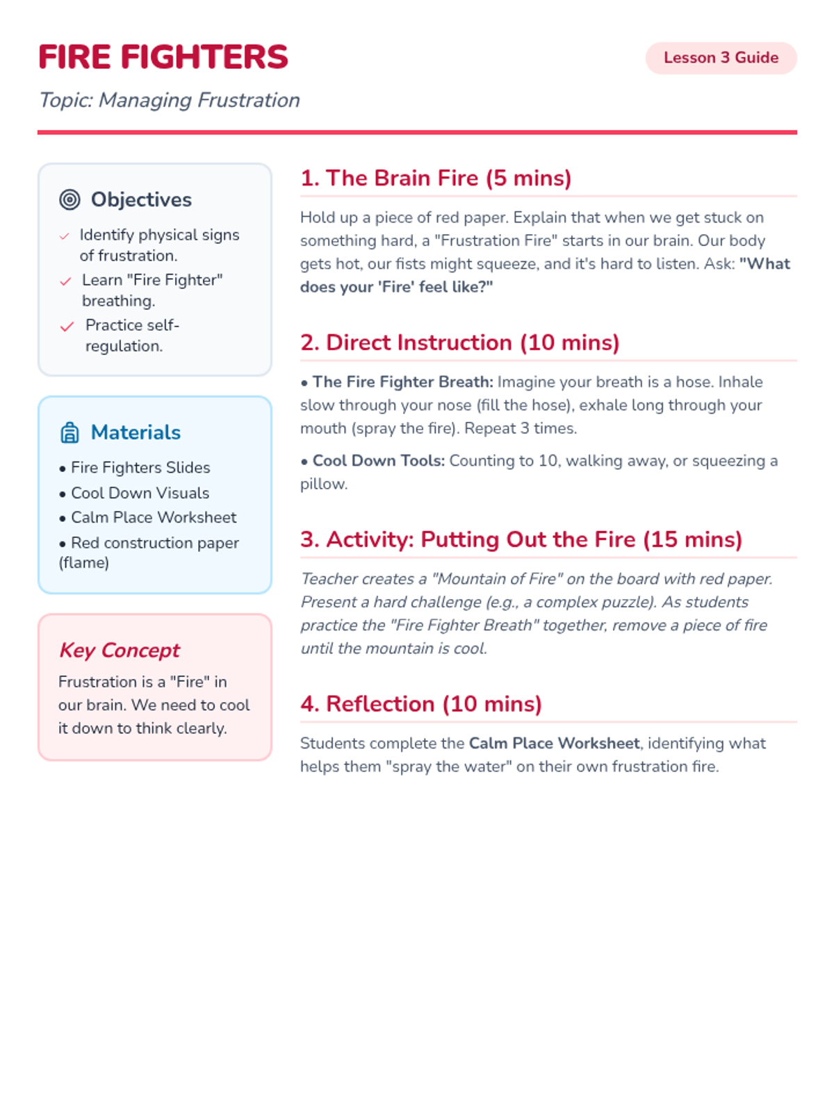 Weeks three and four focus on identifying big emotions and using a calm-down choice board with deep breathing techniques.