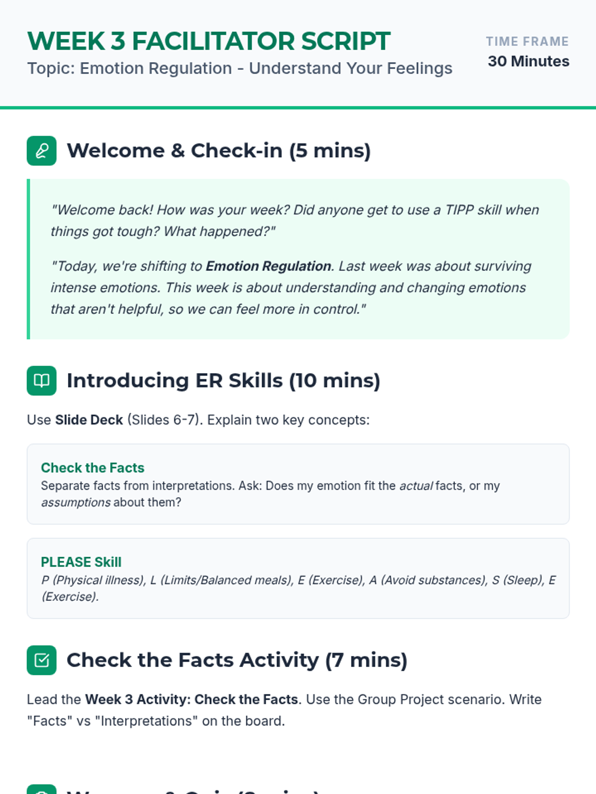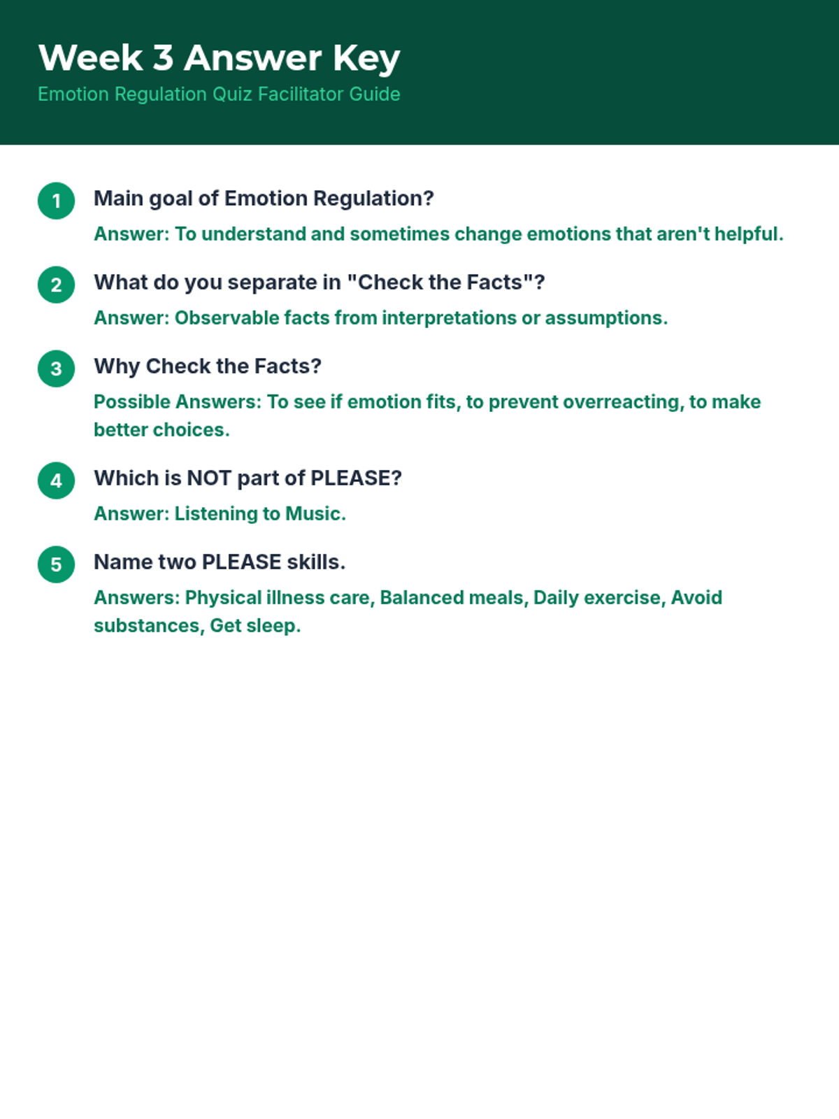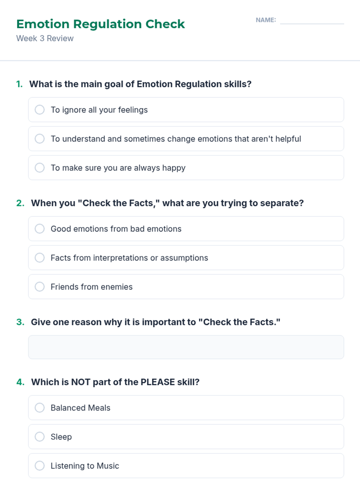 Understanding emotions, checking facts, and maintaining physical health through the PLEASE skill.