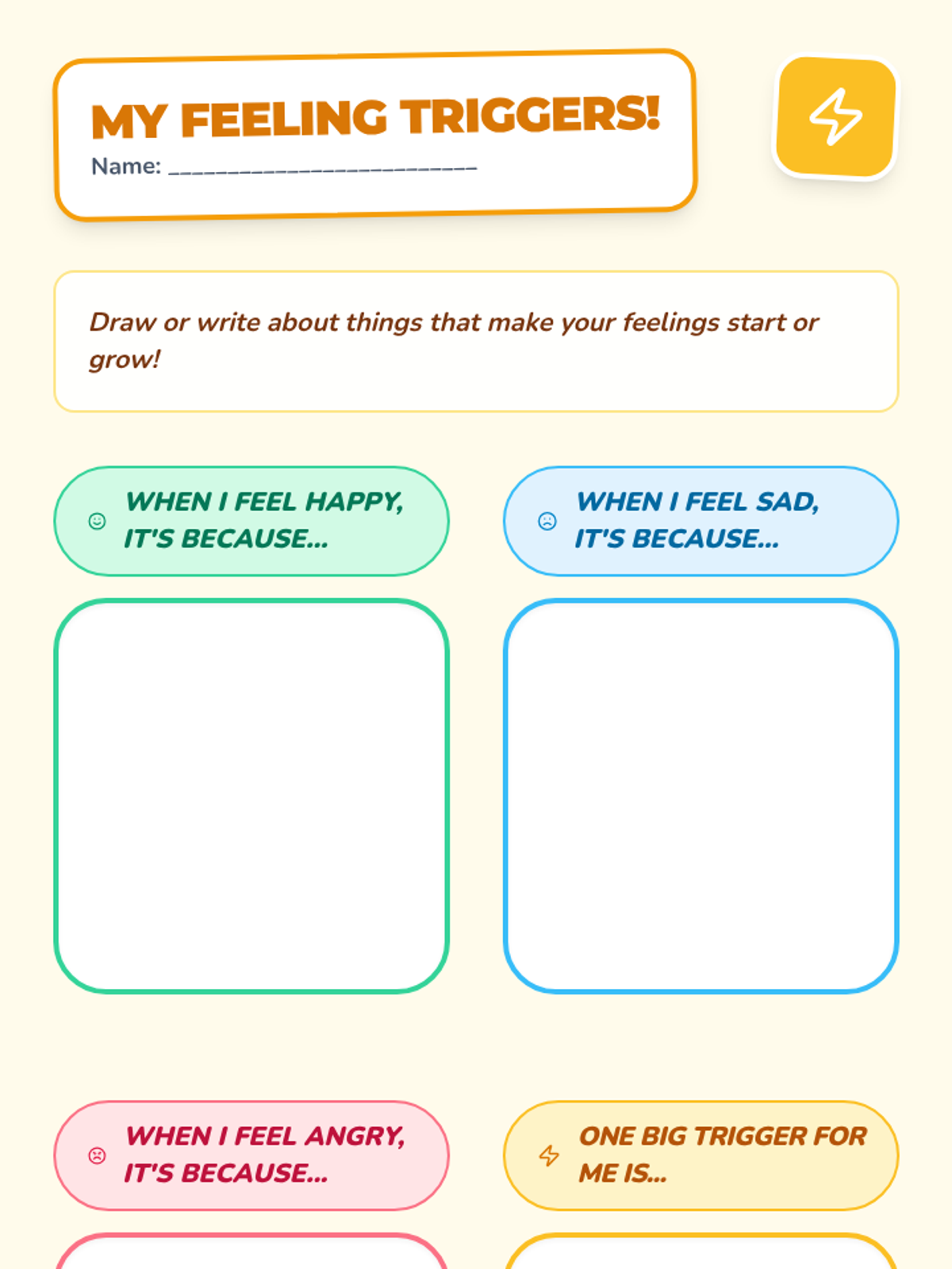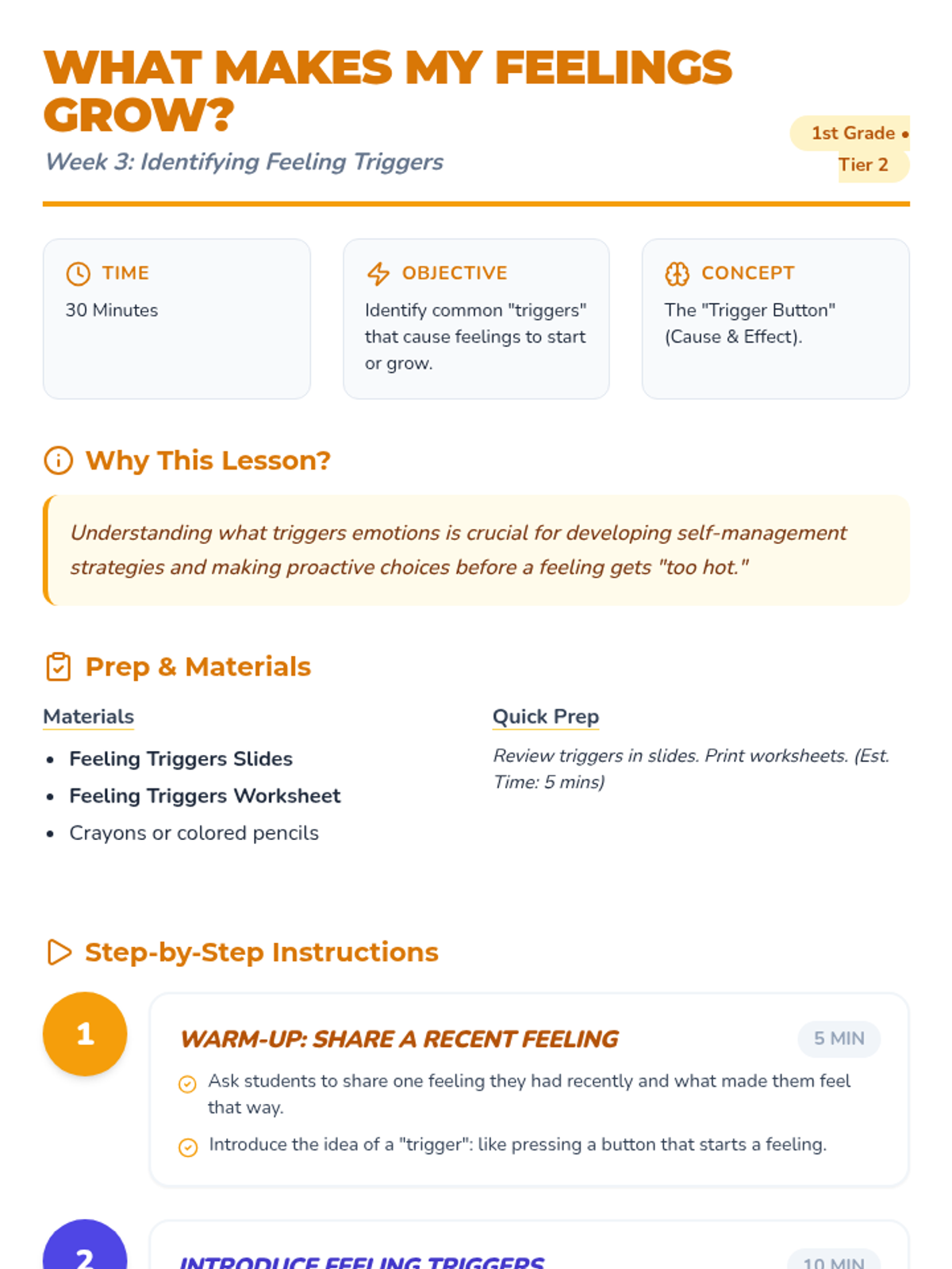 Students identify specific triggers that cause their emotions to start or escalate, building self-awareness.