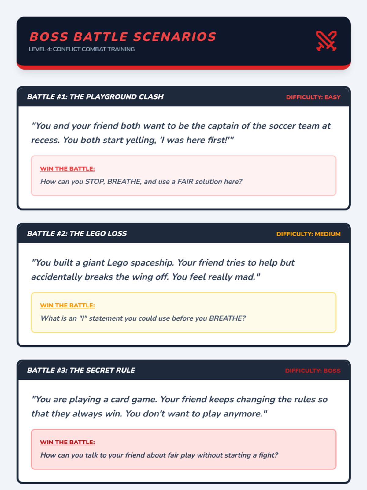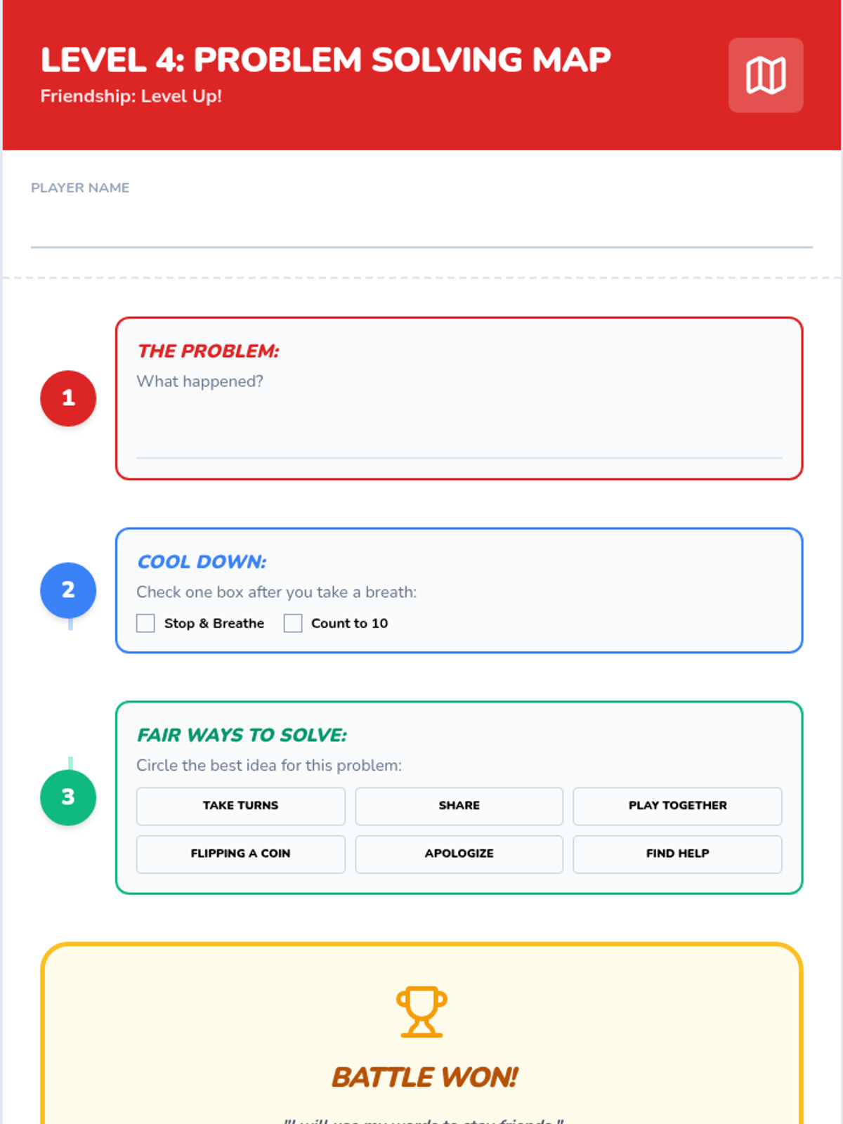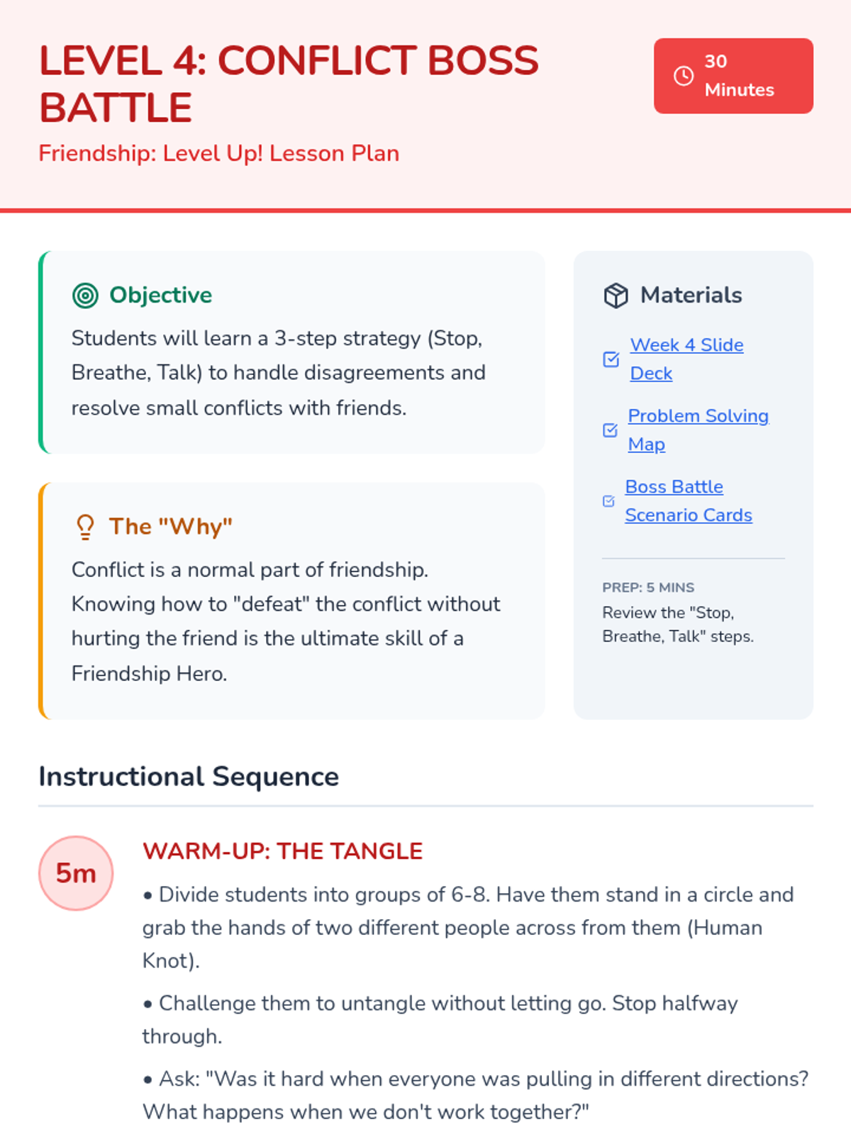 Equips students with practical tools to resolve disagreements and handle conflict in a positive way.