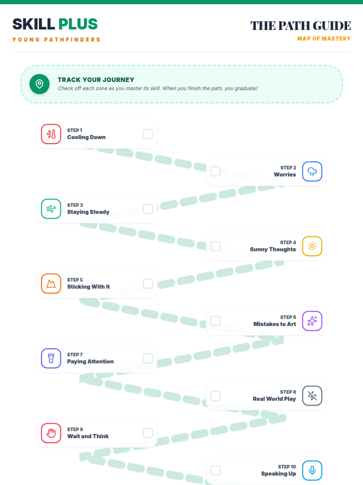 Introduction to the Young Pathfinders program. Students learn the core metaphors of 'The Path' and 'Exploring' their skills, setting goals for their journey.