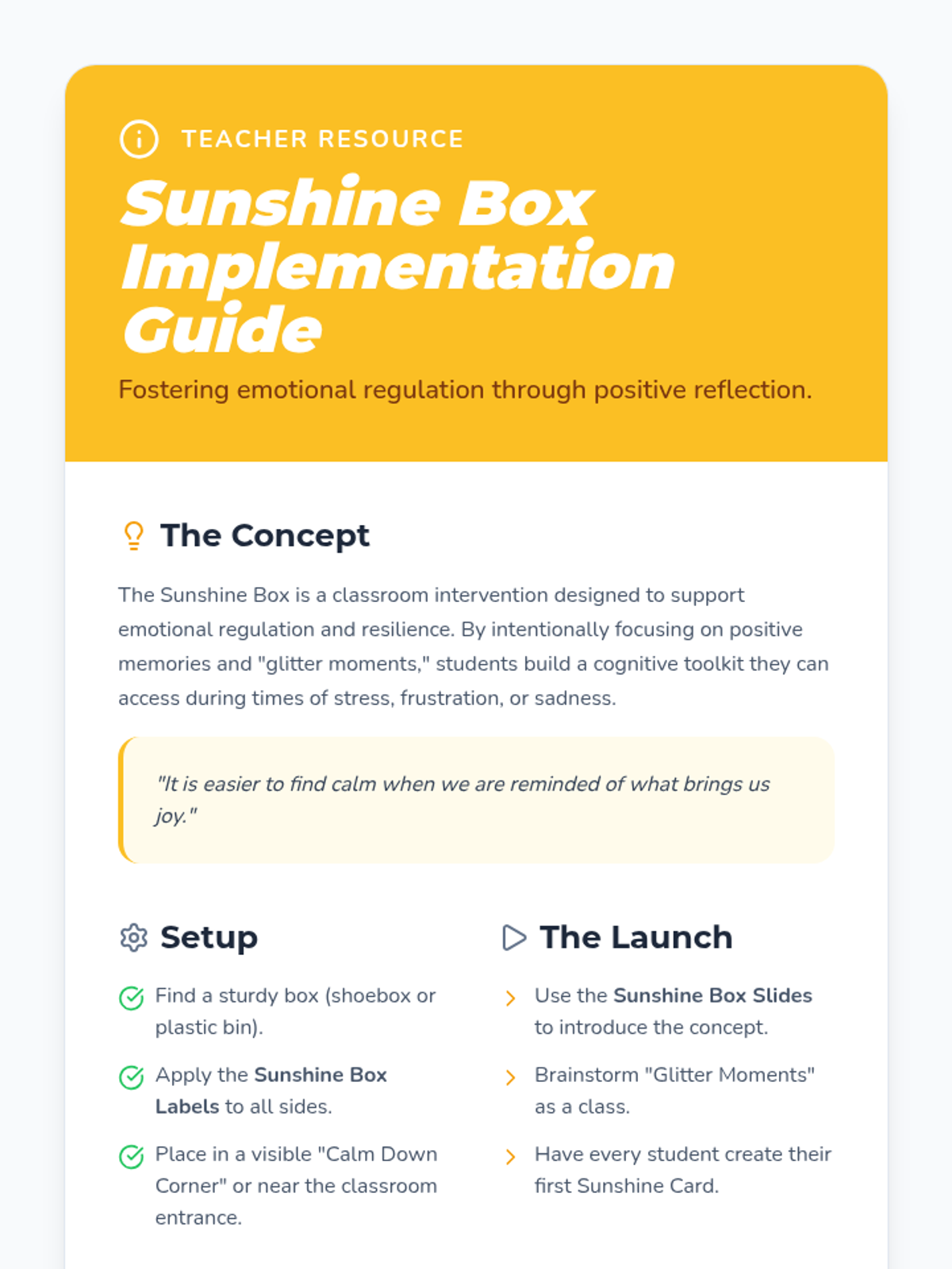 A collection of resources to help students regulate emotions and find calm by focusing on positive memories and happy moments.