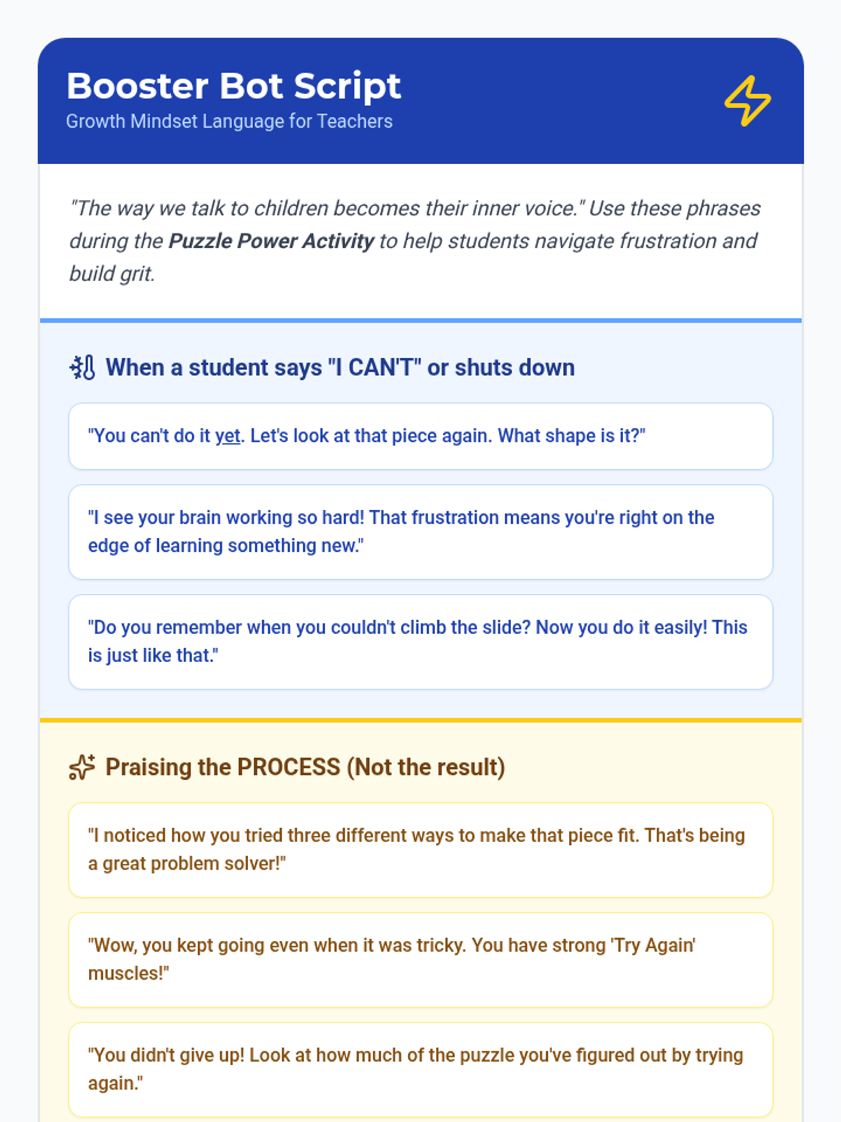 A Social-Emotional Learning lesson for K-1 students focused on perseverance, introducing 'The Power of Yet' and strategies for overcoming challenges.