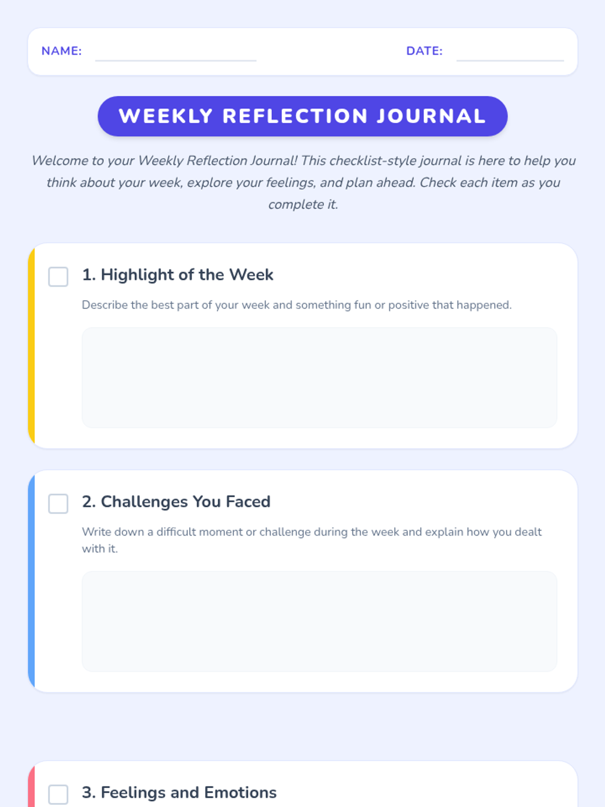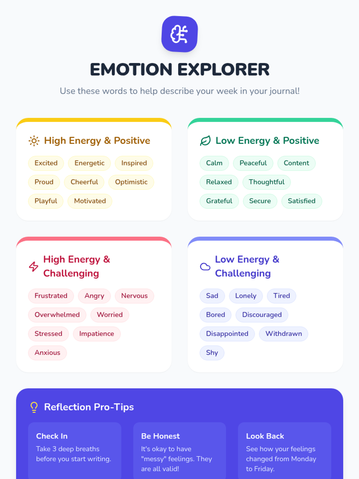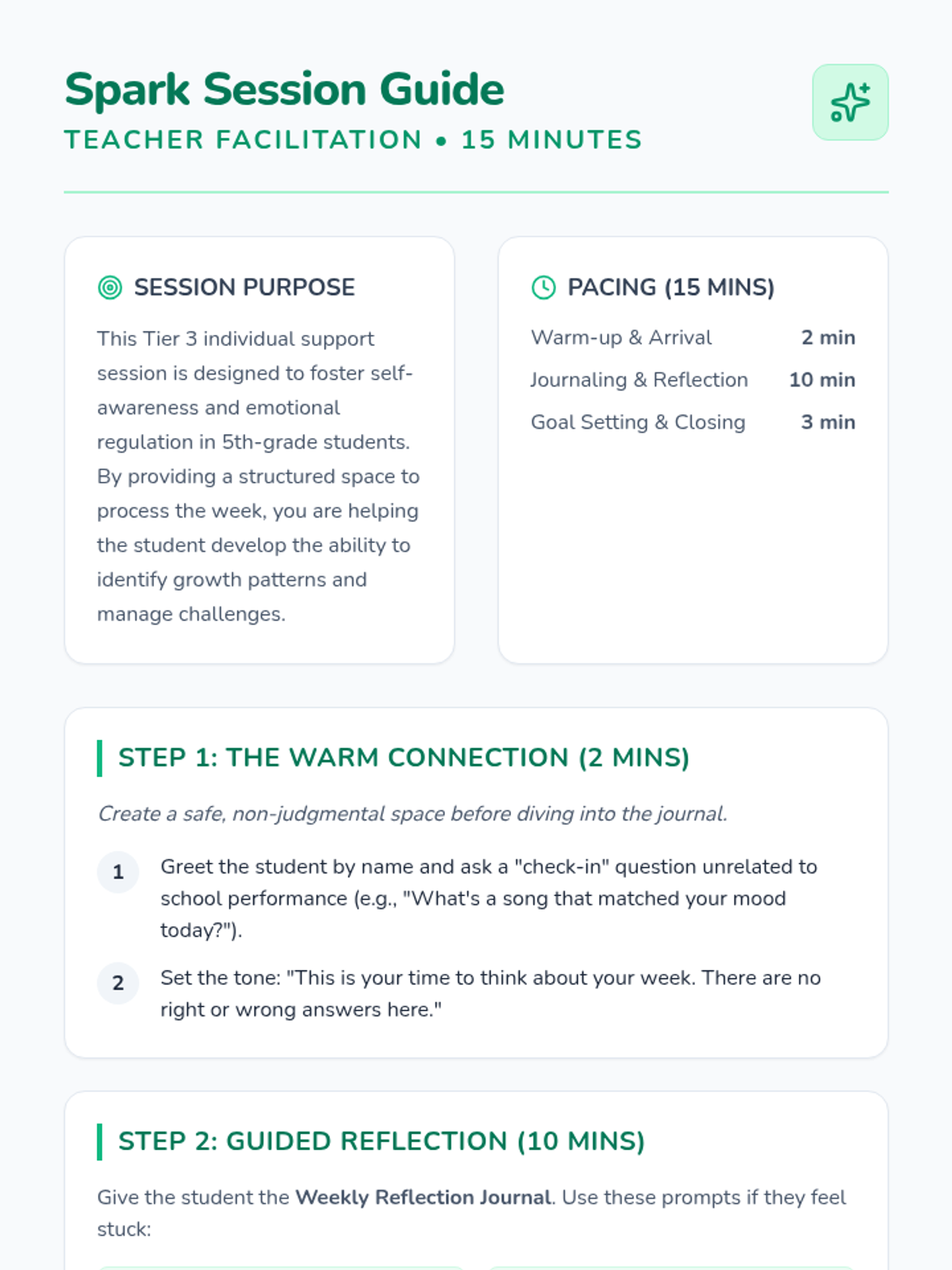 A 15-minute Tier 3 individual support session for 5th-grade students to build self-awareness and emotional intelligence through structured weekly reflection.