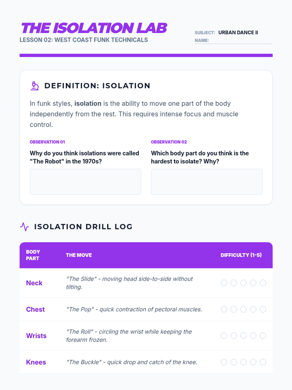 Moving to the West Coast, students explore Popping and Locking, their relationship to 'Soul Train,' and the importance of muscle isolation. They compare the party vibes of the West Coast with the competitive nature of the East Coast.