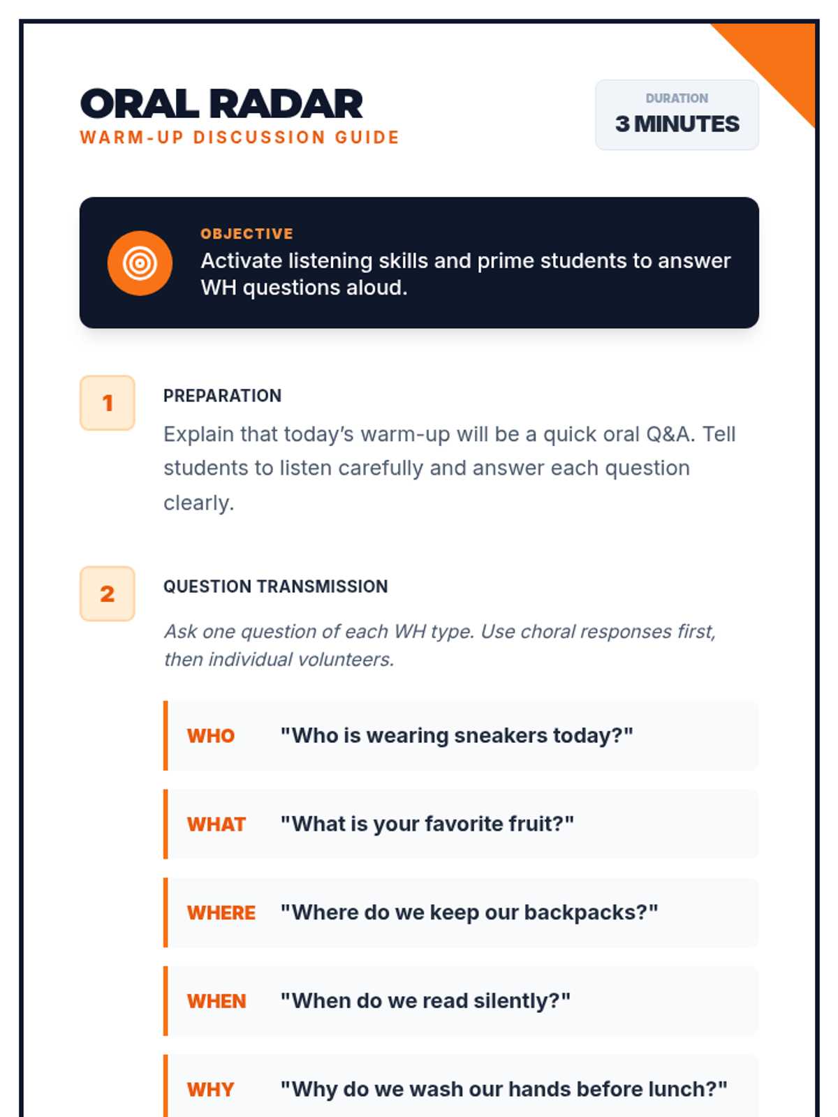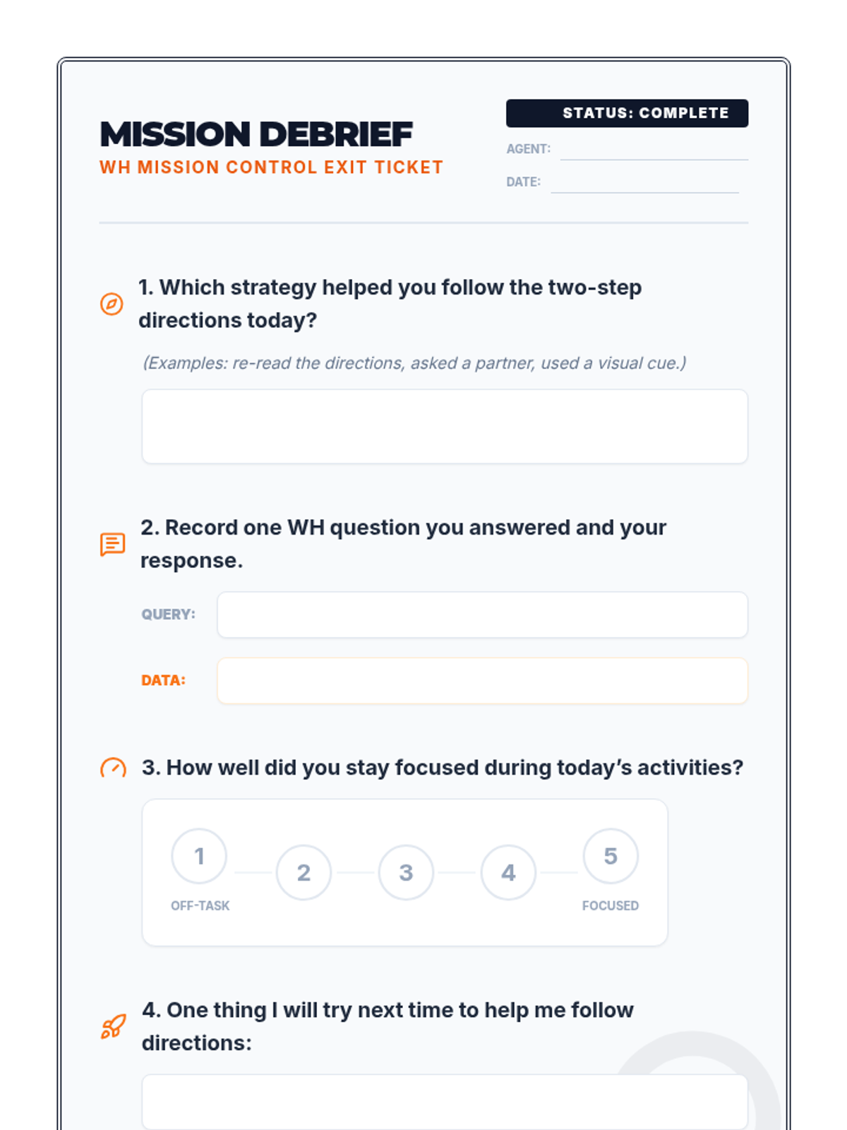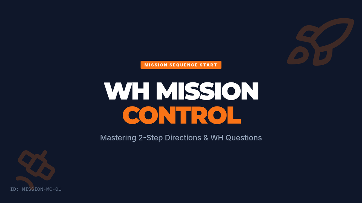 A 30-minute Tier 2 group lesson for 3rd graders focused on following multi-step directions and mastering WH questions with a space-themed Mission Control aesthetic.