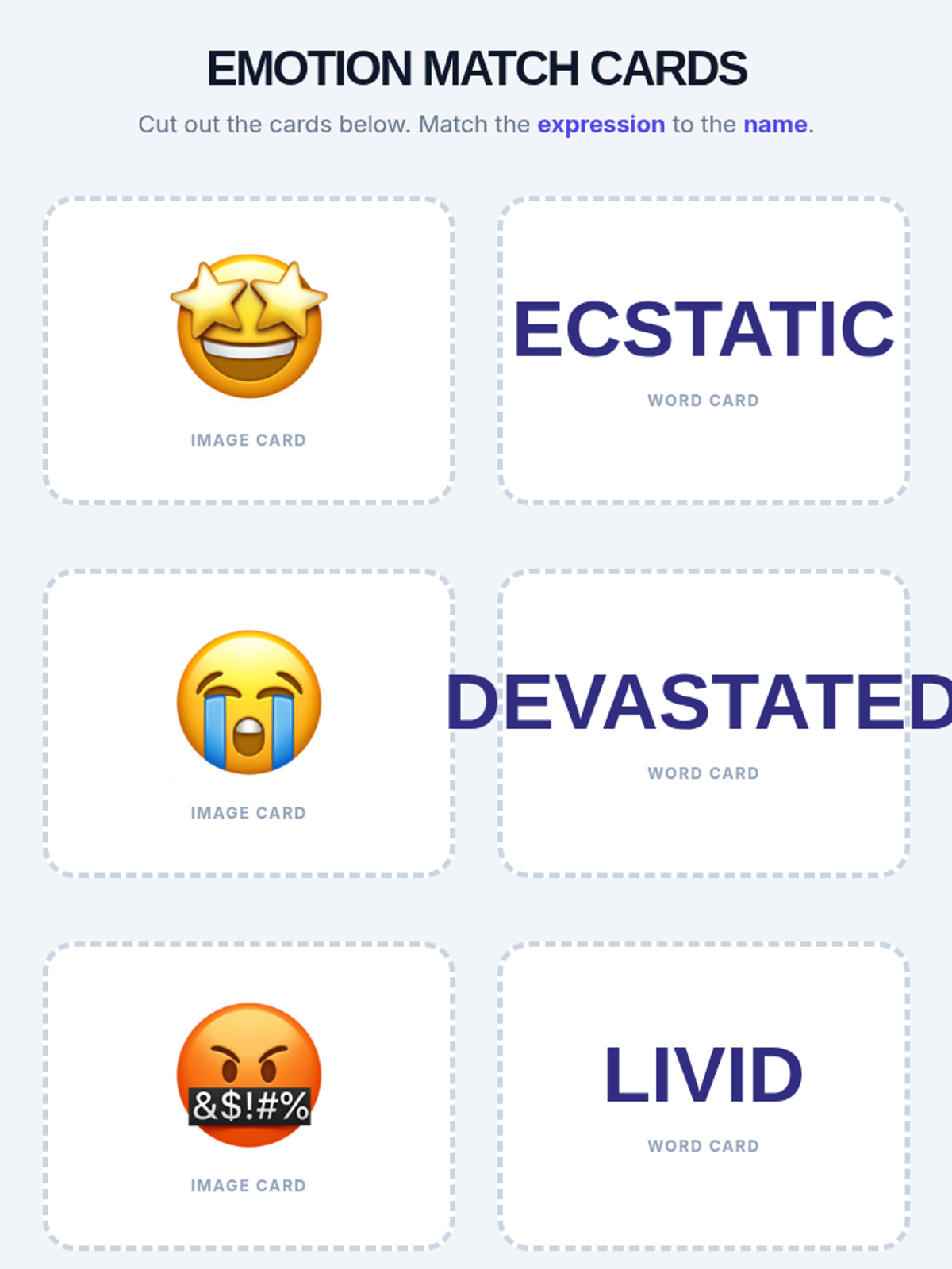 Expanding emotional vocabulary for ESL students to express nuance and intensity in English.