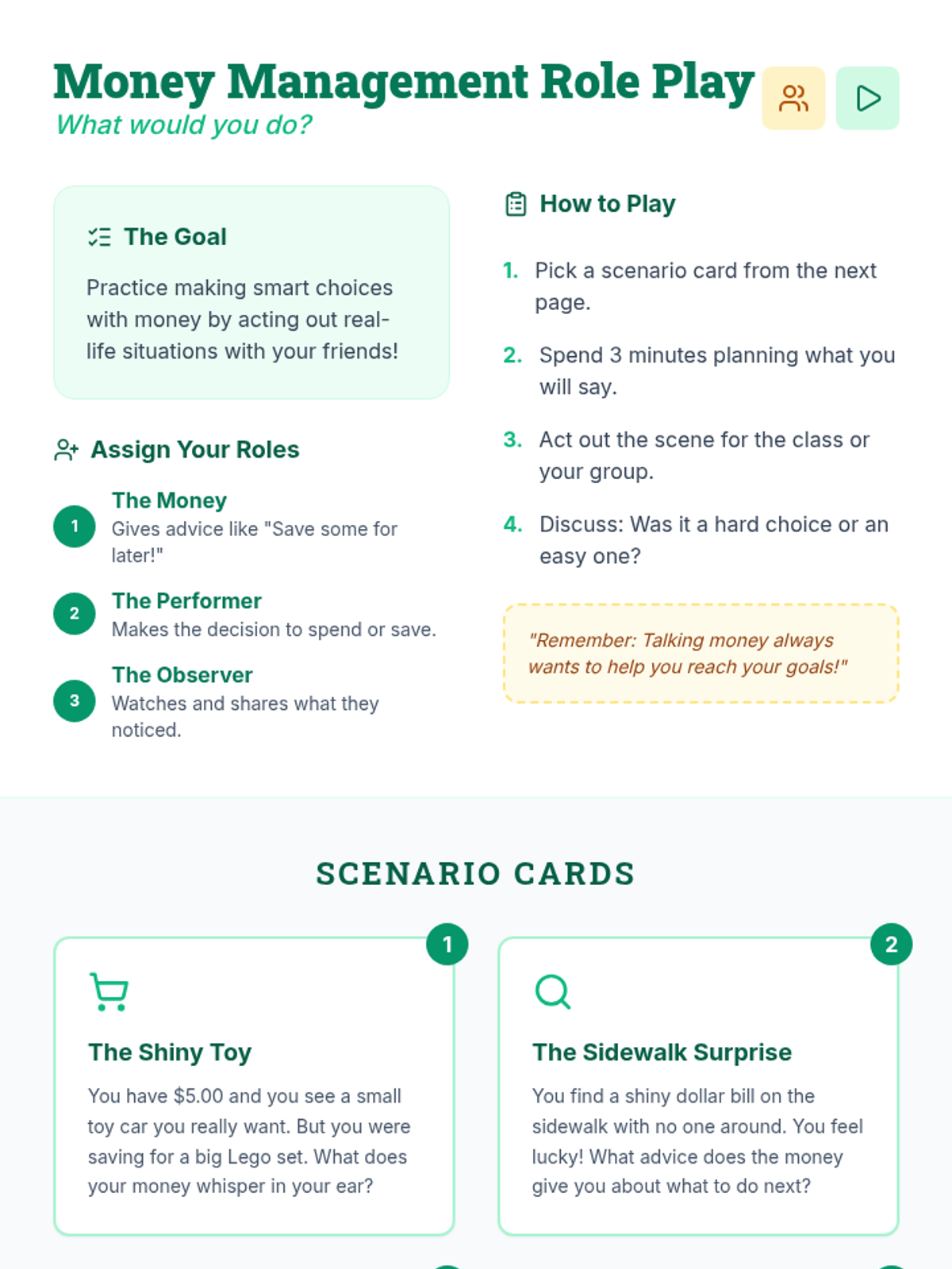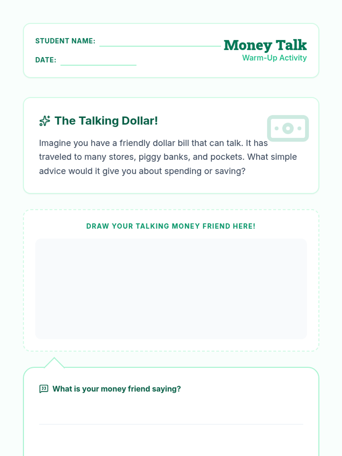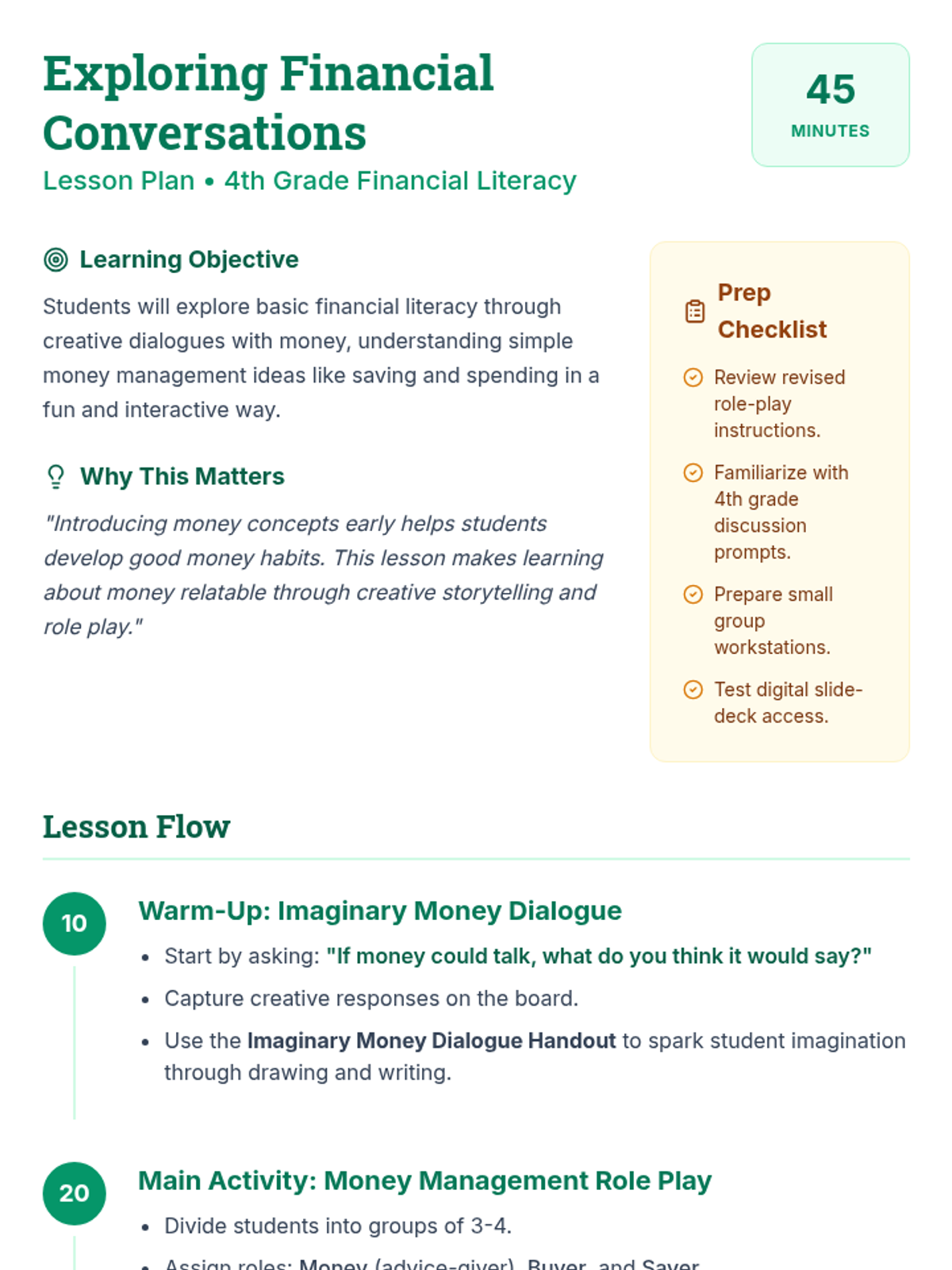 A whimsical introduction to financial literacy for 4th graders, where money comes to life to share wisdom on saving, spending, and making smart choices.