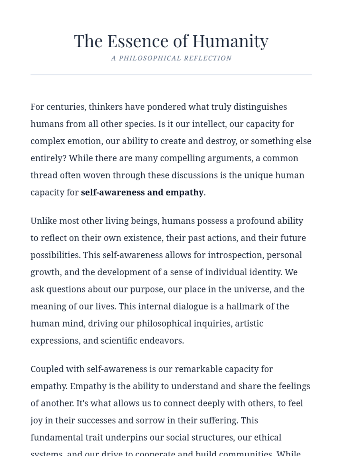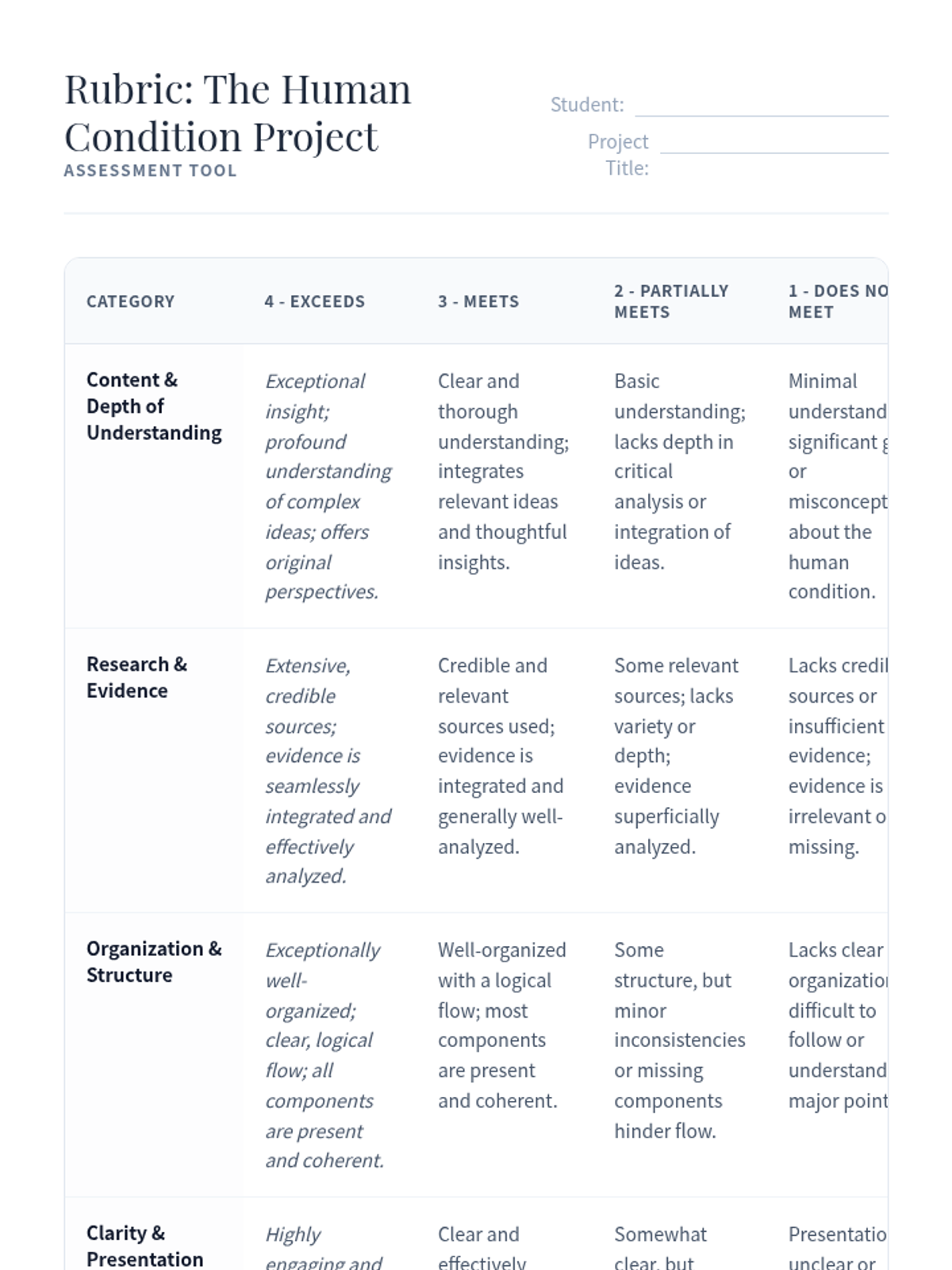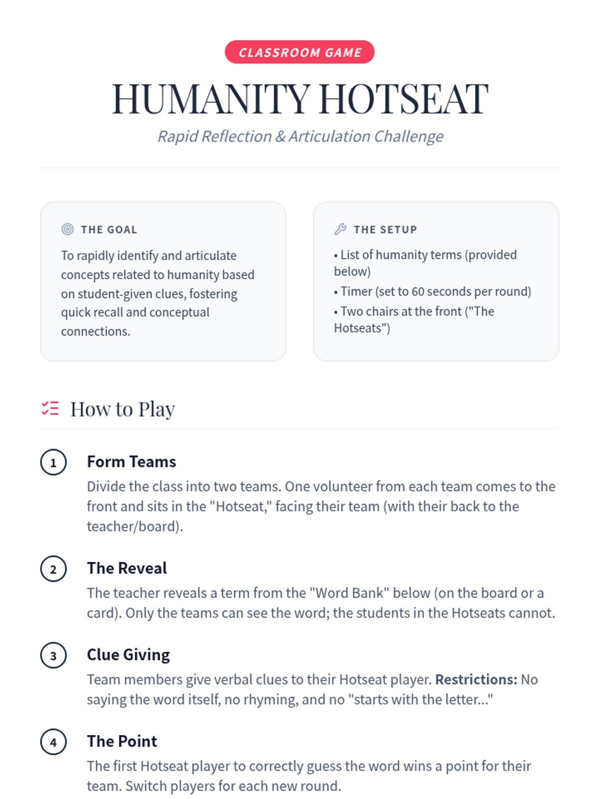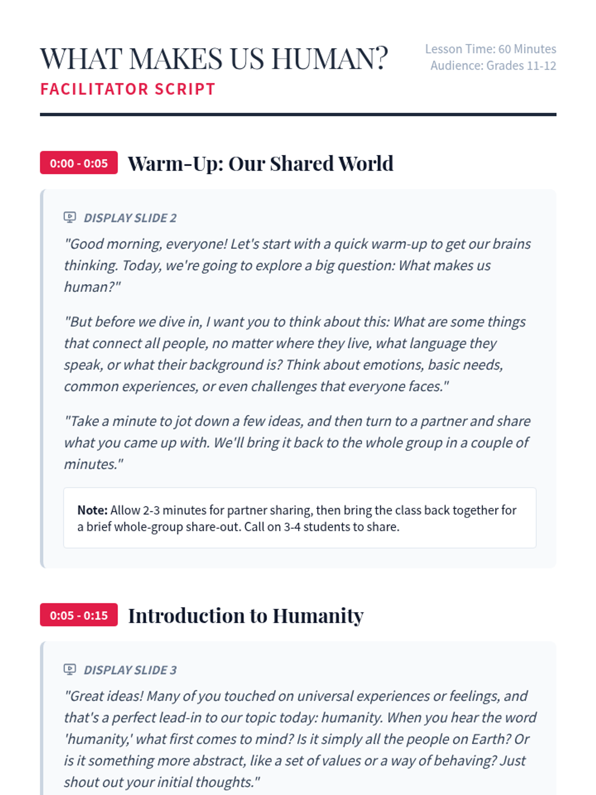 This lesson explores the multifaceted concept of humanity, delving into unique characteristics that define us through philosophical readings, creative activities, and critical discussion. Designed for 11th-12th grade students, this 60-minute session fosters deep reflection, empathy, and a nuanced understanding of the human condition.