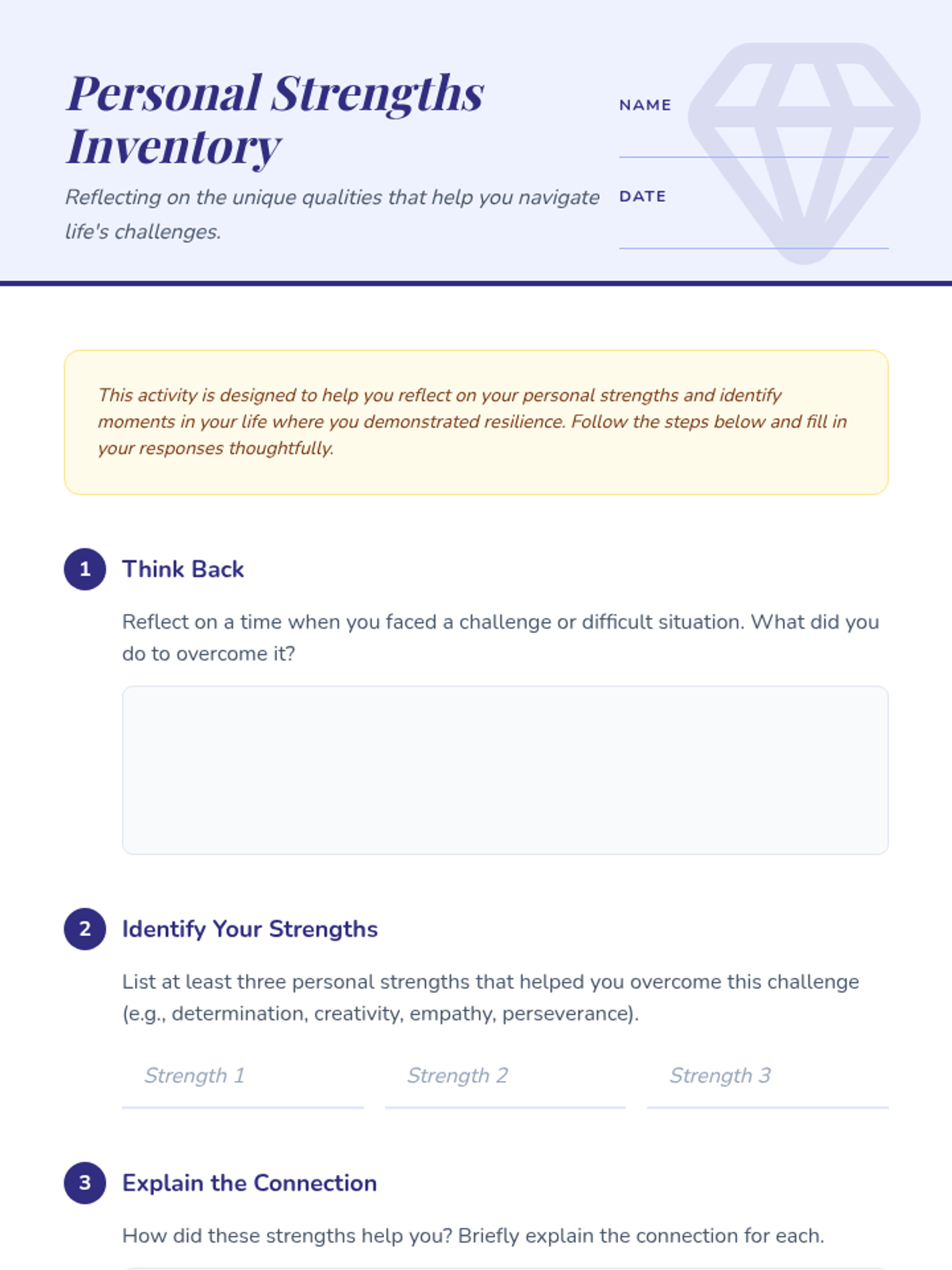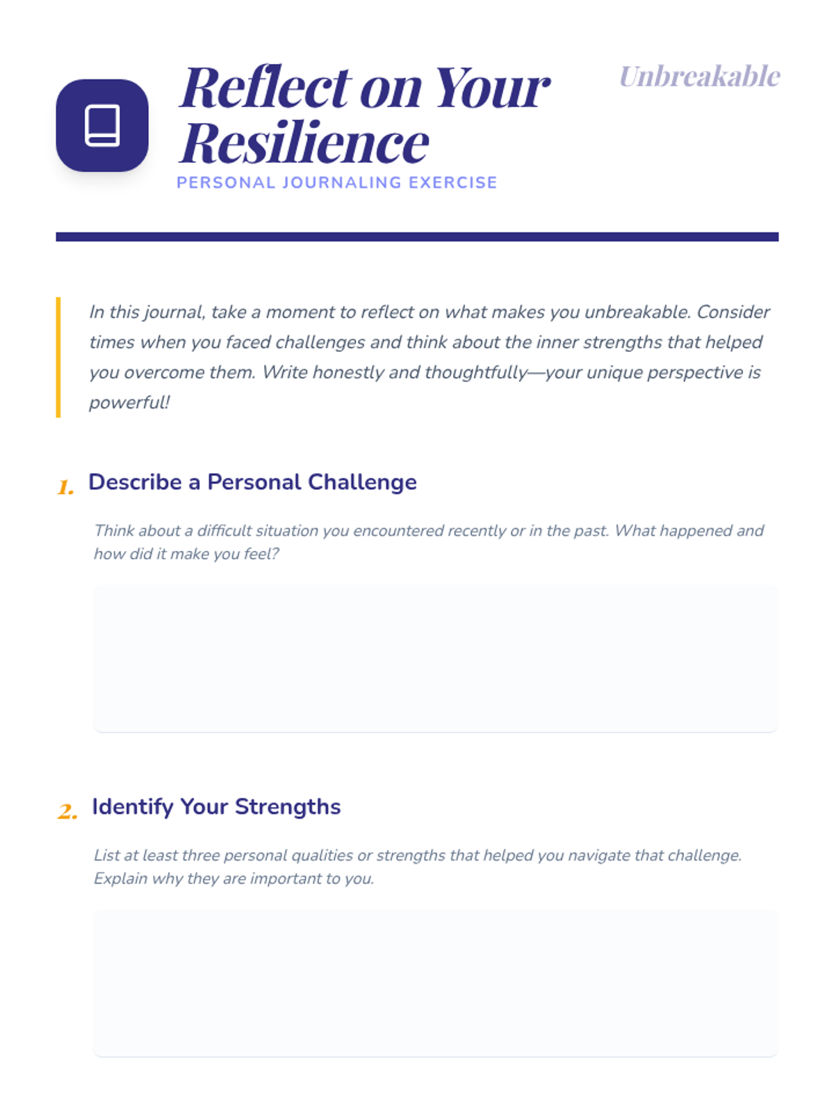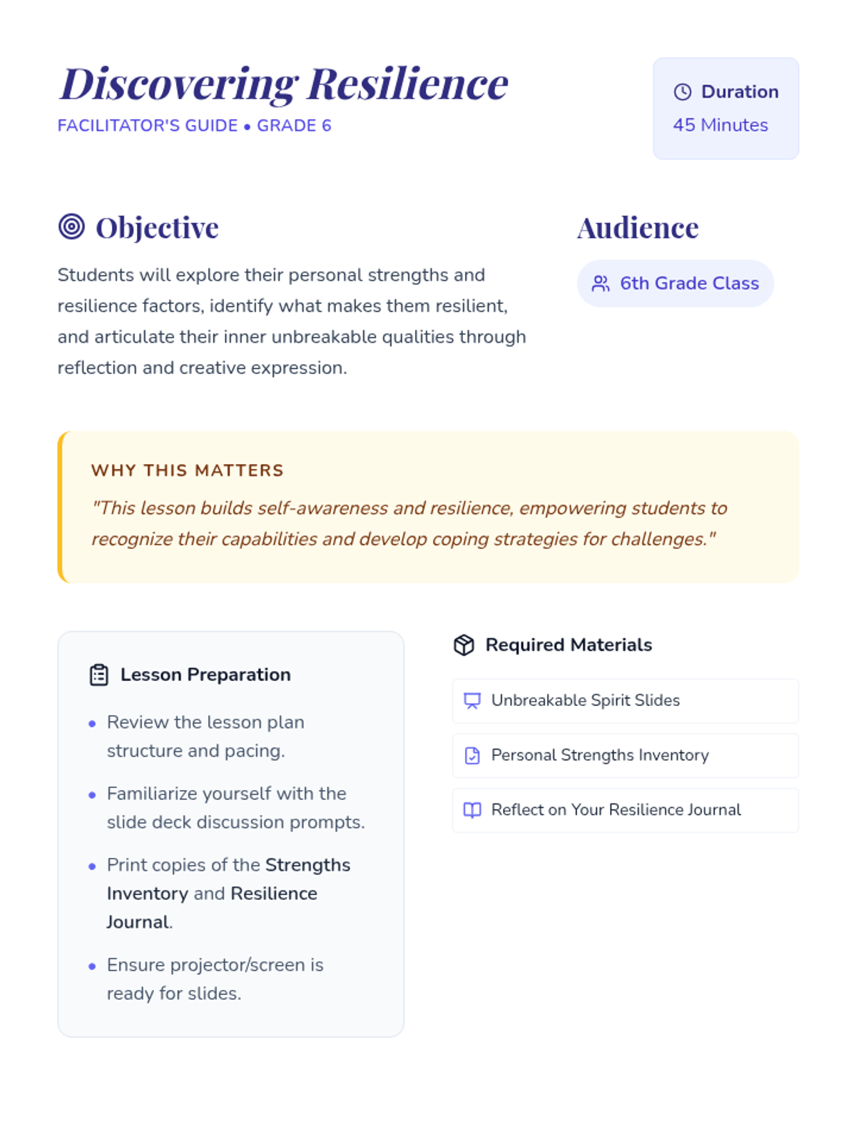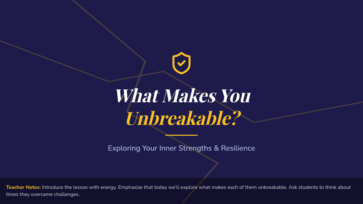 A lesson focused on building self-awareness and resilience in 6th-grade students by identifying personal strengths and inner 'unbreakable' qualities.