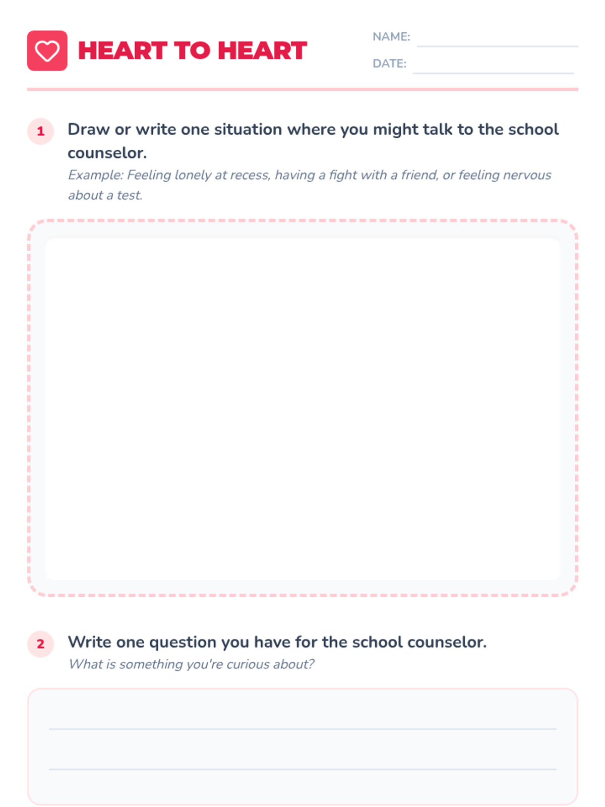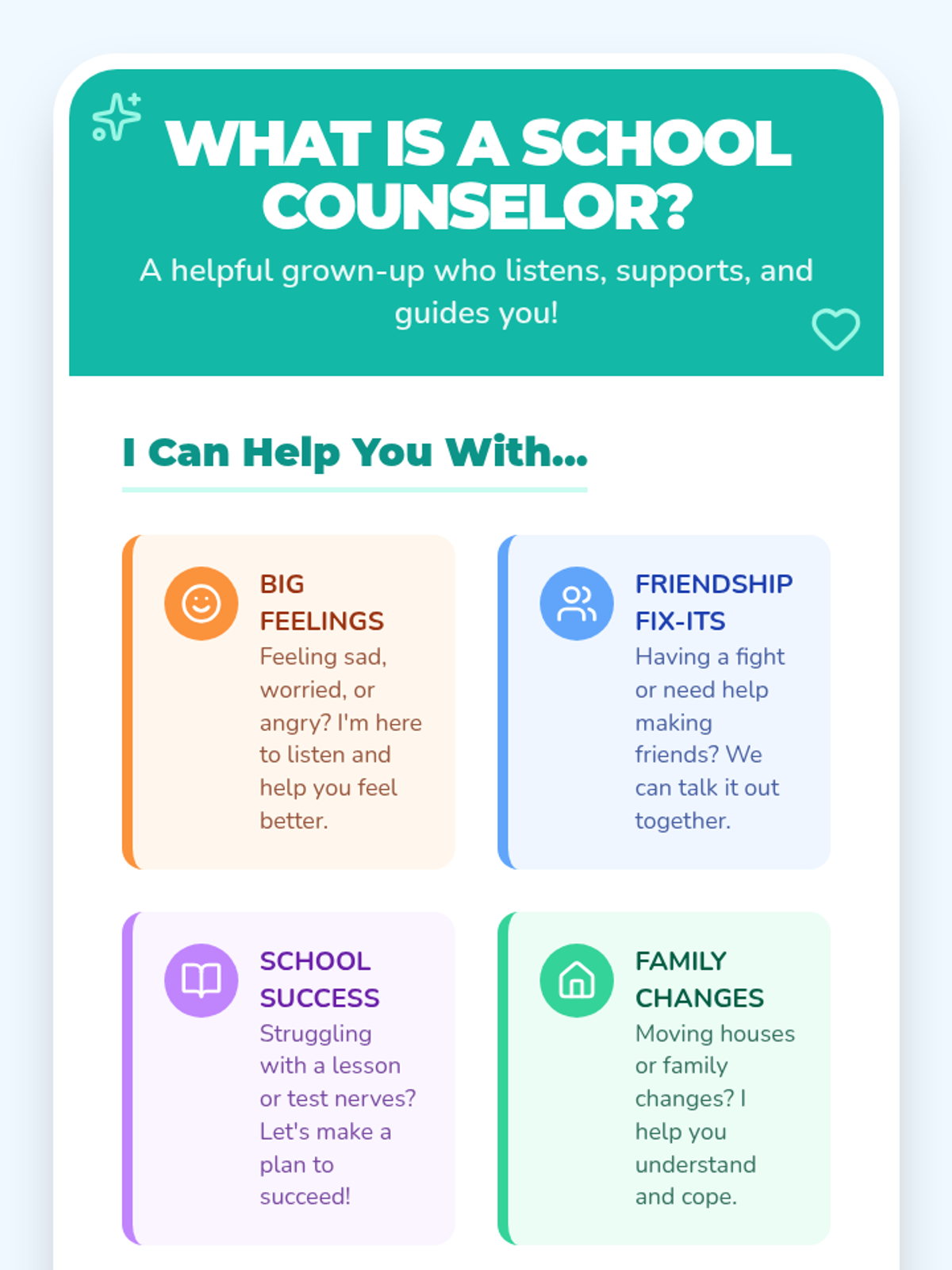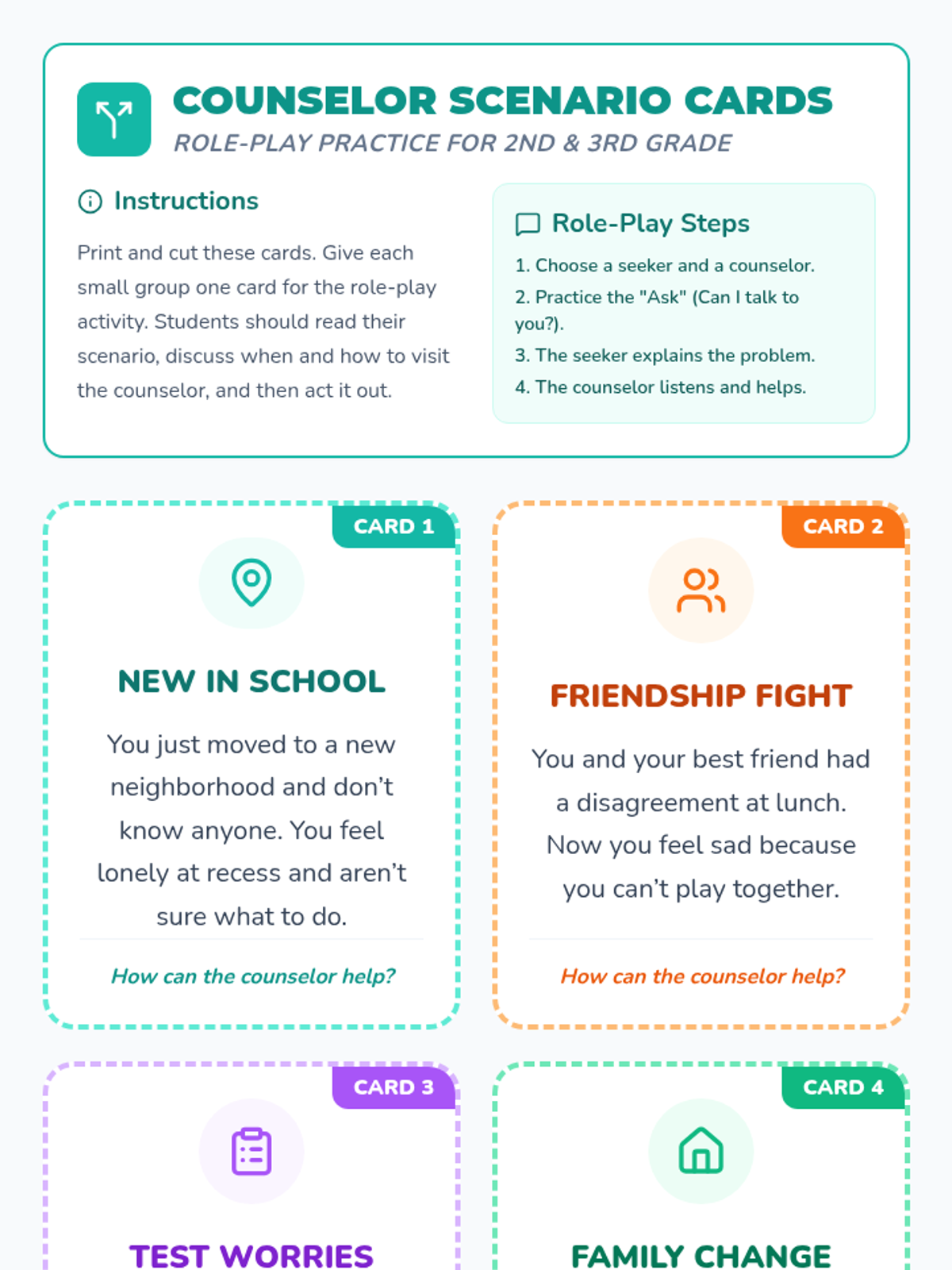 A 30-minute Tier 1 classroom lesson for 2nd and 3rd graders to understand the role of the school counselor and learn how to seek support.