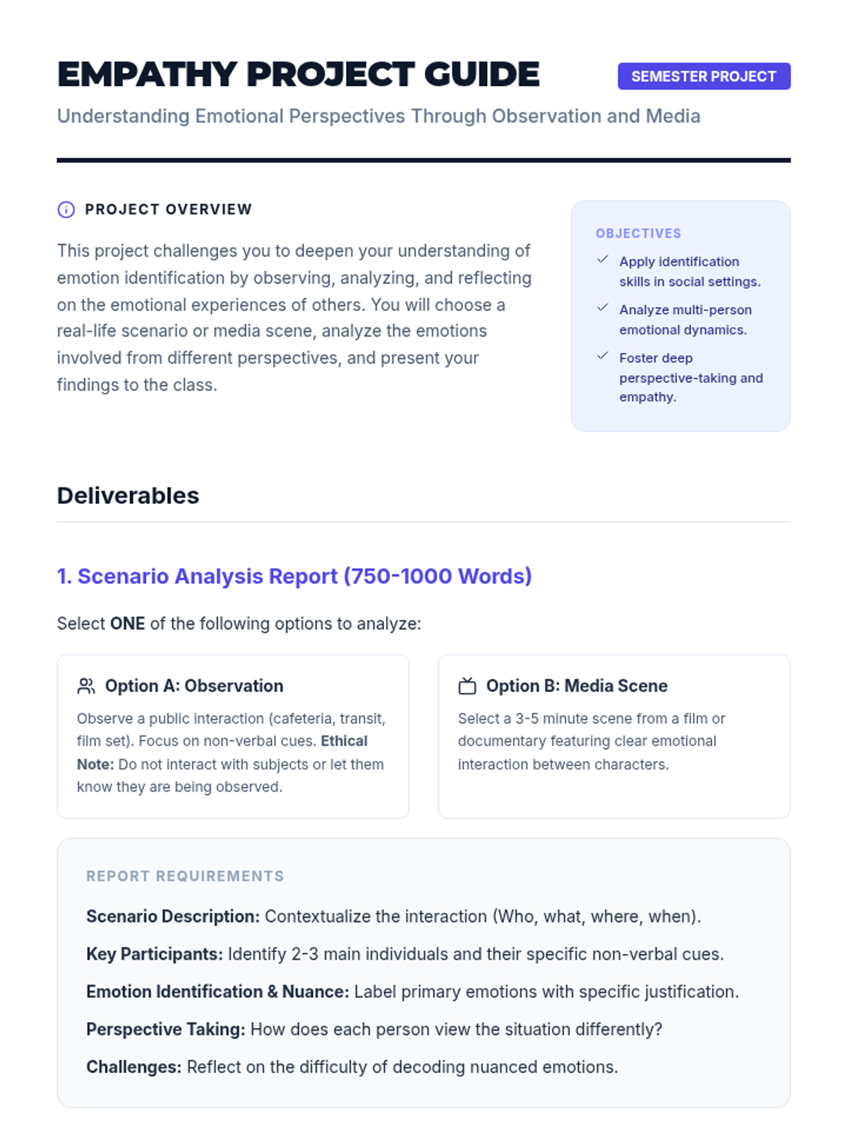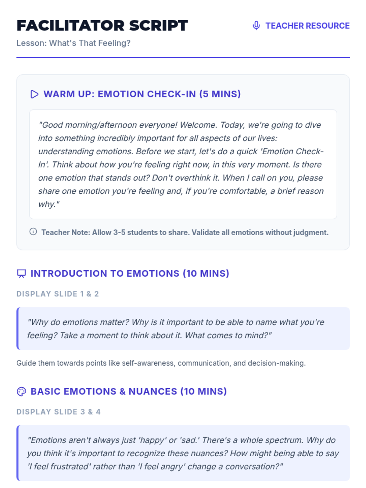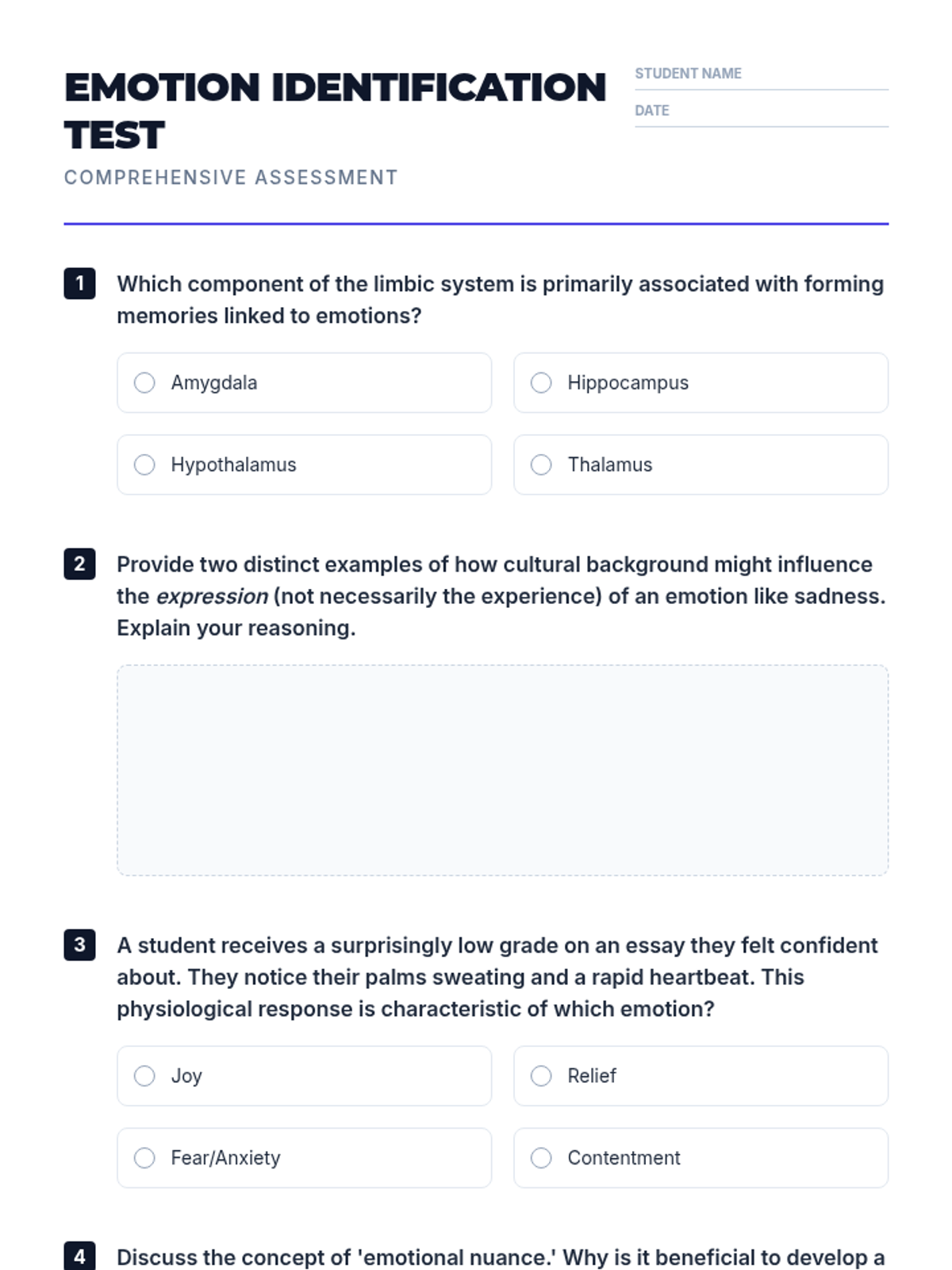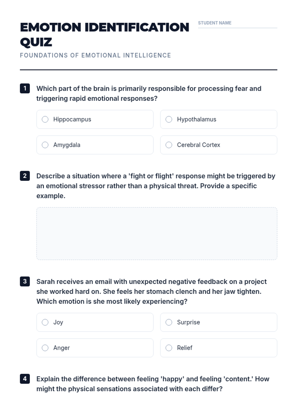 A one-hour lesson for university students focused on recognizing and understanding emotions in themselves and others, foundational for emotional intelligence.