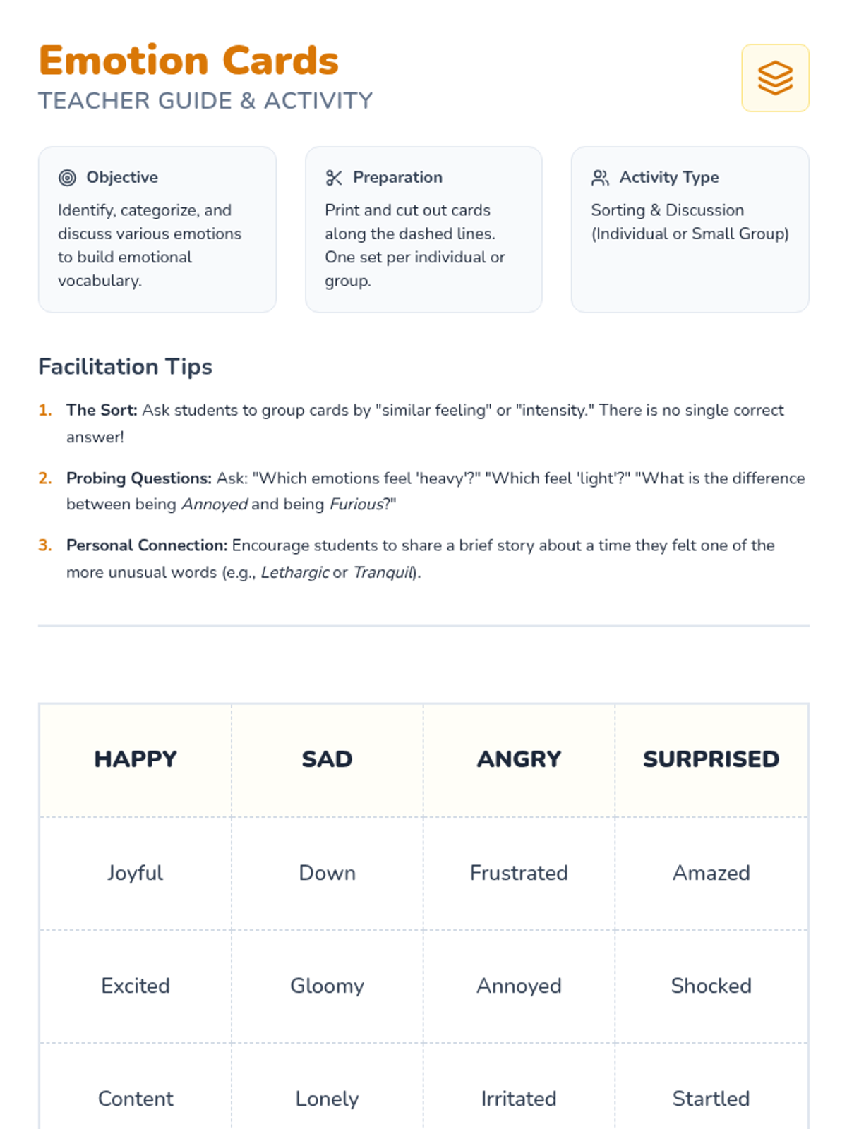 Expanding emotional vocabulary for ESL students to express nuance and intensity in English.