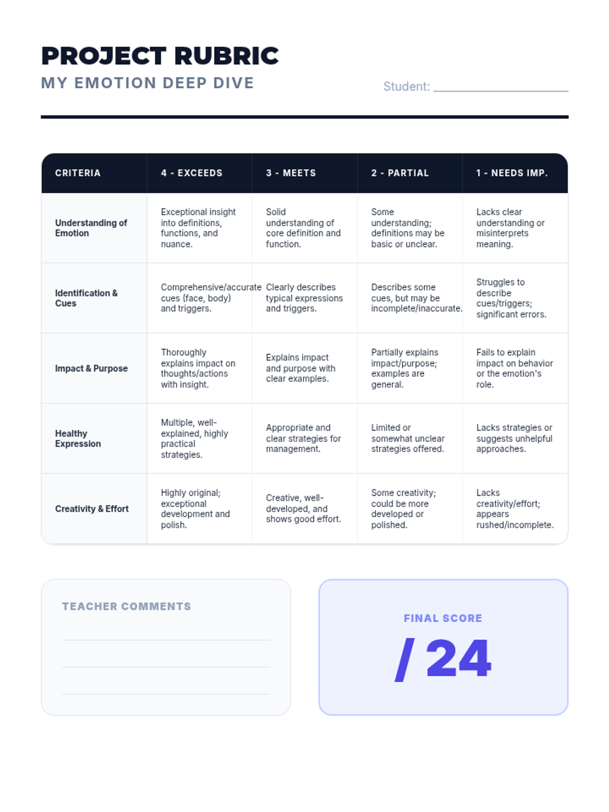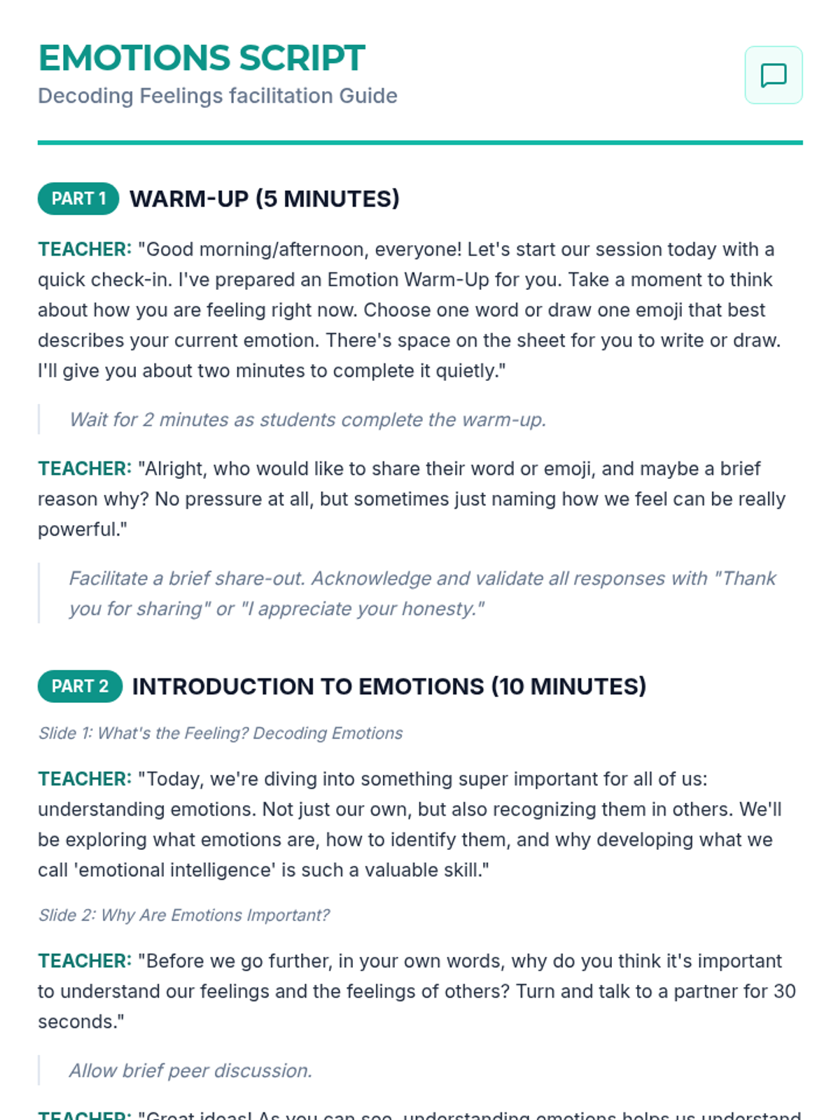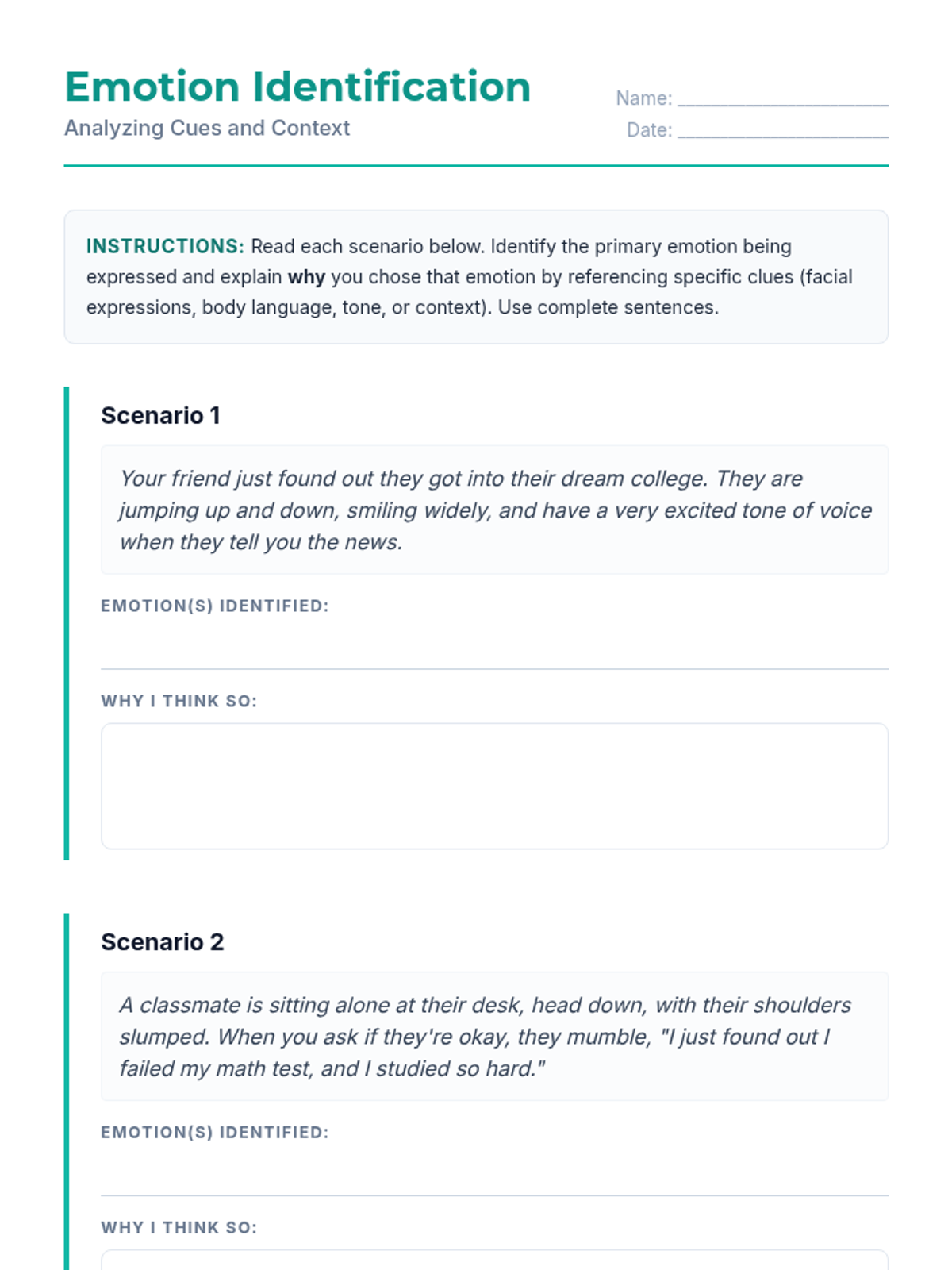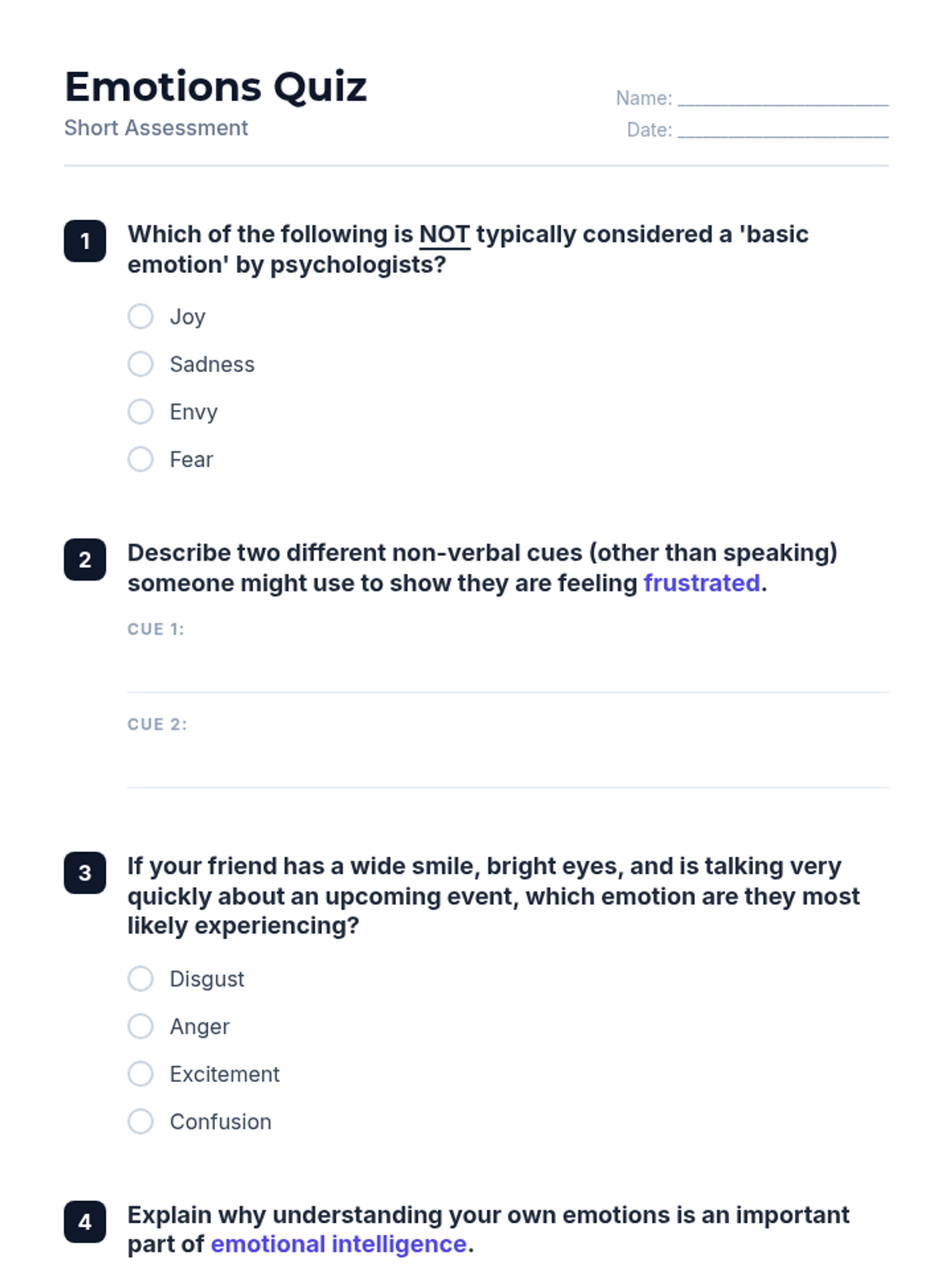 A comprehensive 60-minute lesson designed for secondary students to explore, identify, and understand a wide range of human emotions. Students develop emotional literacy through interactive activities, a slide presentation, and reflective exercises.