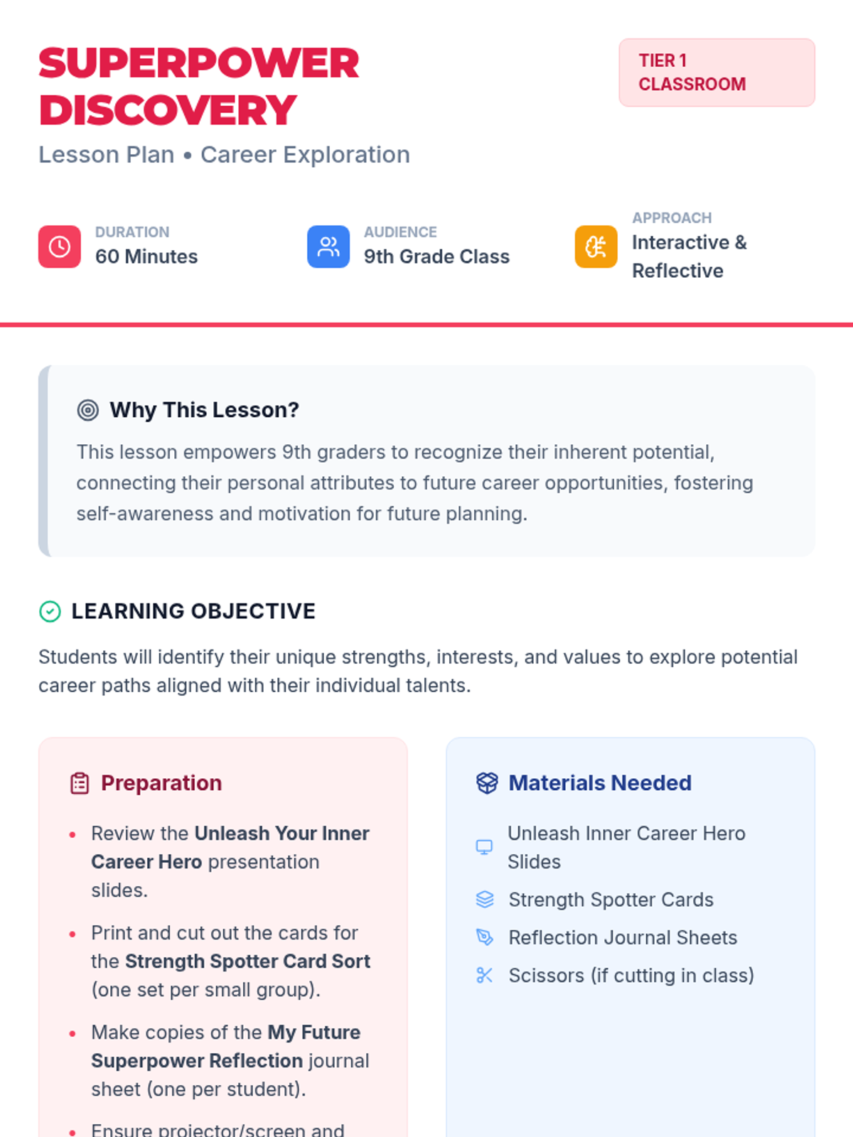 This lesson empowers 9th graders to recognize their inherent potential, connecting their personal attributes to future career opportunities, fostering self-awareness and motivation for future planning.