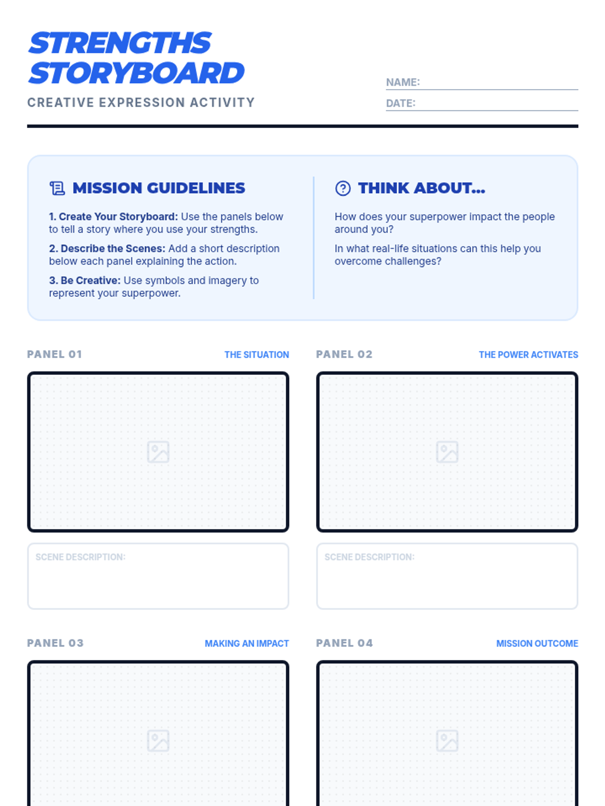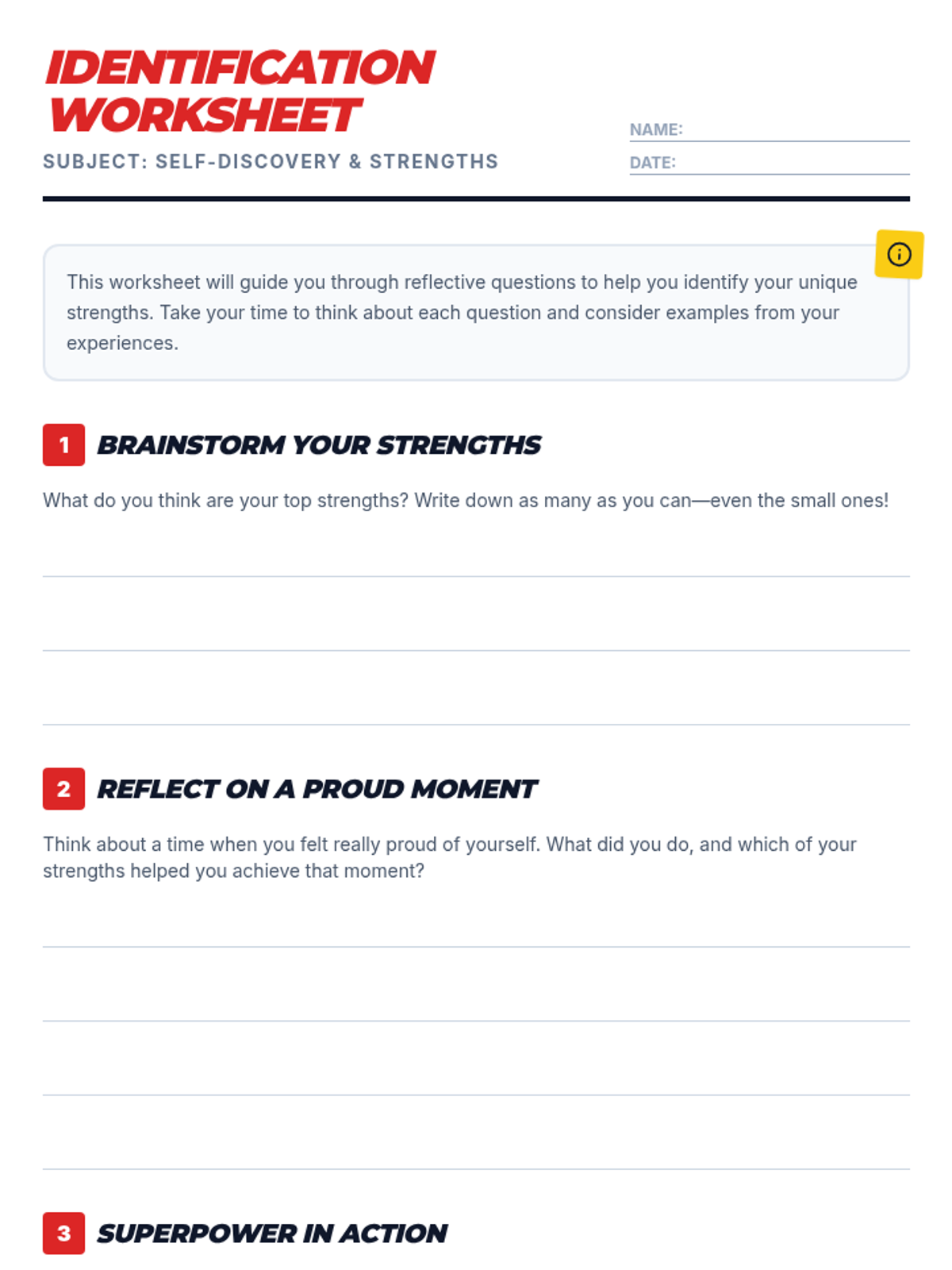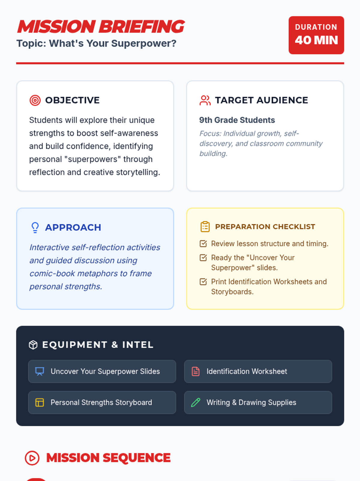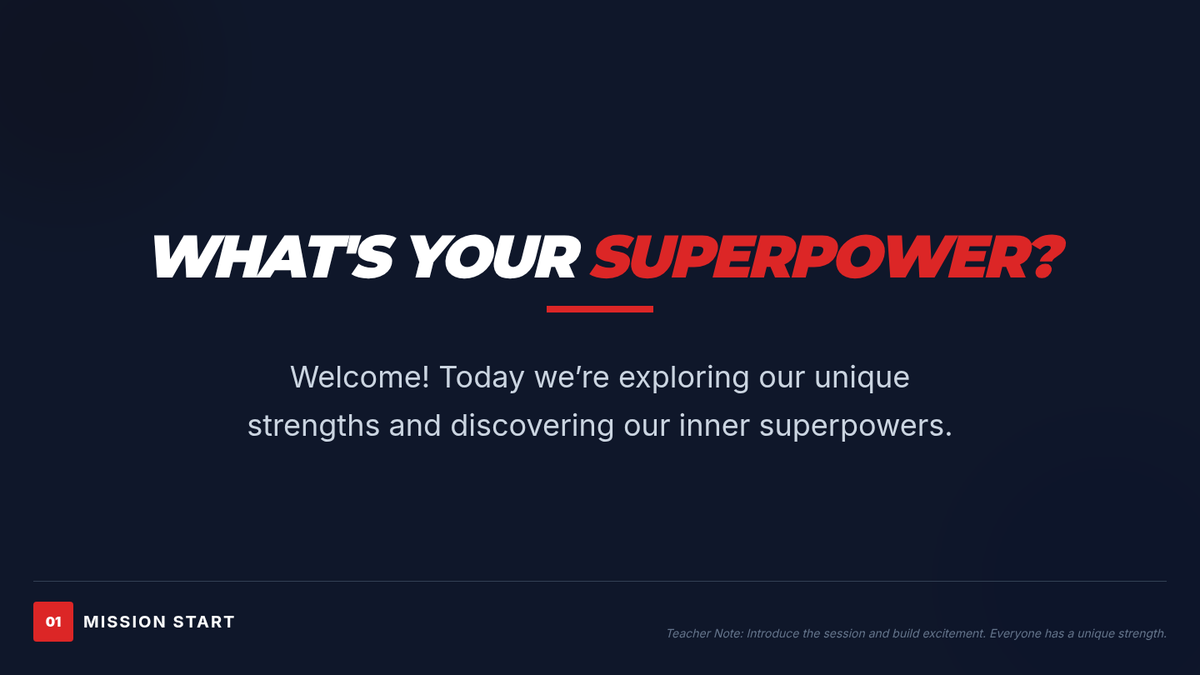 An engaging 40-minute session for 9th-grade students to identify unique personal strengths and build self-awareness through comic-themed self-reflection and creative activities.