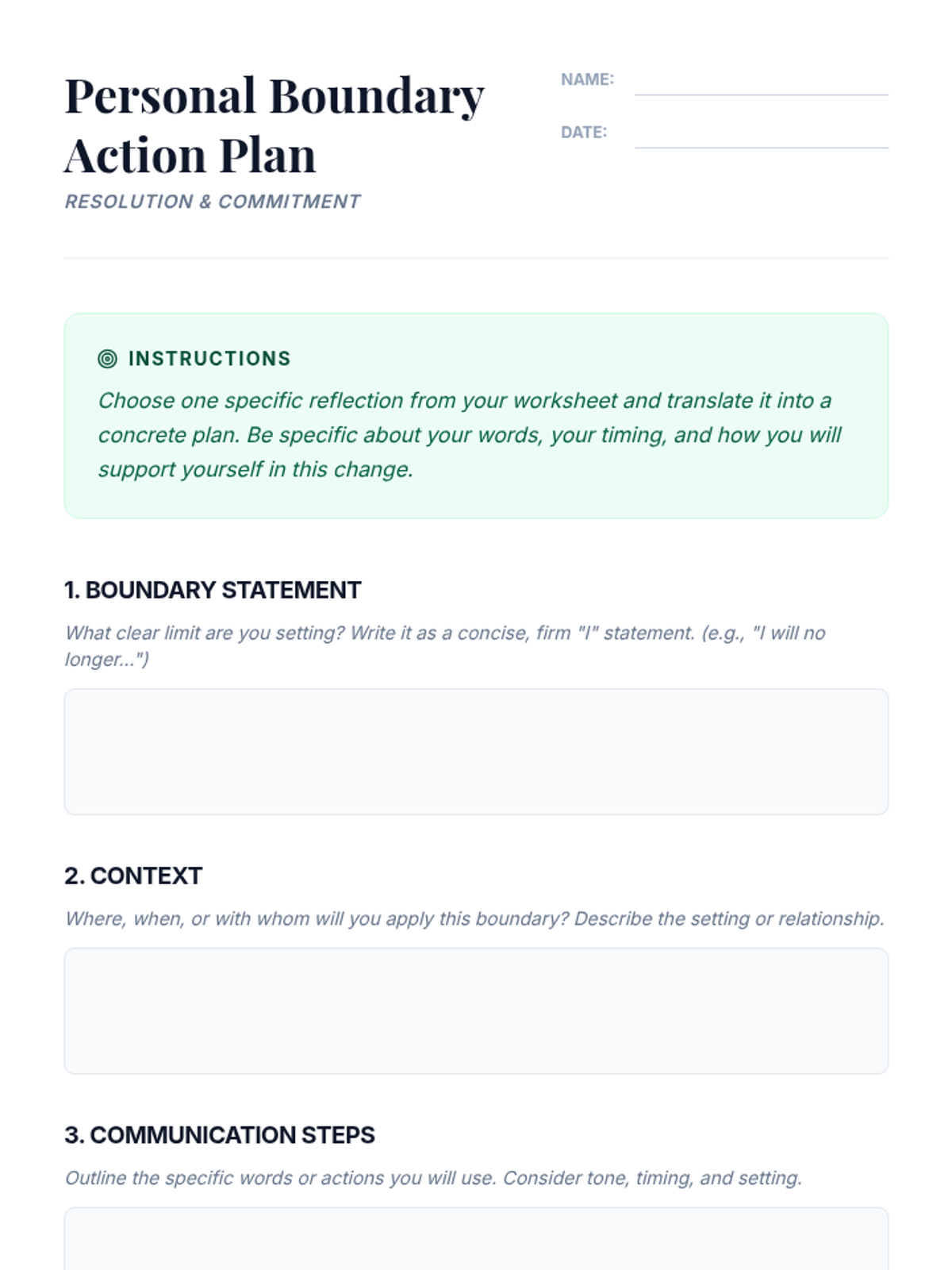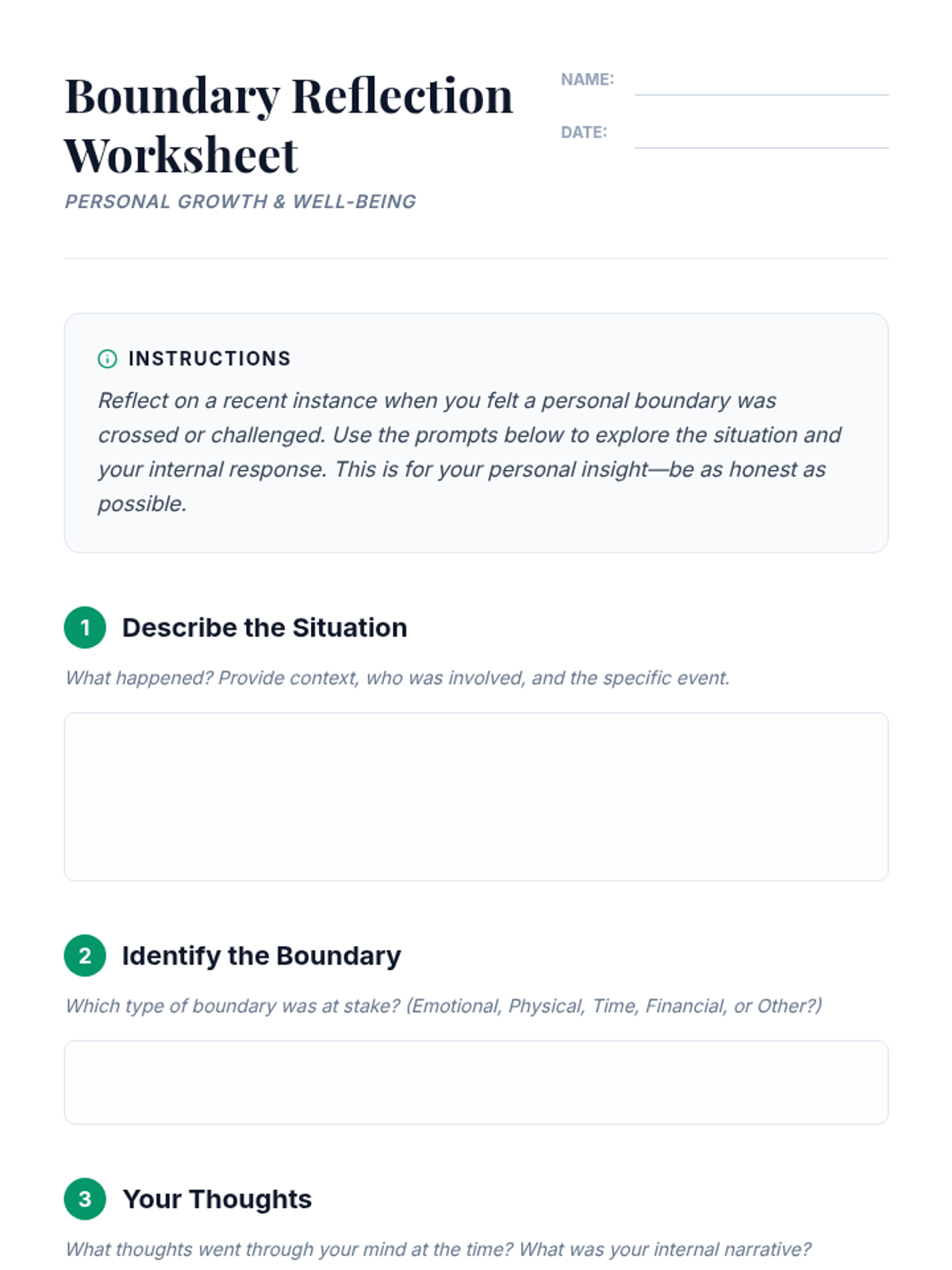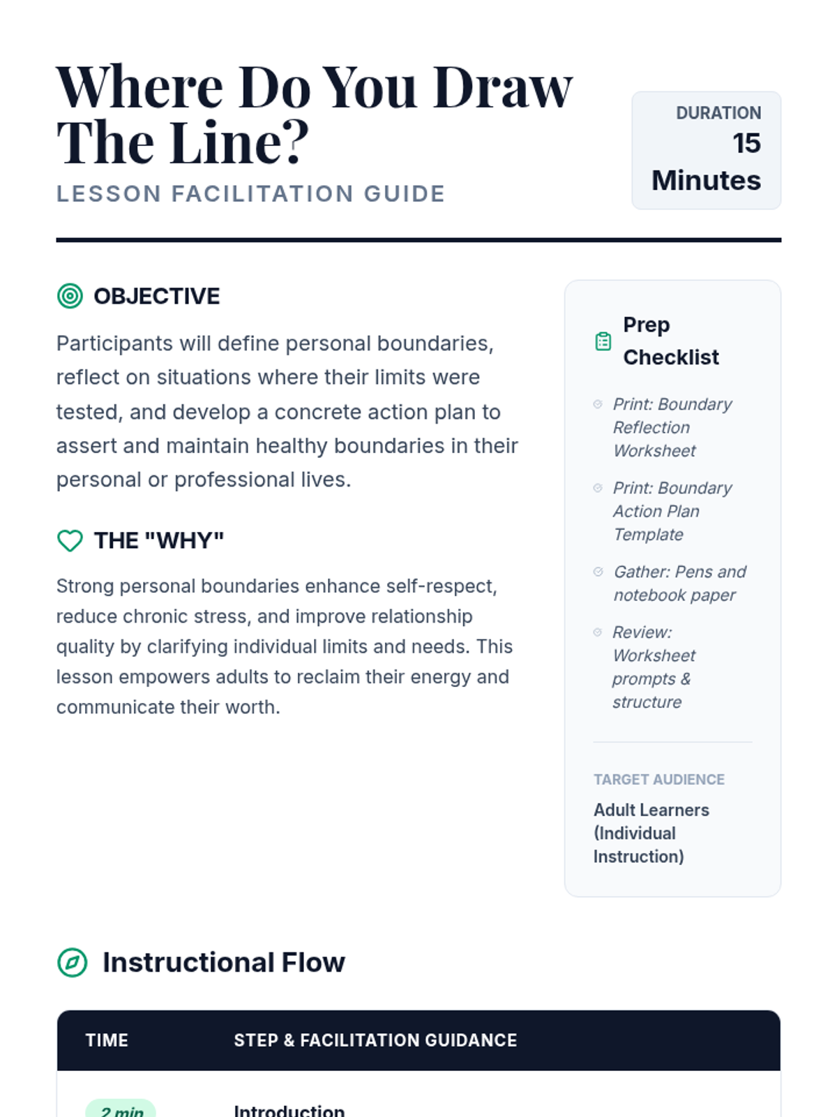 A 15-minute individual lesson for adults on understanding, setting, and maintaining personal boundaries to enhance self-respect and well-being.