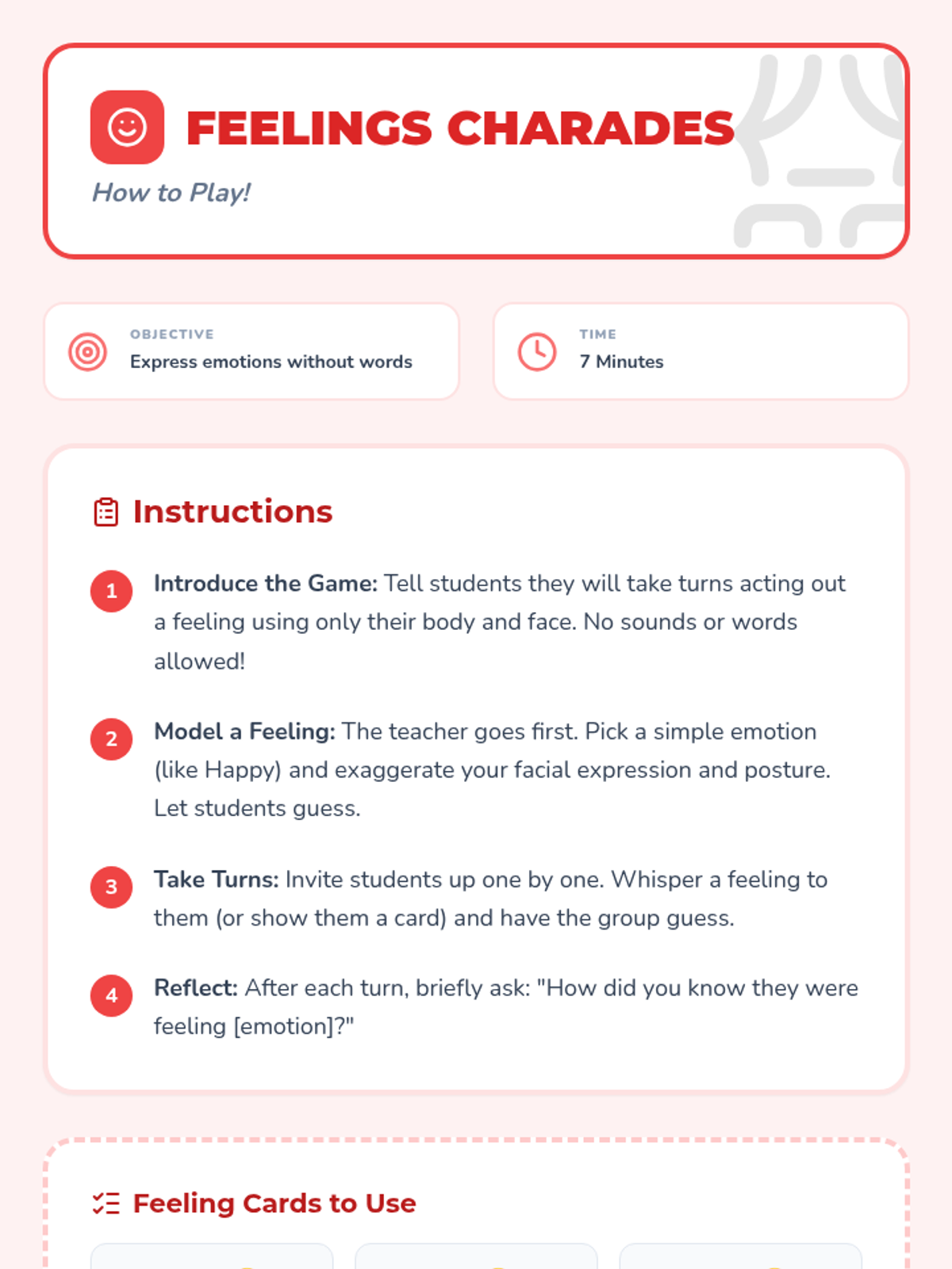 A fast-paced social-emotional learning lesson focused on identifying social cues and building stronger friendships through active observation and empathy. Students learn to read 'social clues' like body language and tone of voice to better understand their peers.