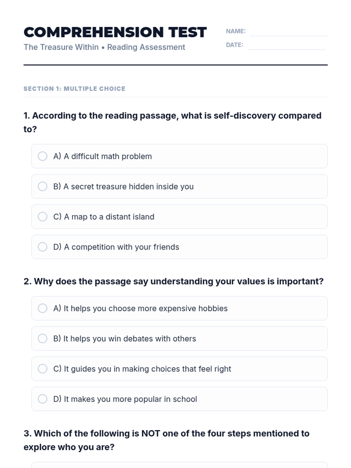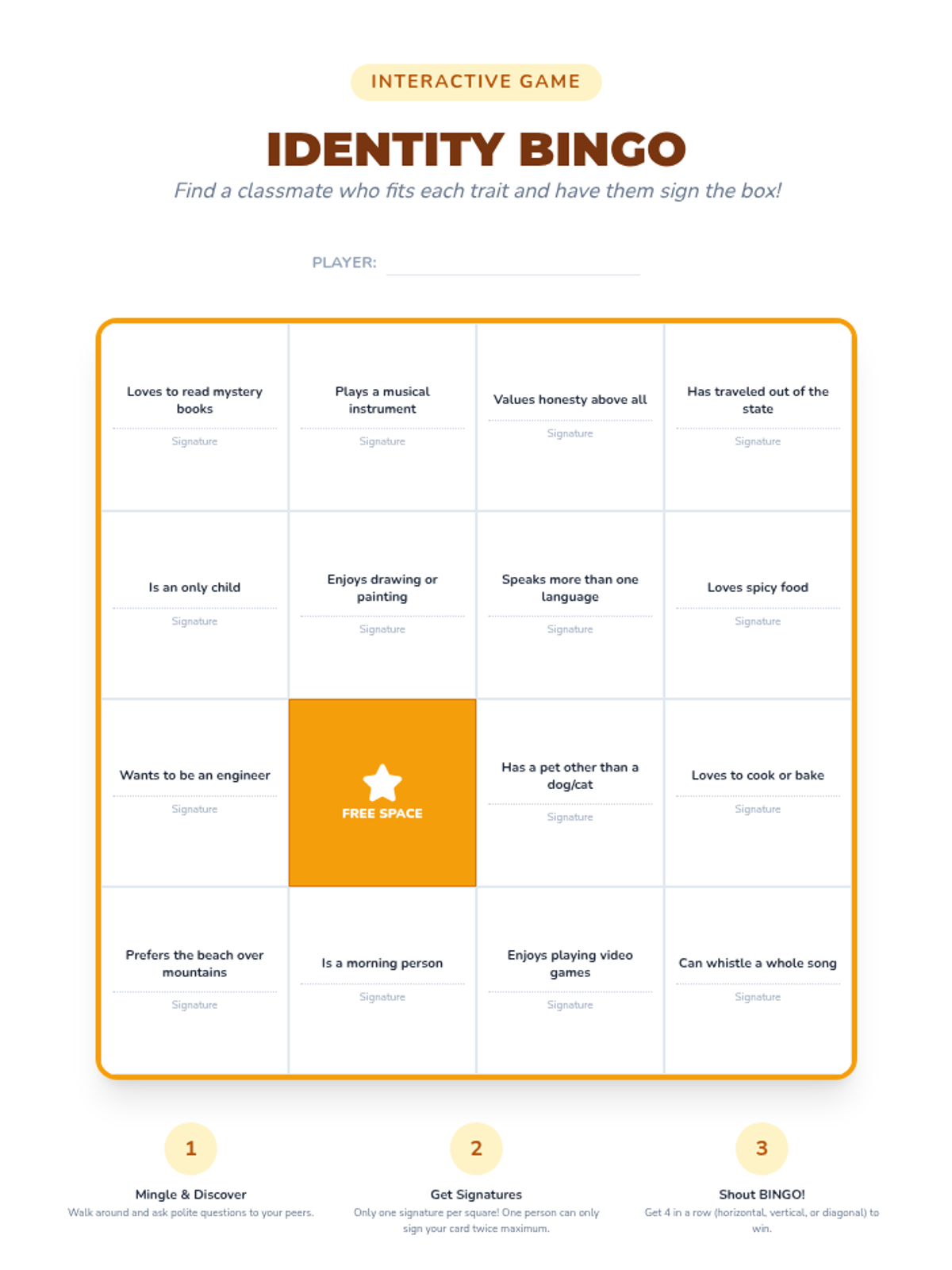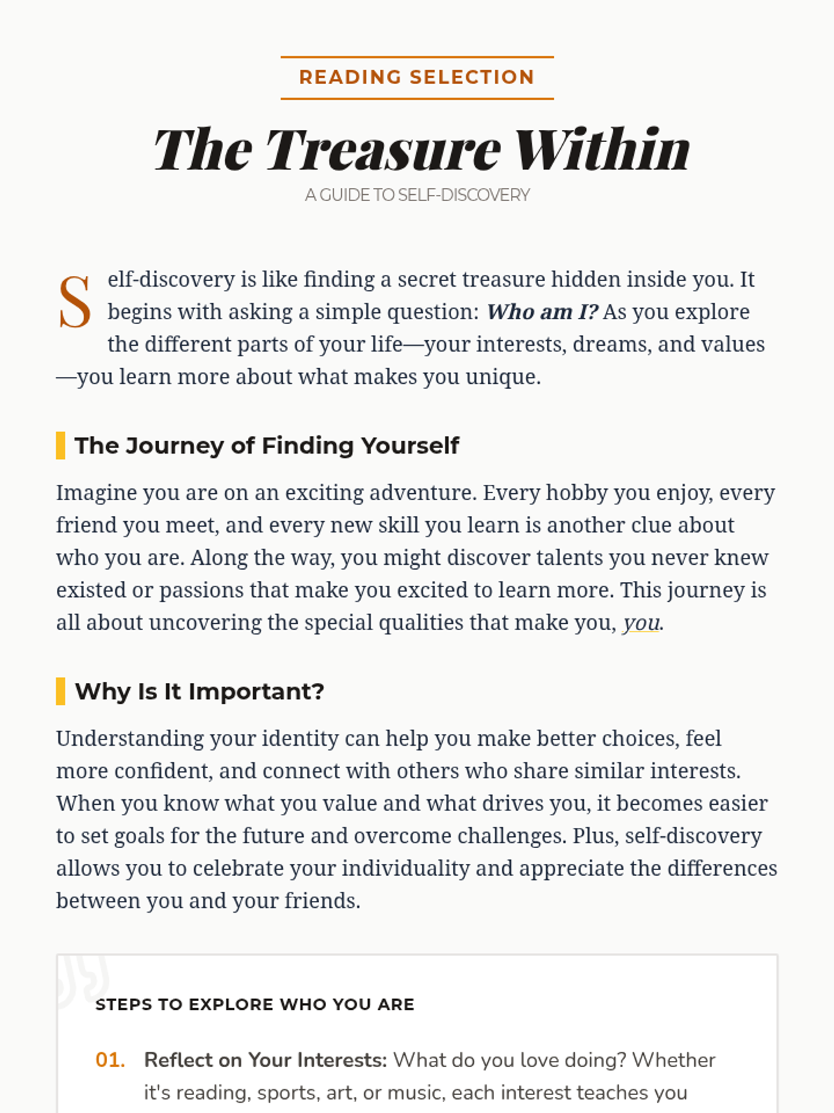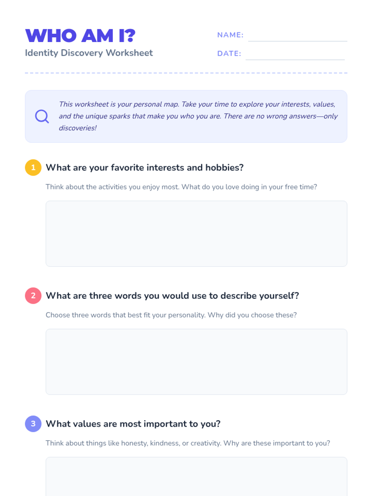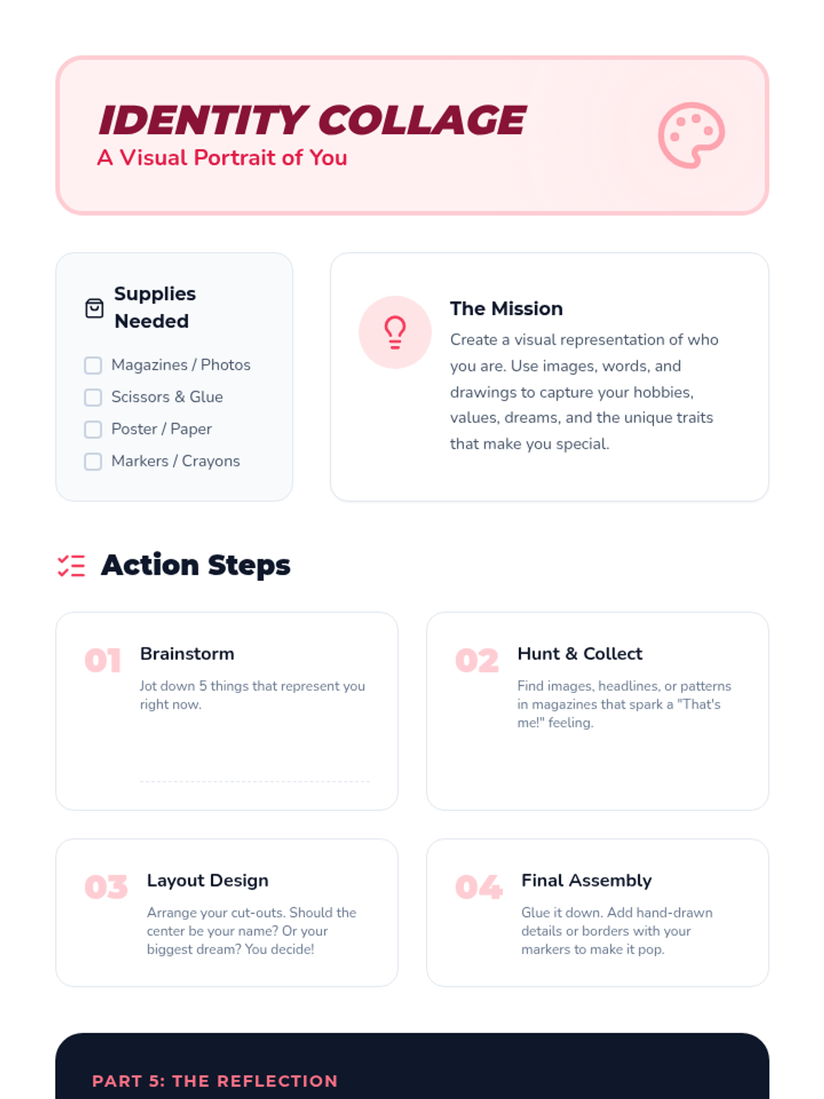A middle school lesson designed to build self-awareness and confidence by exploring personal identity, values, and strengths through interactive activities and reflection.