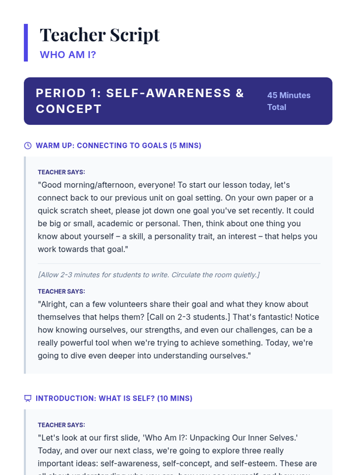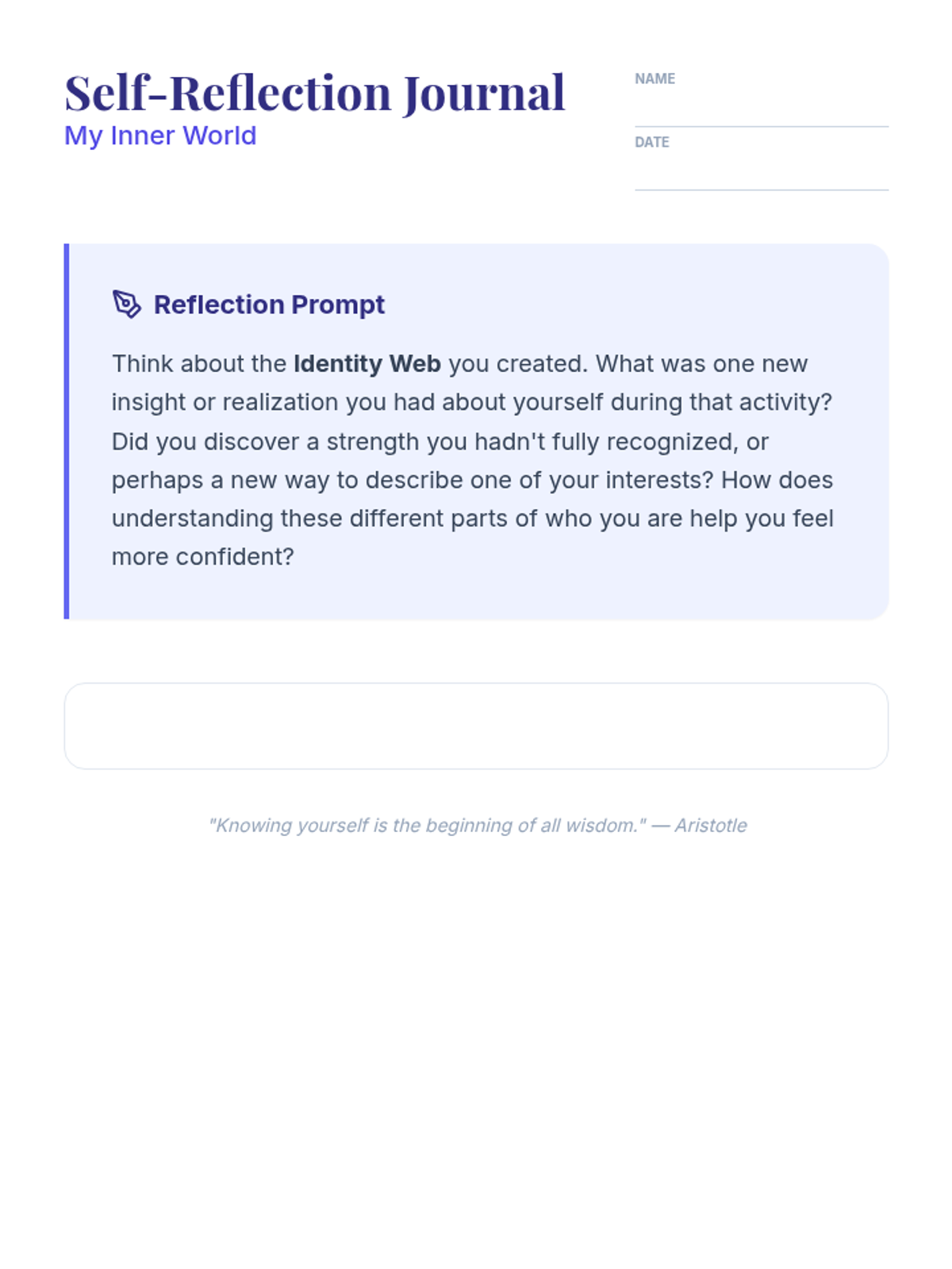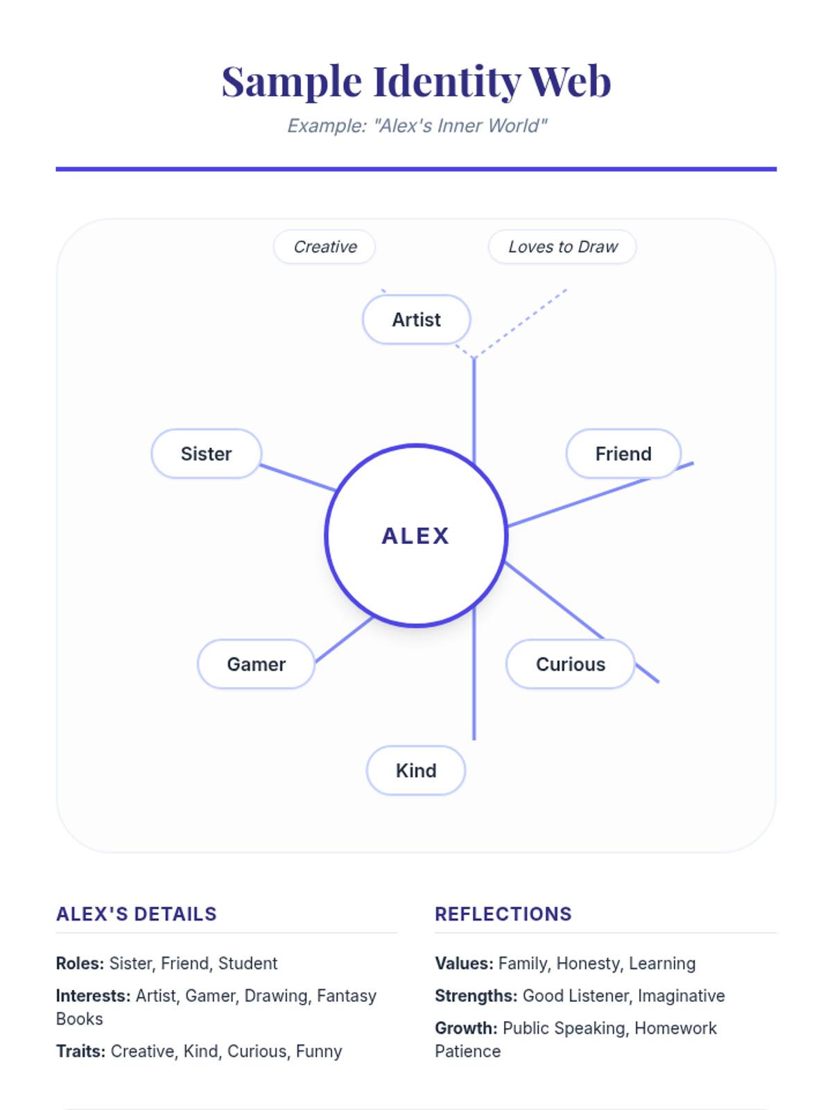 A two-period lesson for 6th-grade students focused on self-awareness, self-concept, and self-esteem as a foundation for effective communication. Students create identity webs, reflect on their strengths, and connect self-knowledge to interpersonal skills.