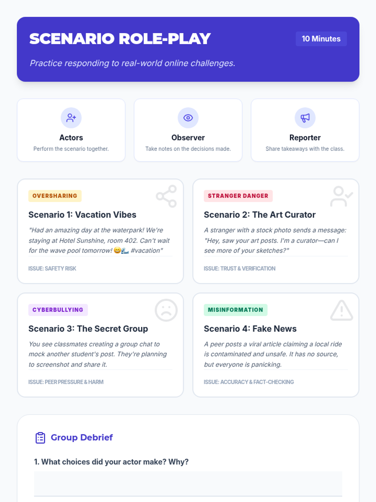 A 45-minute lesson for 6th graders to identify media bias, understand fairness, and practice digital etiquette in journalism. students analyze real-world scenarios and reflect on ethical communication.