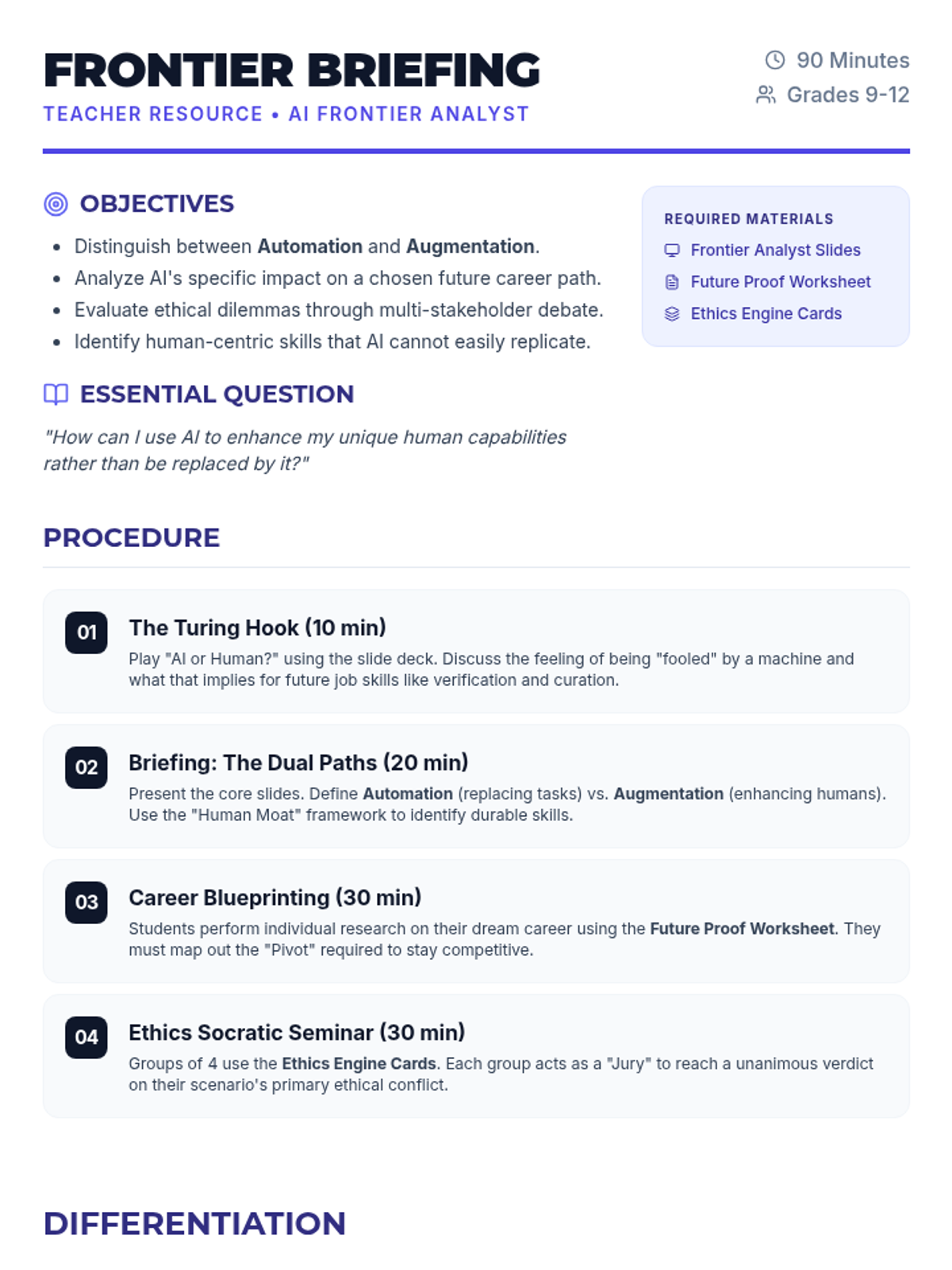 High schoolers investigate how artificial intelligence will transform their specific career interests by analyzing current trends, ethical concerns, and human-centric skills.