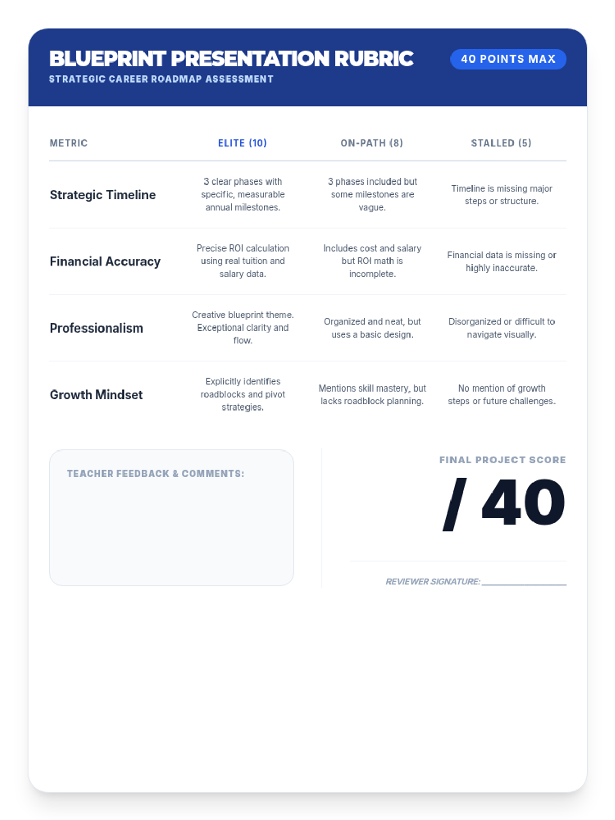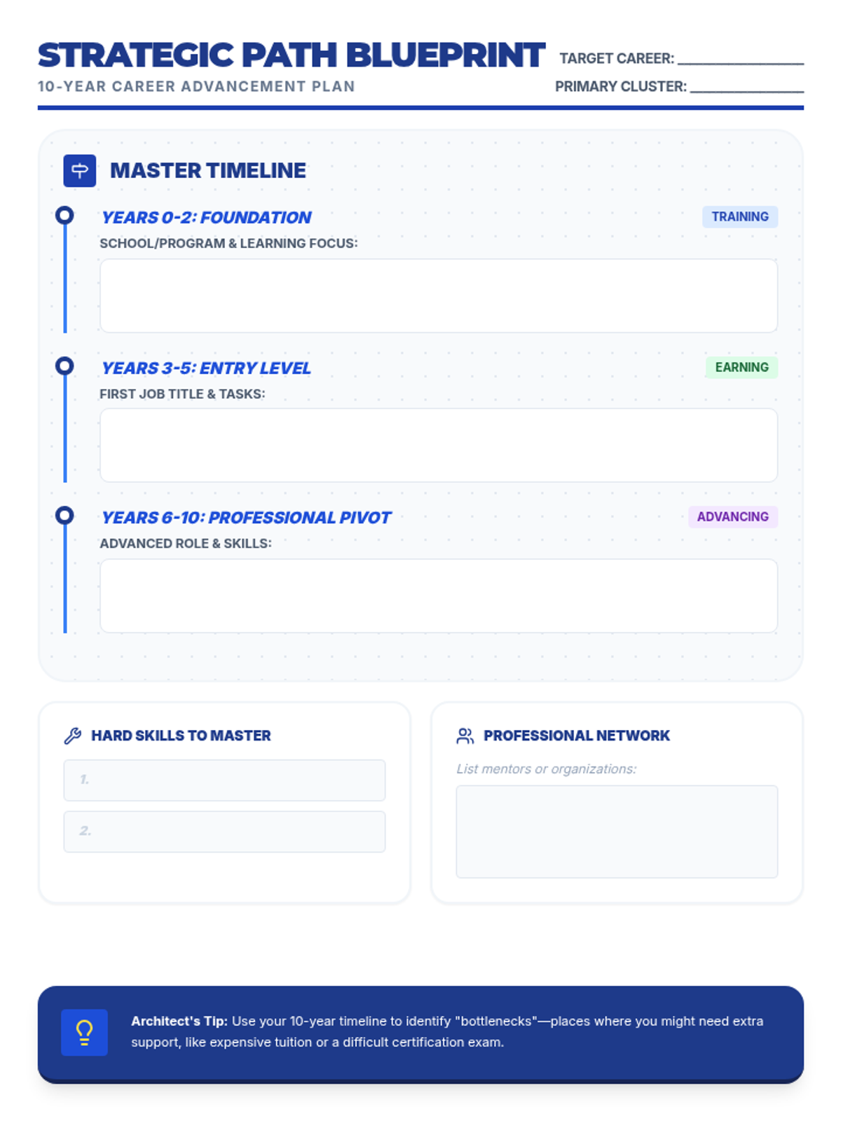 A follow-up project where students create a personalized career advancement timeline, mapping out specific post-secondary steps, financial requirements, and potential growth milestones for their chosen path.