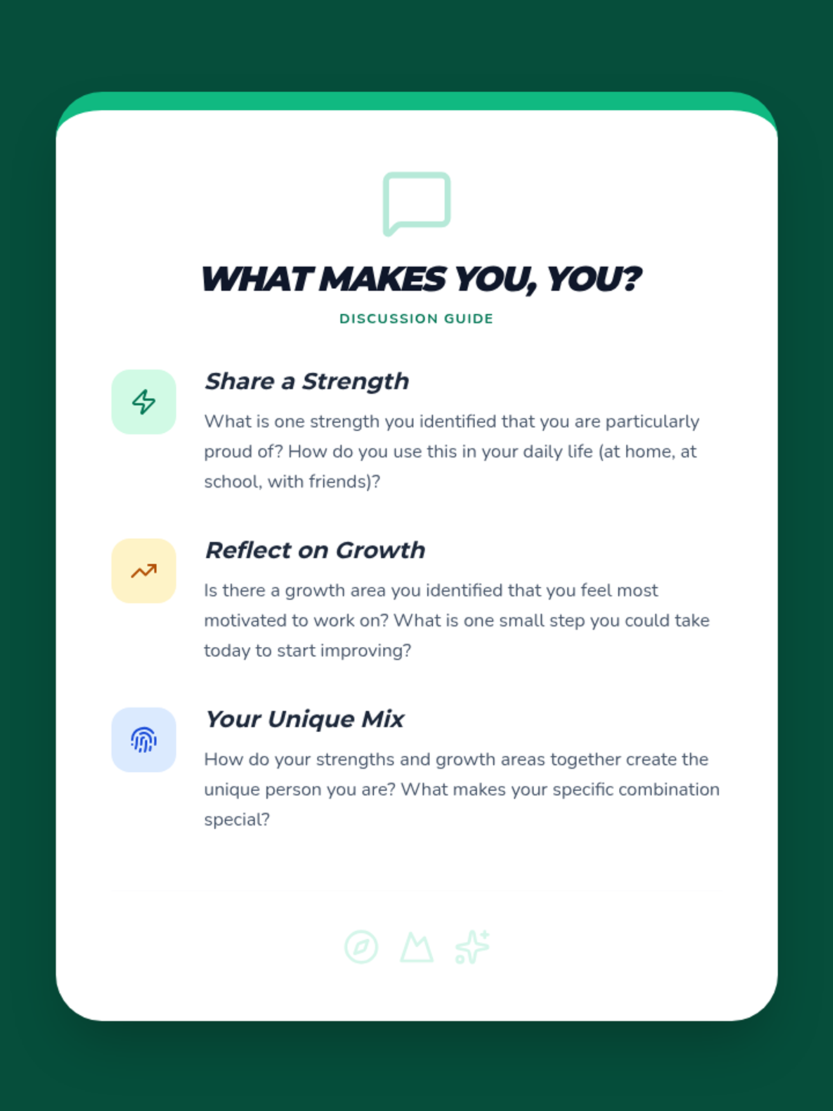 Focuses on the social benefits of school and building a sense of belonging. Students identify their 'Satellite Team'—friends and staff who make school a place they want to be.
